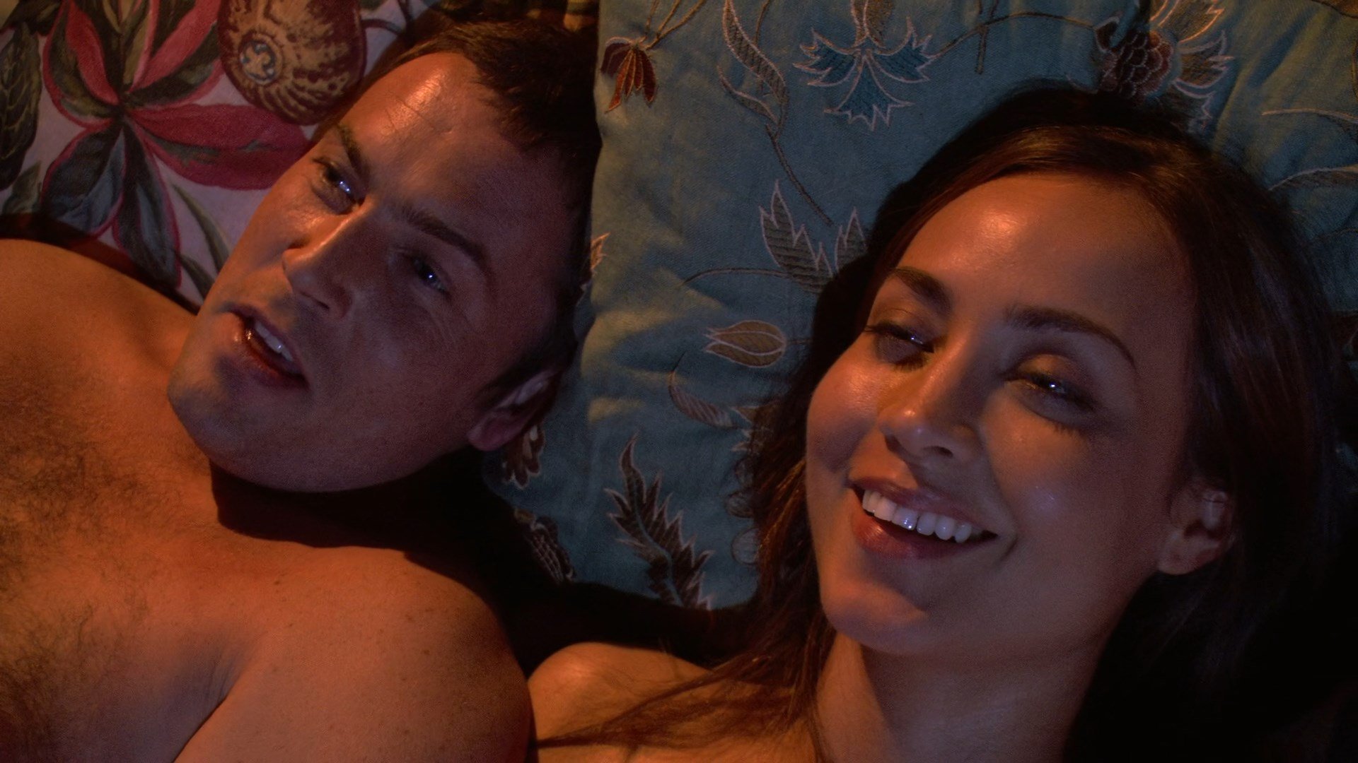 Christine (Courtney Ford) muestra sus pechos alzados mientras recibe un poco de atención en el centro de Quinn (Desmond Harrington).