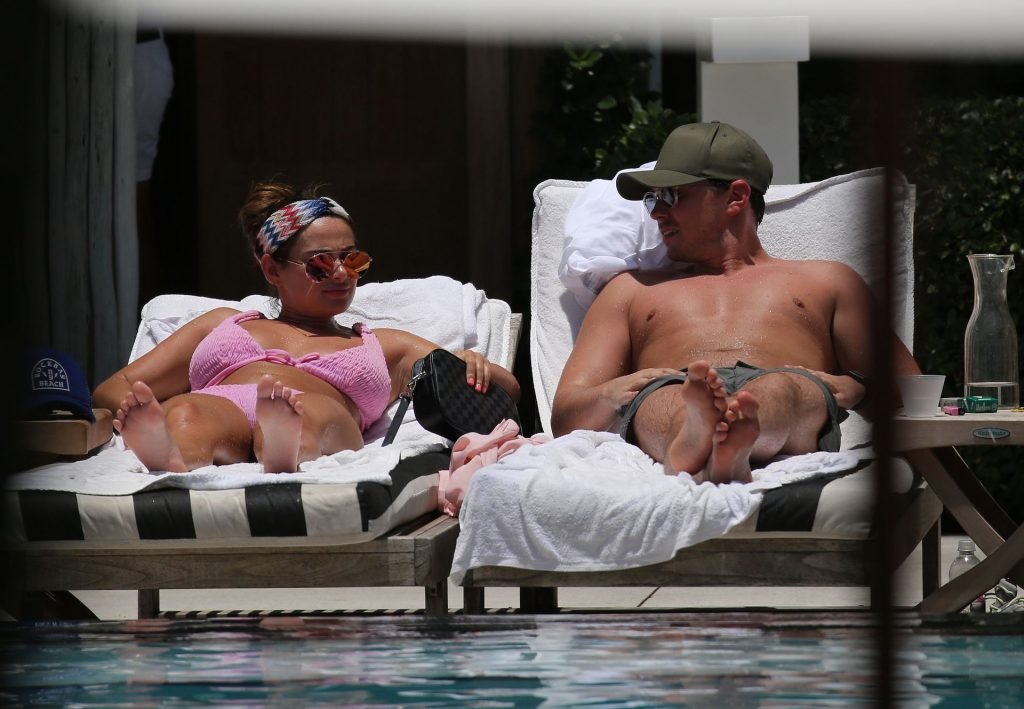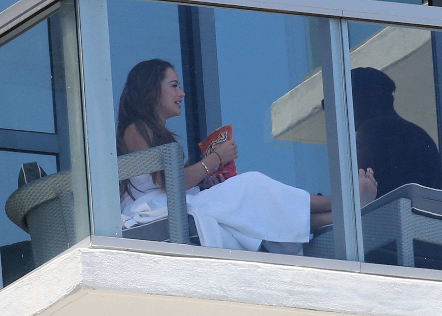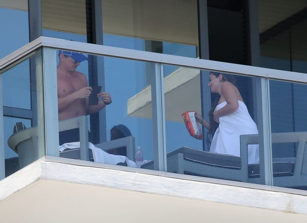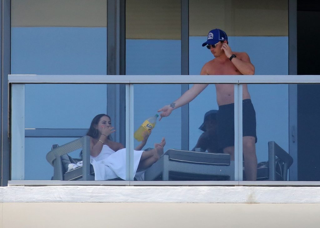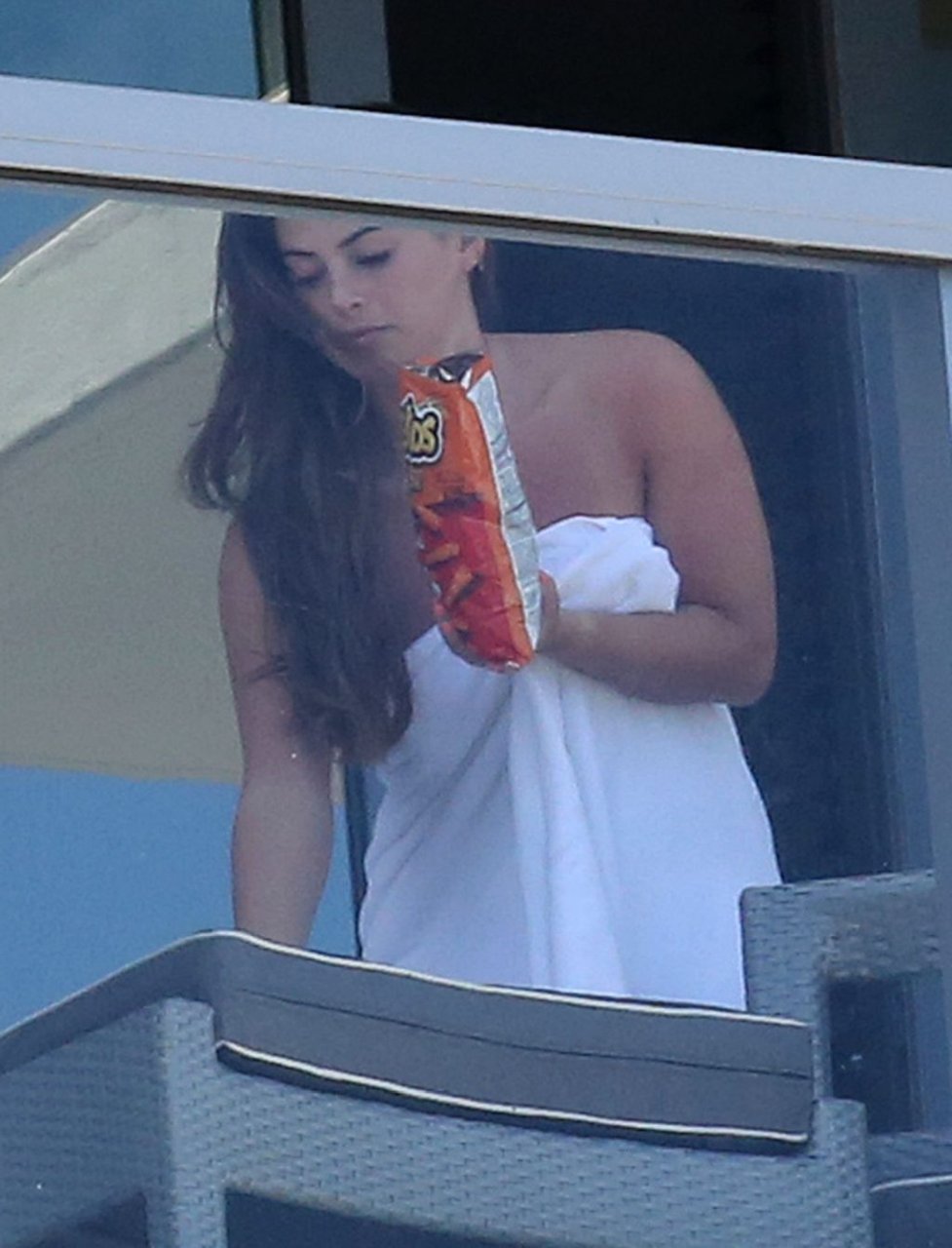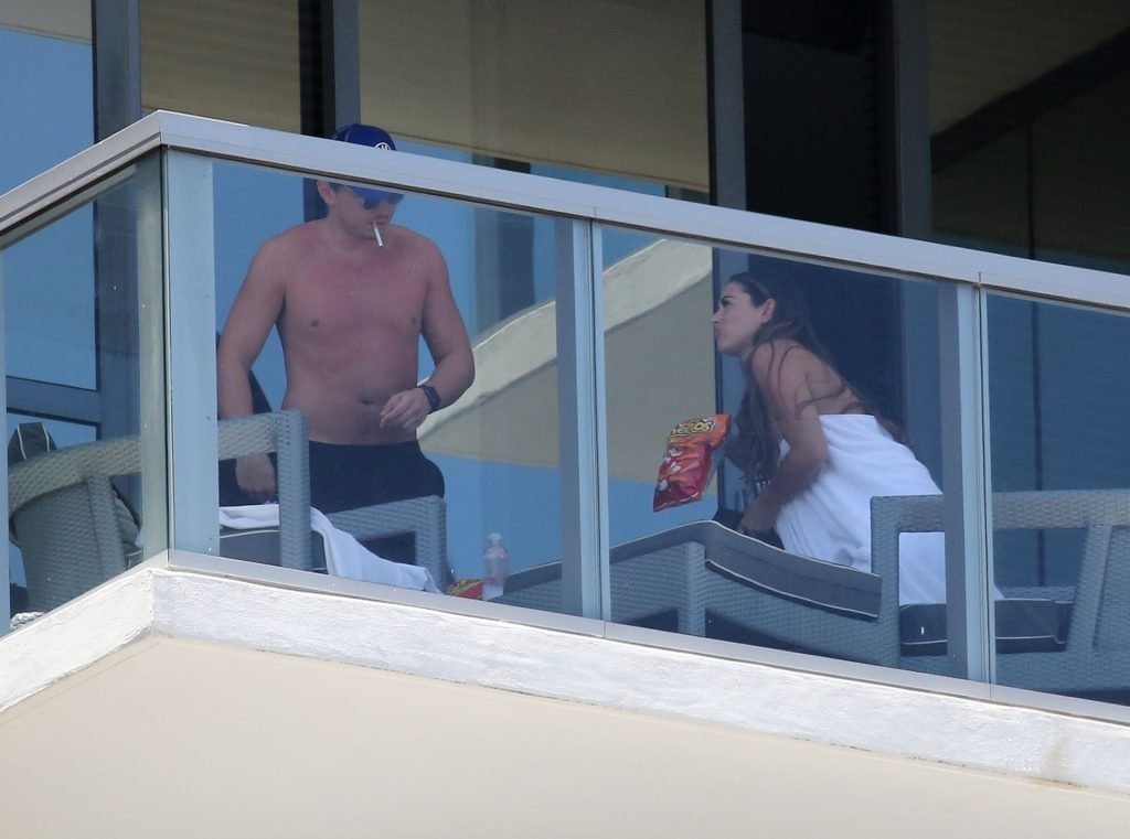 Después de relajarse junto a la piscina, la pareja regresó a su habitación donde Courtney apareció en el balcón con nada más que una toalla blanca y una bolsa de Cheetos y le pidió a su novio que tomara algunas fotografías. Después de acompañar los Cheetos con una soda de Fanta de piña, se vio a la pareja dando un paseo hacia un restaurante para almorzar.