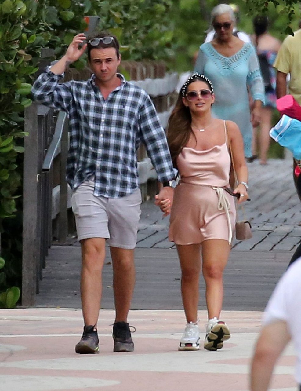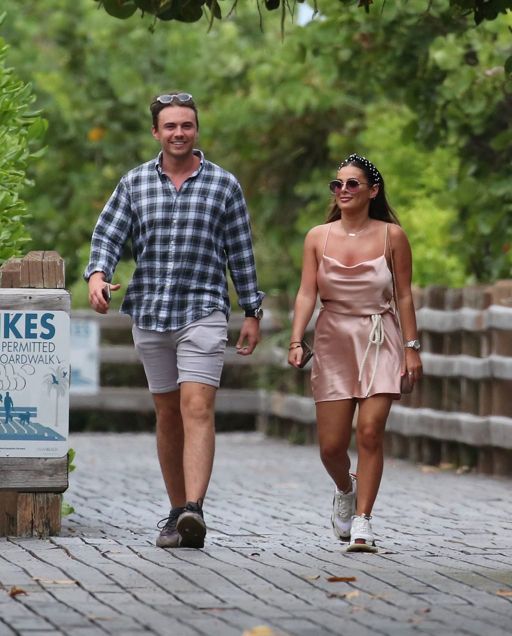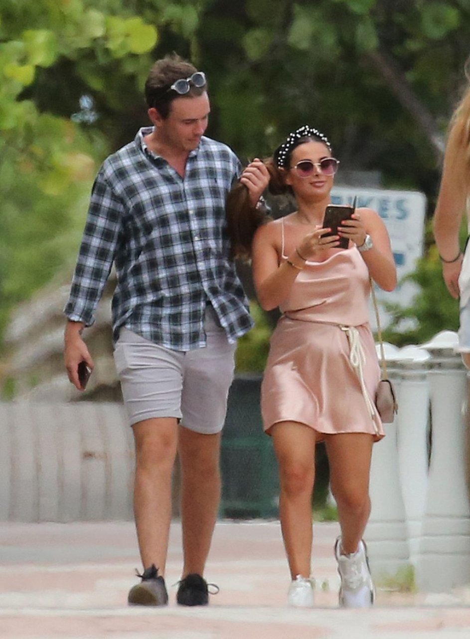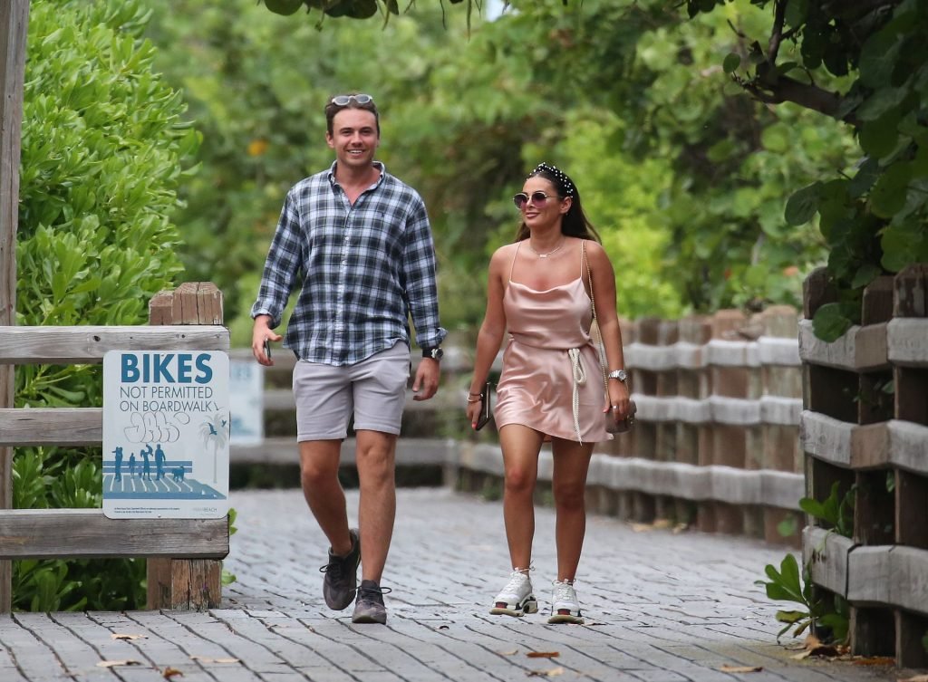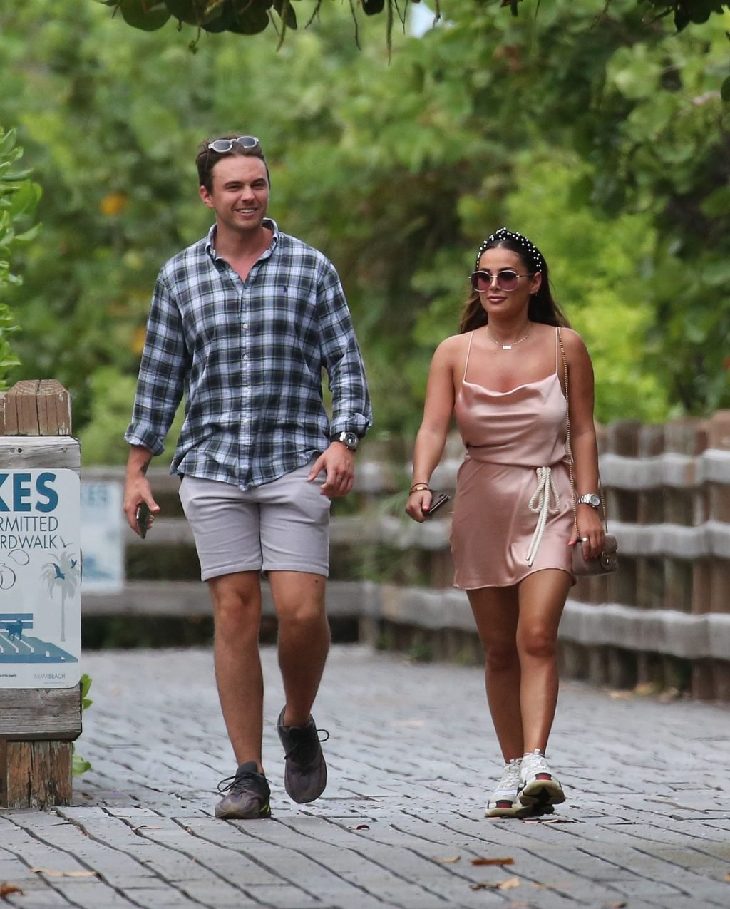 La estrella de TOWIE Courtney Green lleva un bikini rosa con su novio Calum Bushby en Miami Beach, 05/06/2019.