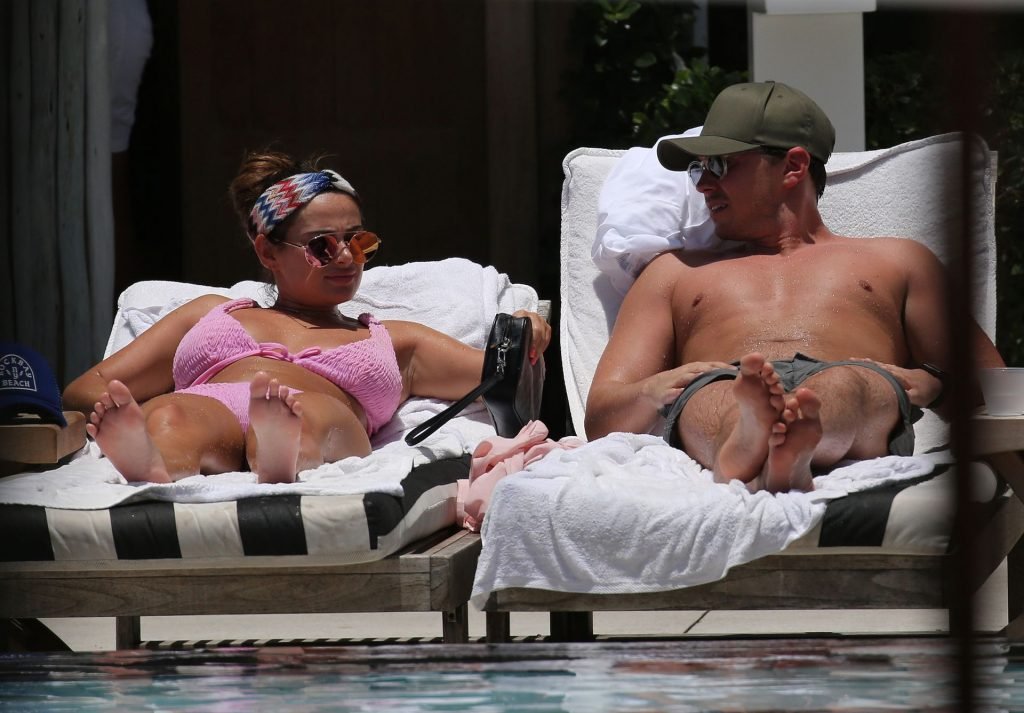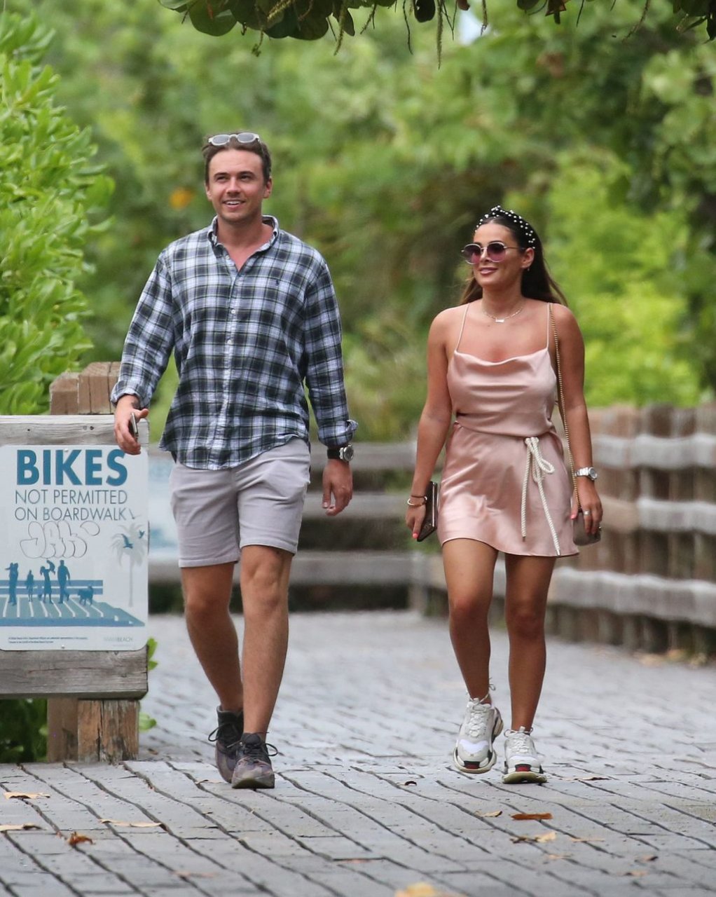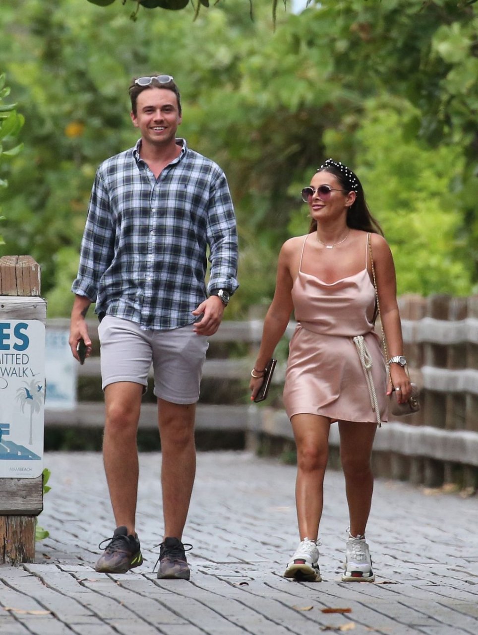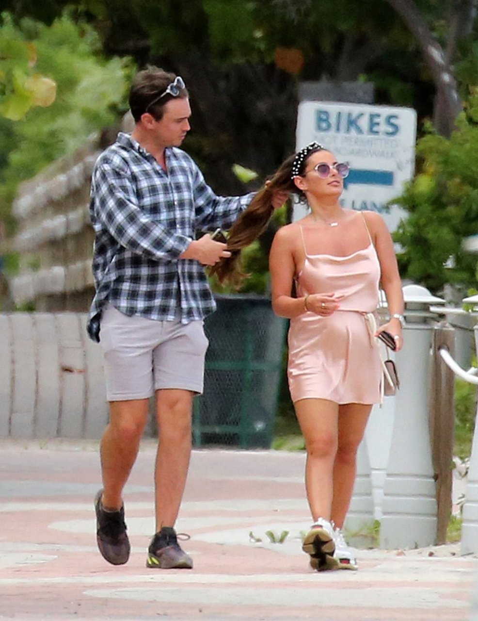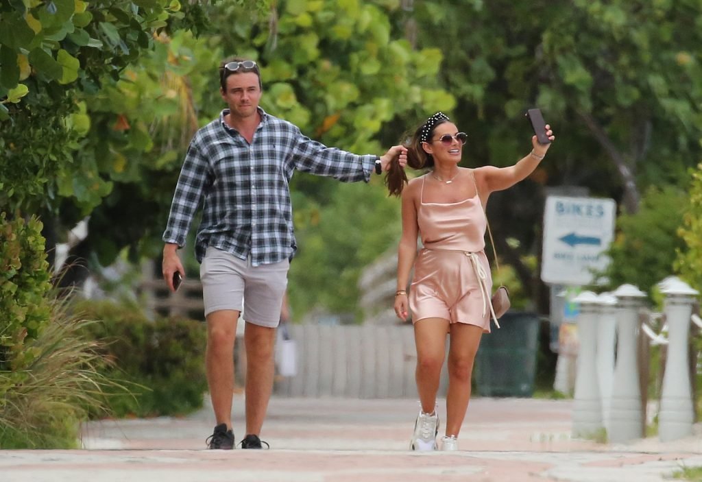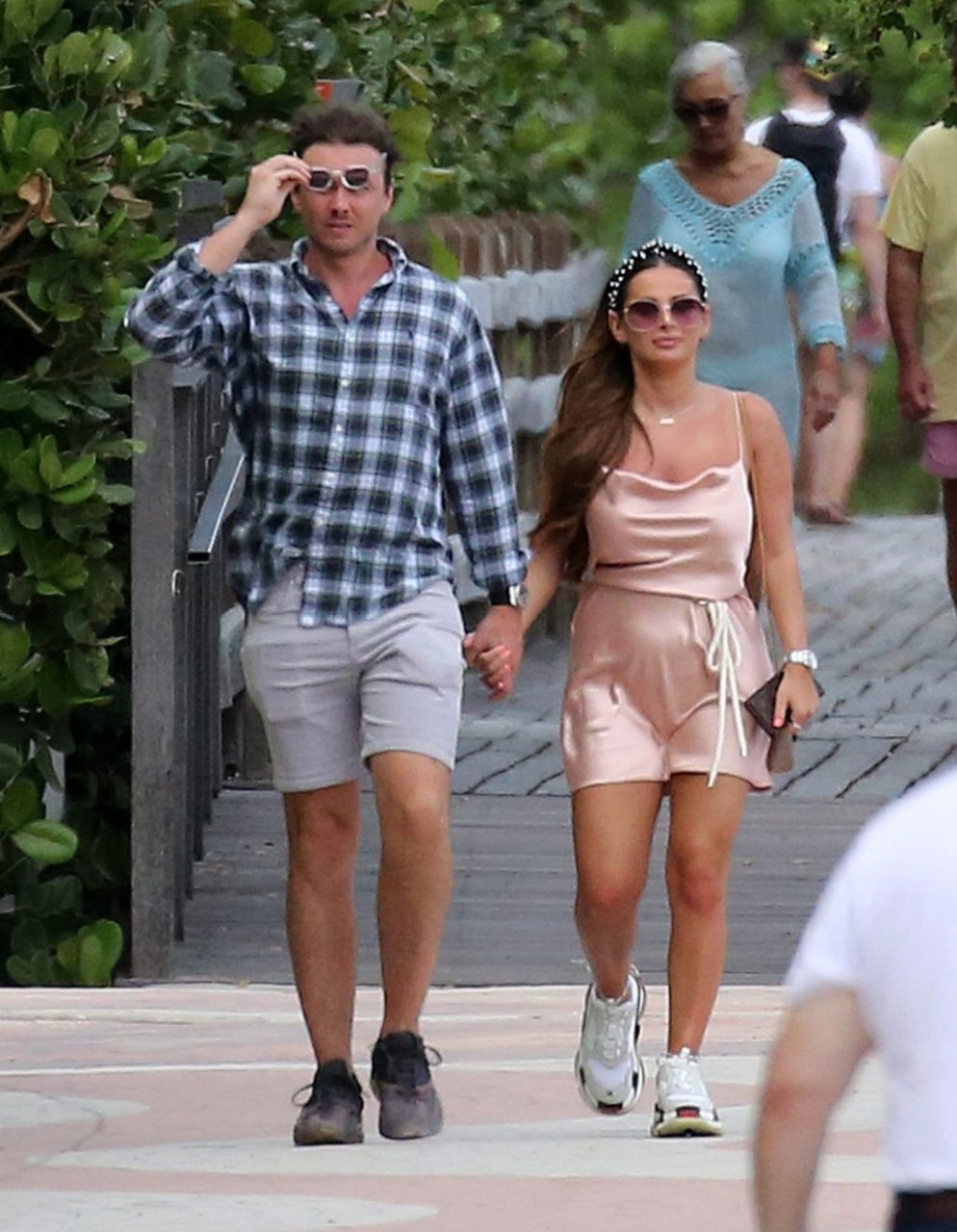 La estrella de TOWIE Courtney Green lleva un bikini rosa con su novio Calum Bushby en Miami Beach, 05/06/2019.