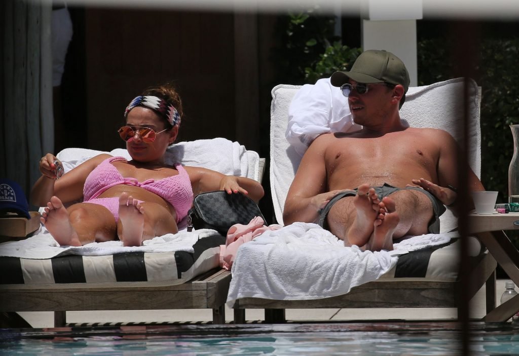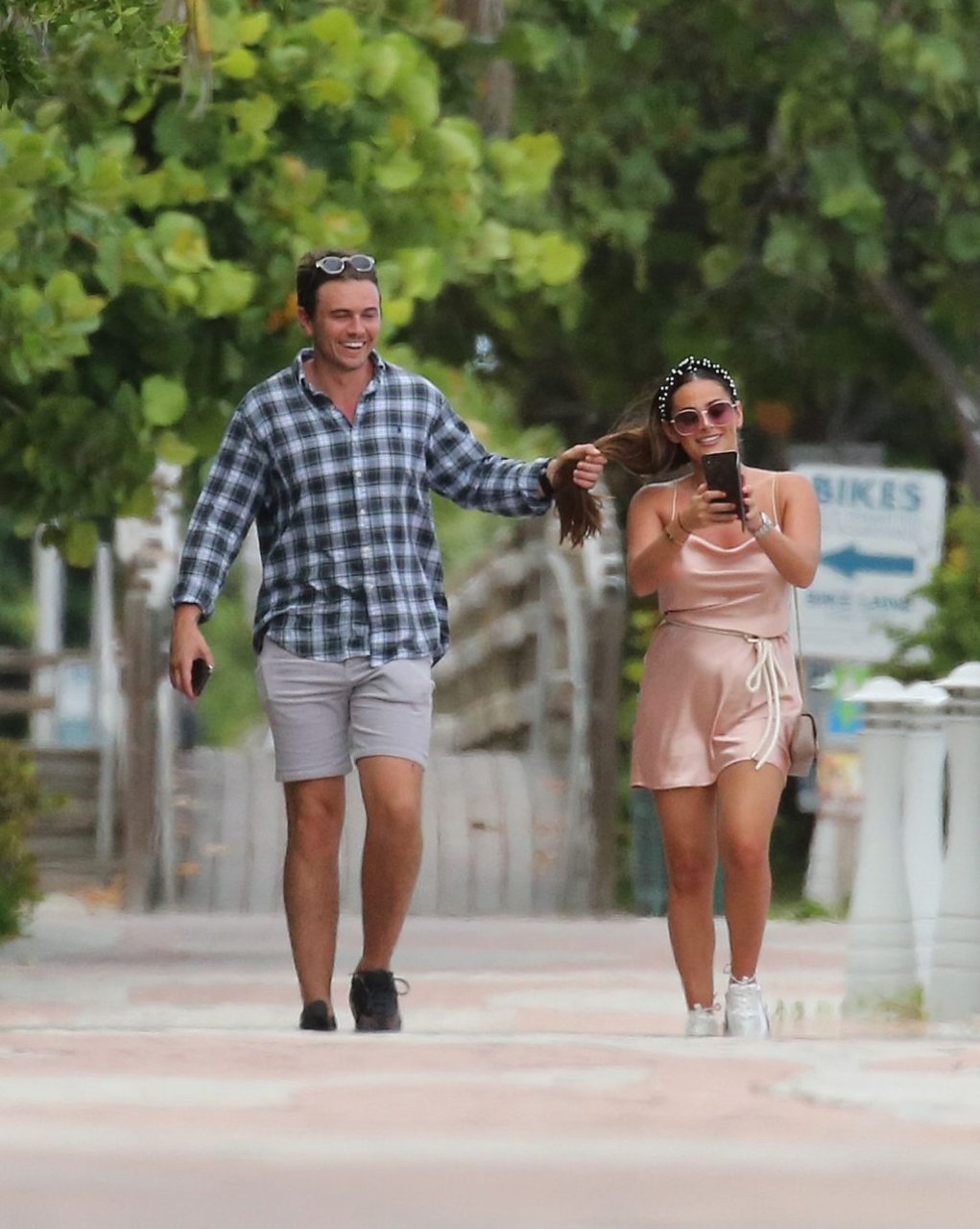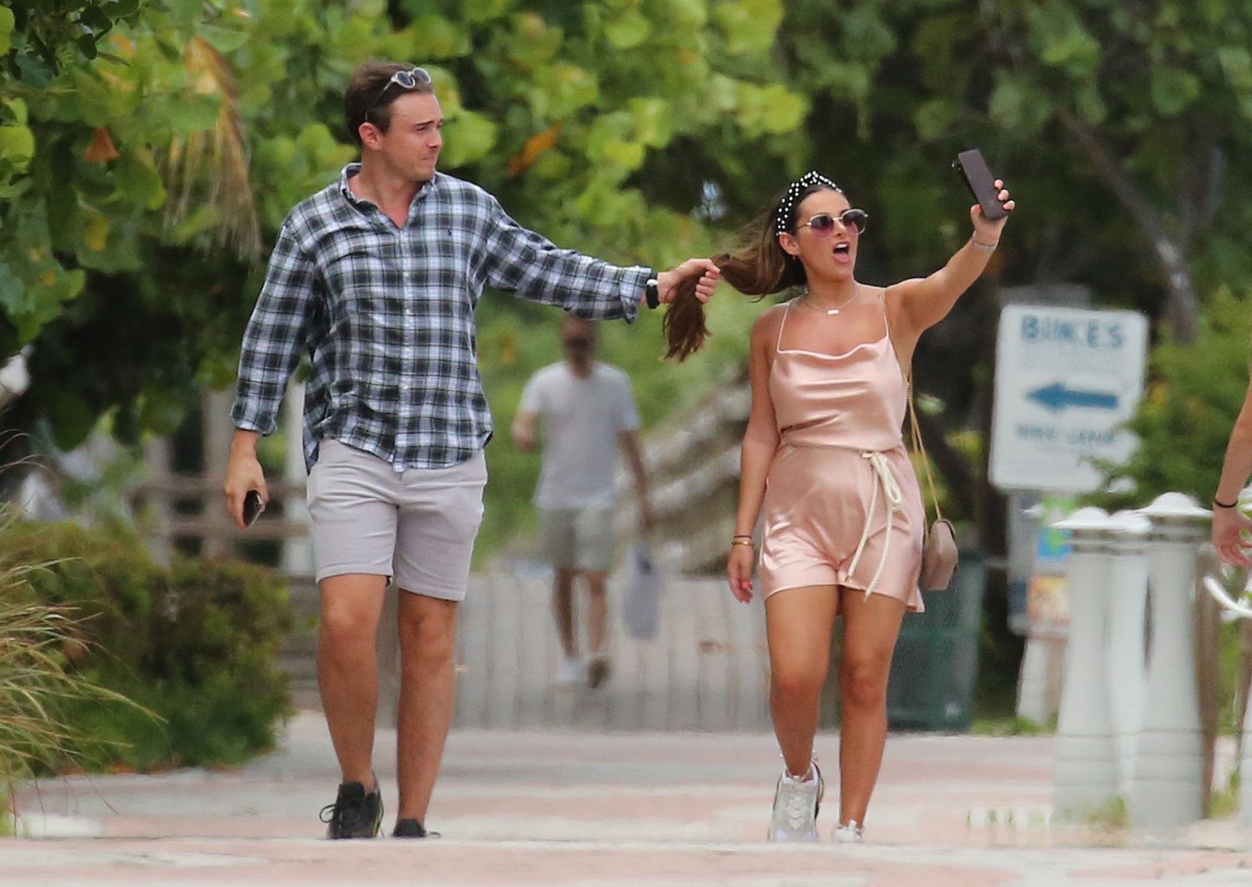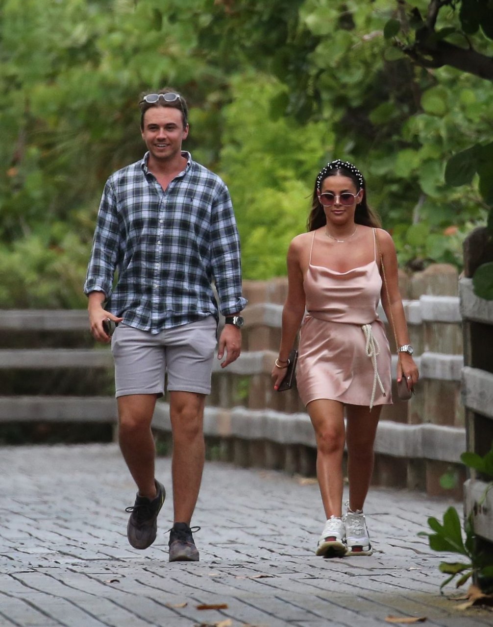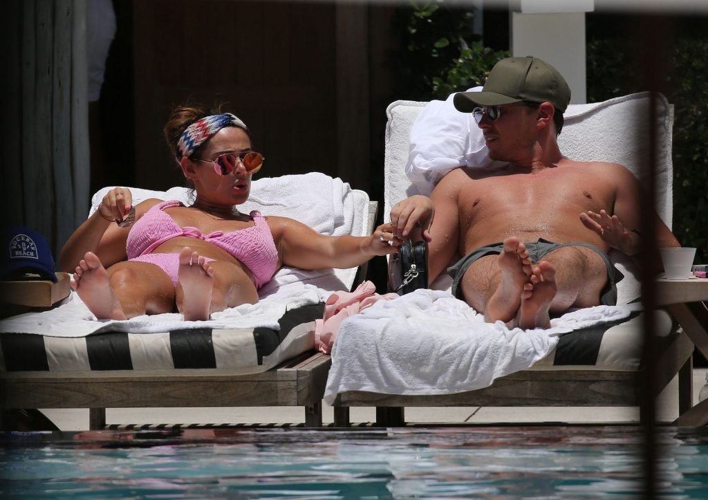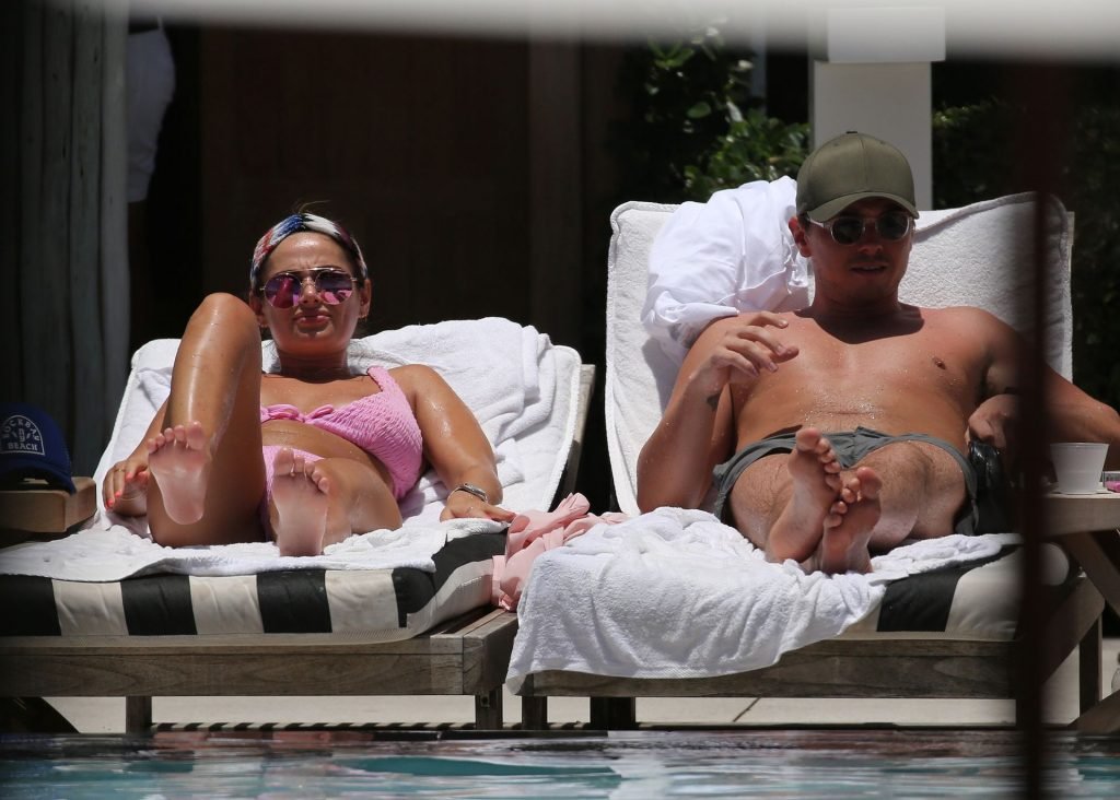 La estrella de TOWIE Courtney Green lleva un bikini rosa con su novio Calum Bushby en Miami Beach, 05/06/2019.