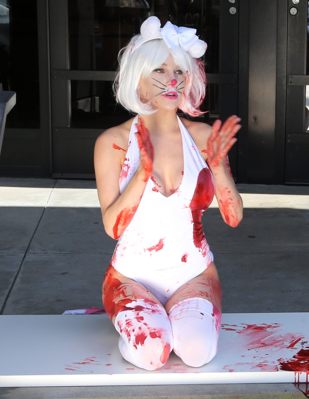 Courtney Stodden protestando frente a ‘Petsmart’ en Los Ángeles, 14/04/2016. Otra campaña sucia de Peta… Courtney Stodden es una concursante estadounidense de reality show. Edad 21 (29 de agosto de 1994). Altura 160 cm.