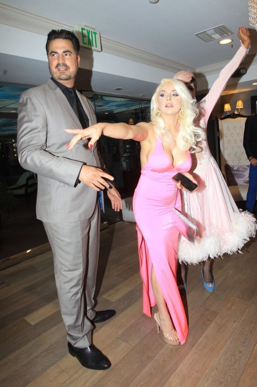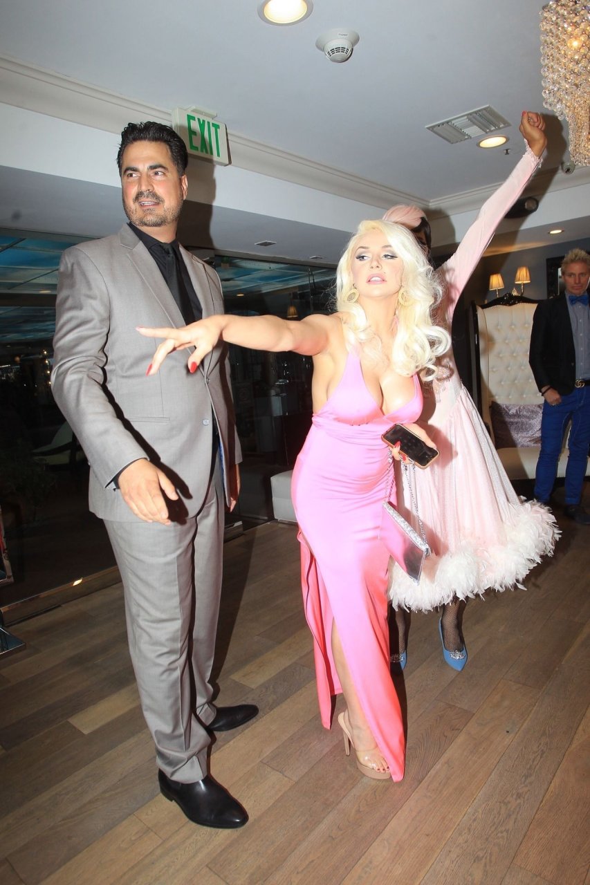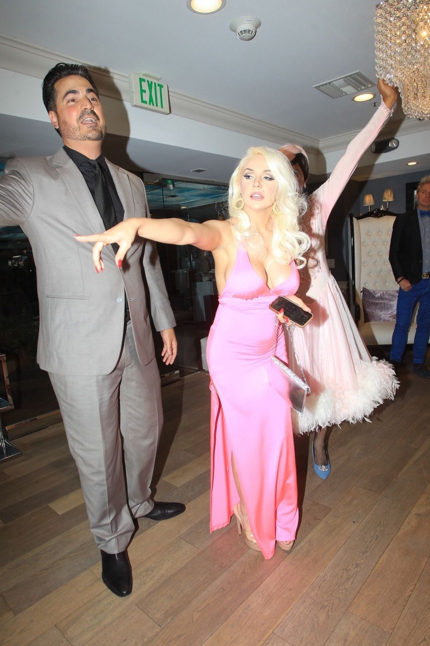 Modelo y personalidad mediática Courtney Stodden y una amiga tienen un accidente en el baño en su estreno televisivo en Beverly Hills, 03/09/2019. La madre y el novio de Courtney estuvieron presentes en el evento.