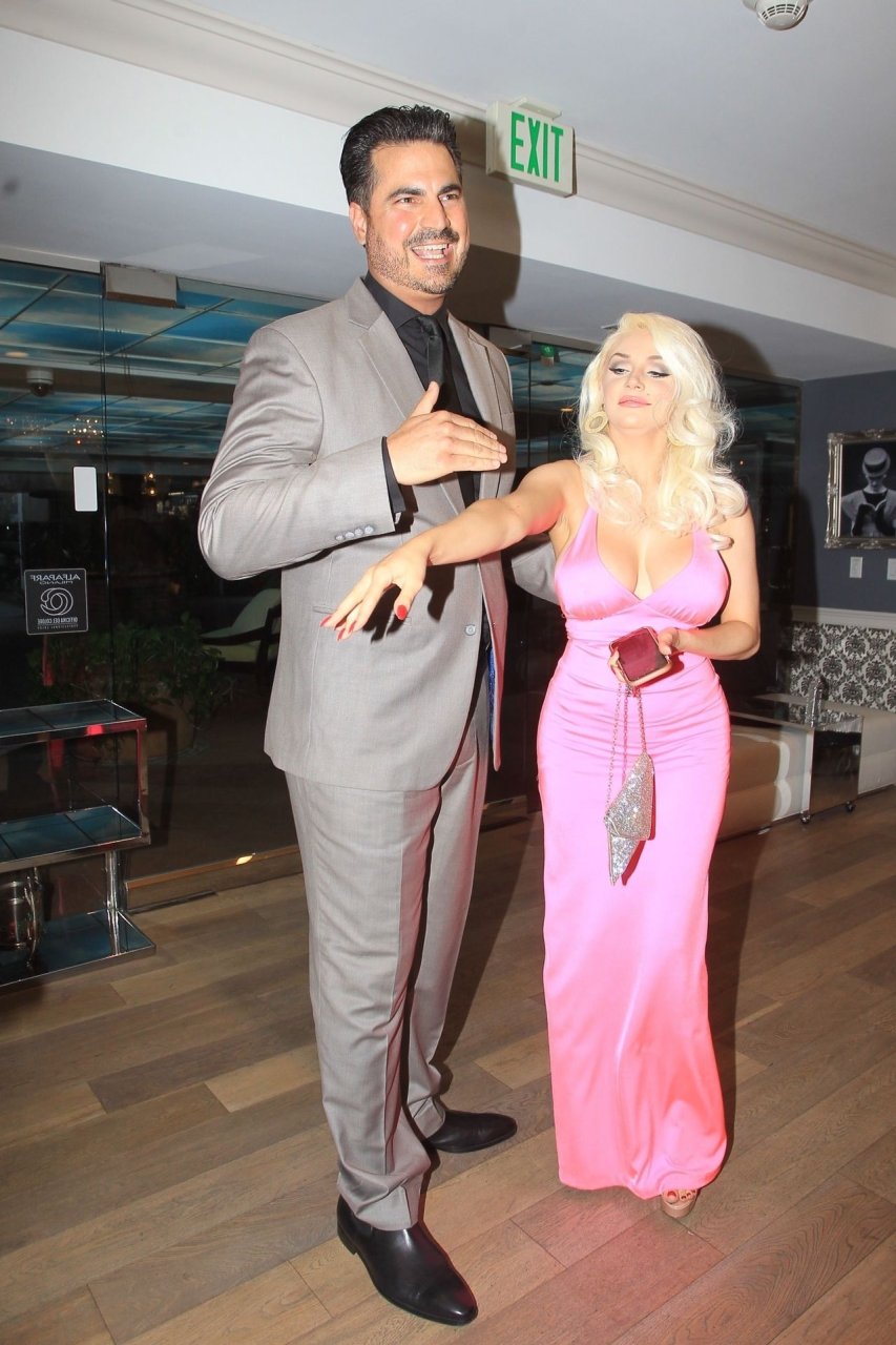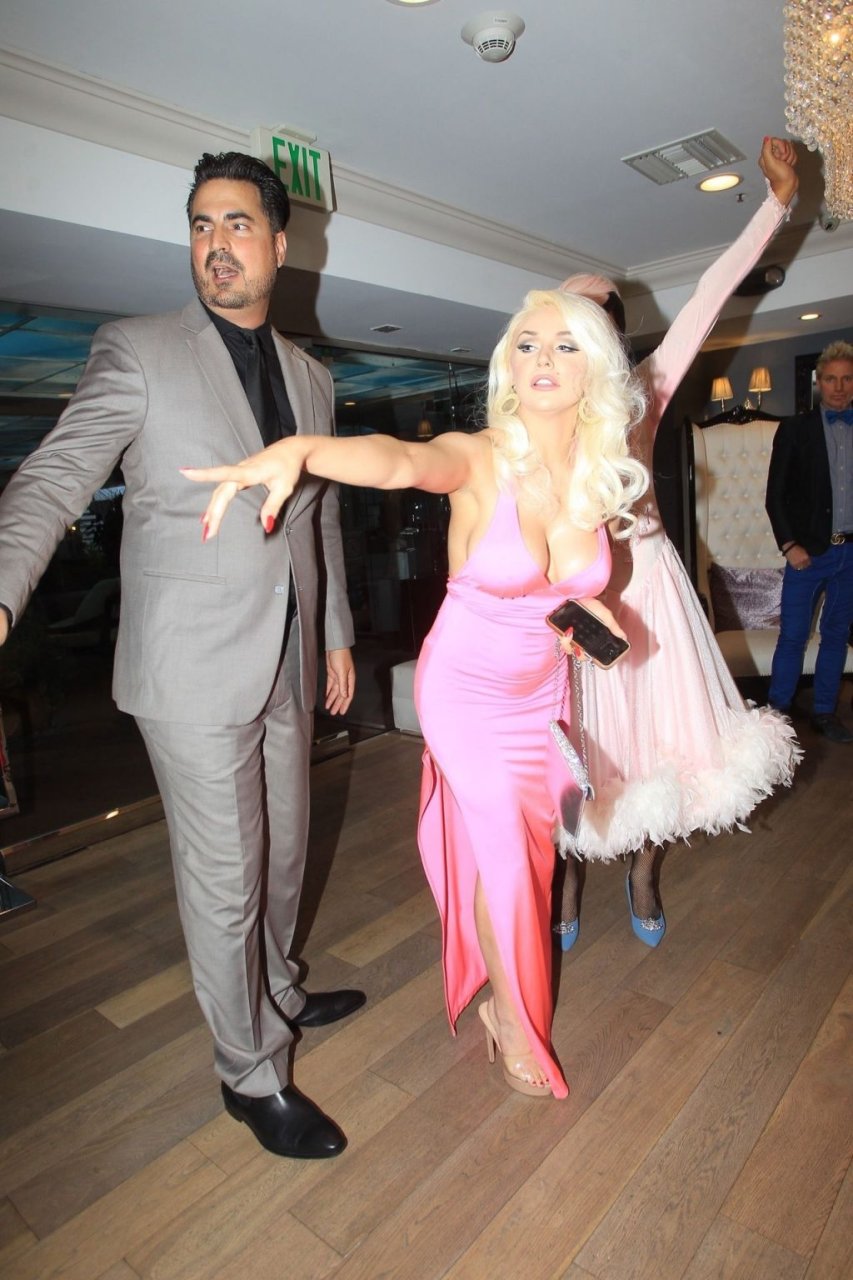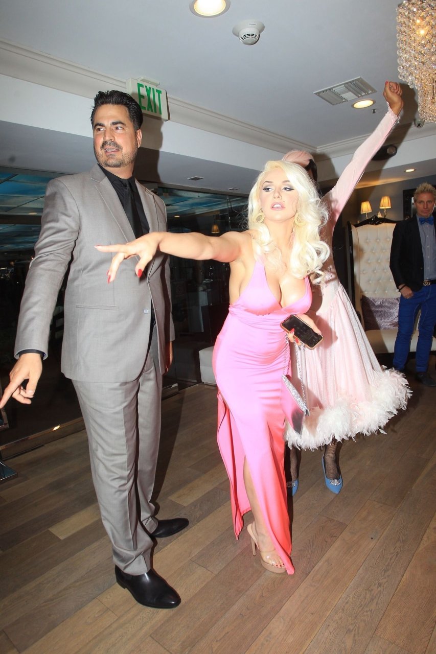 Modelo y personalidad mediática Courtney Stodden y una amiga tienen un accidente en el baño en su estreno televisivo en Beverly Hills, 03/09/2019. La madre y el novio de Courtney estuvieron presentes en el evento.