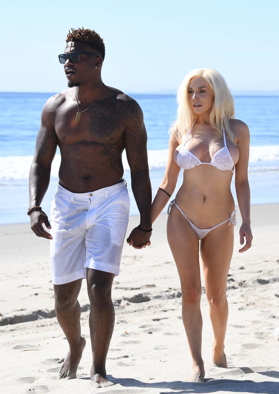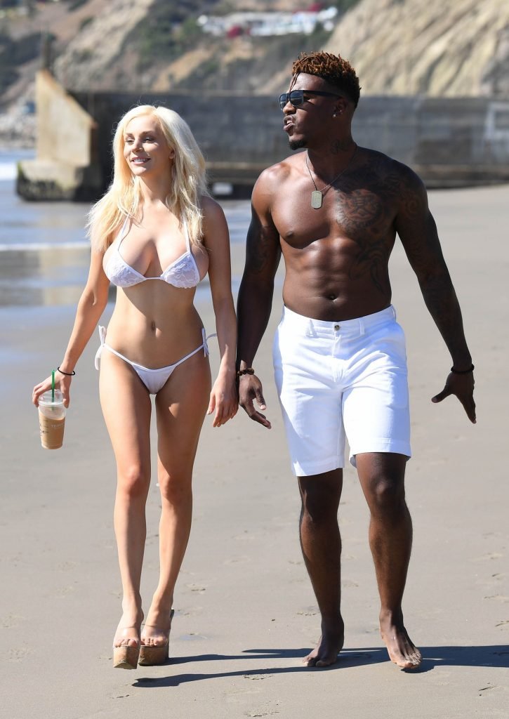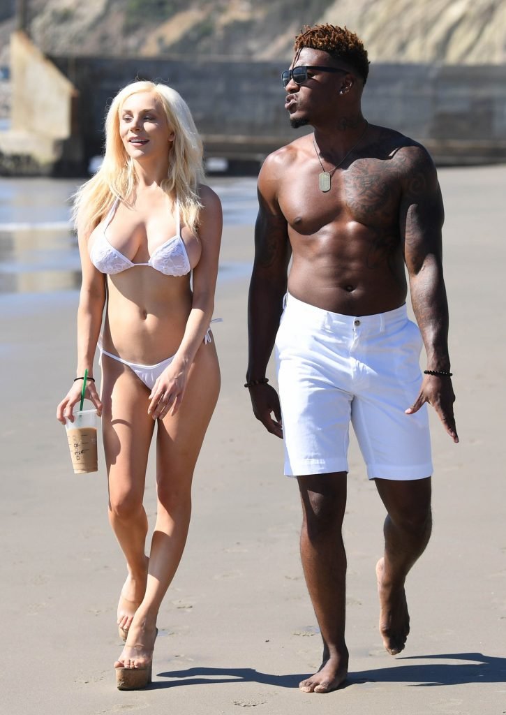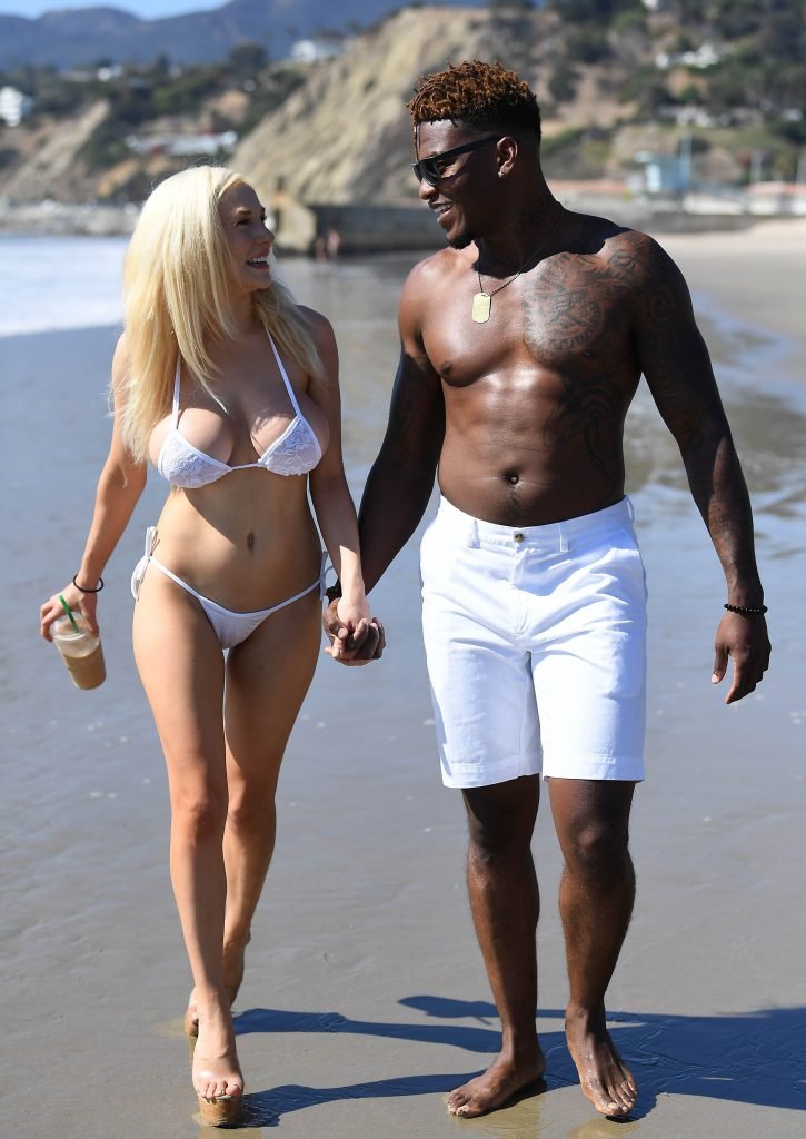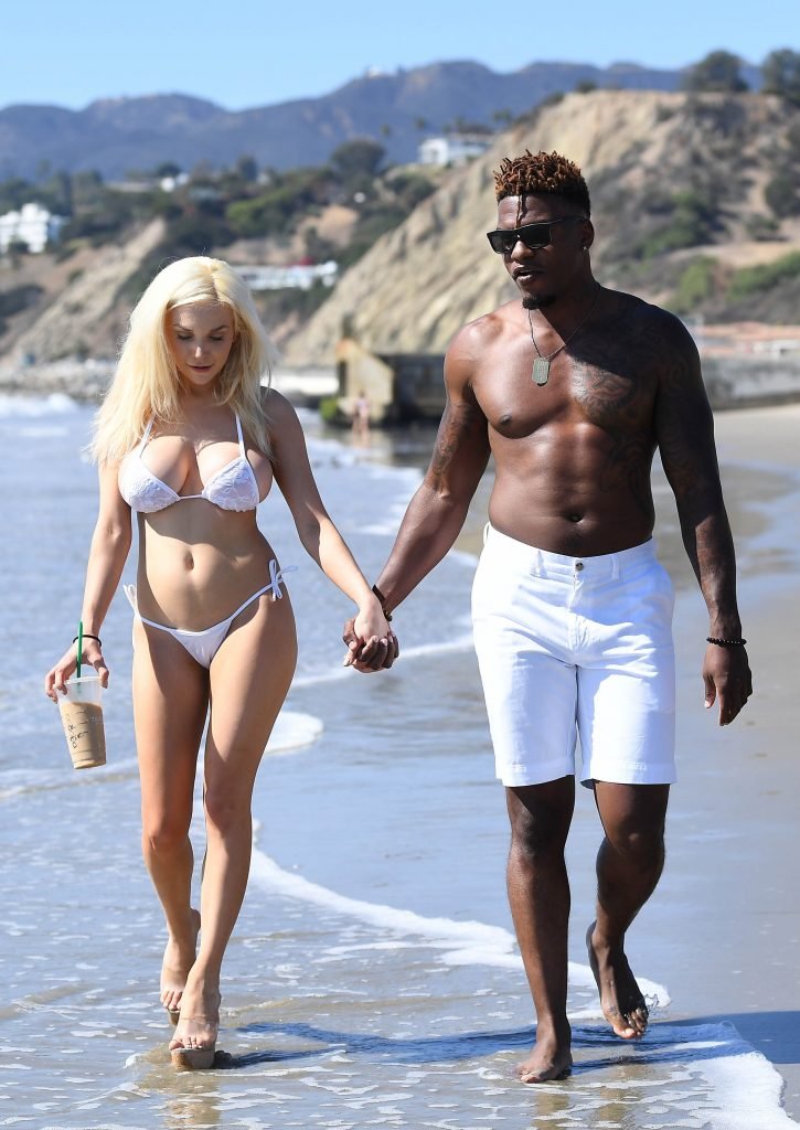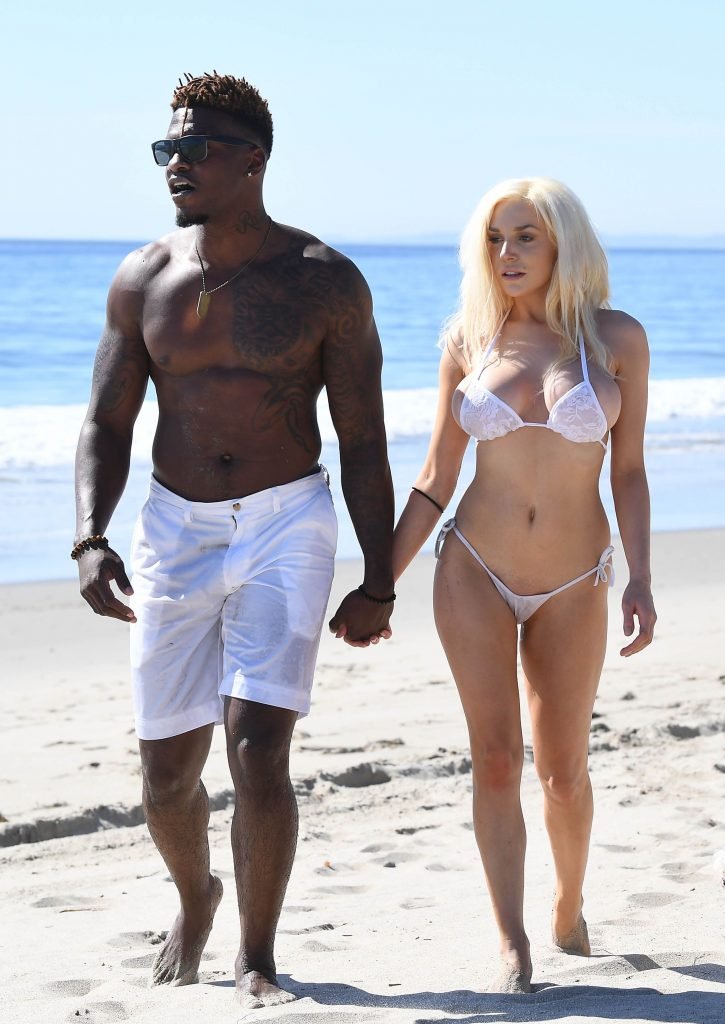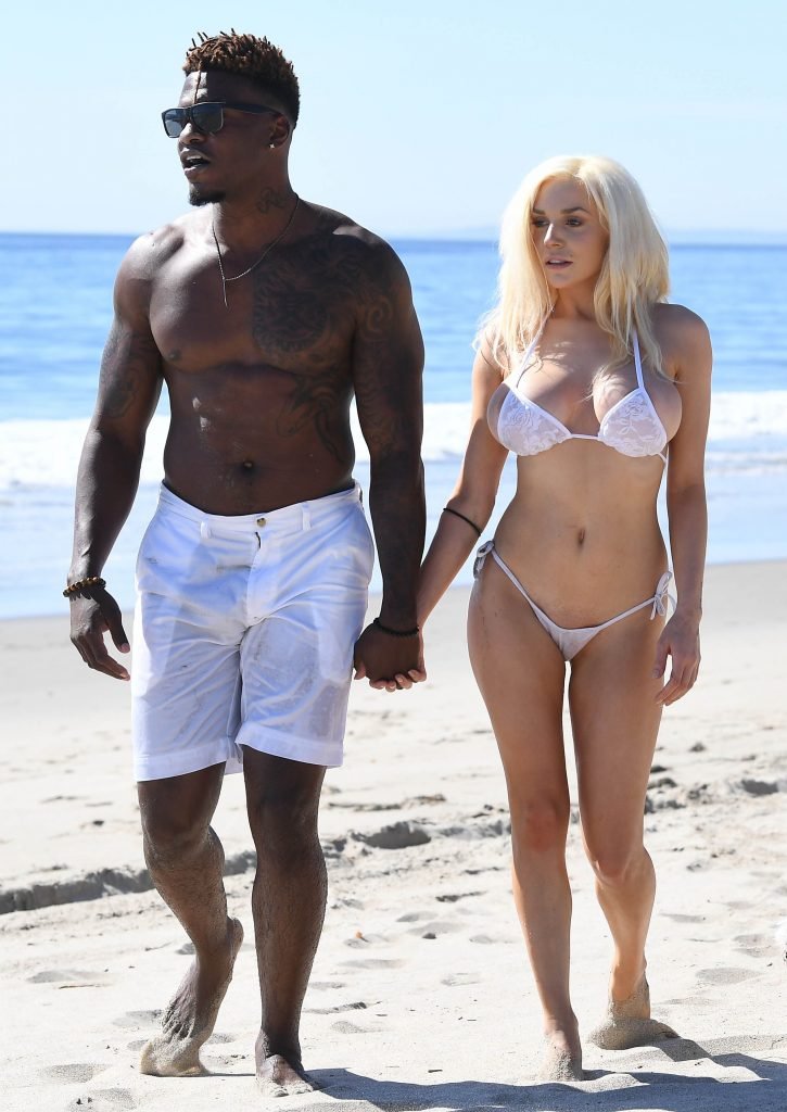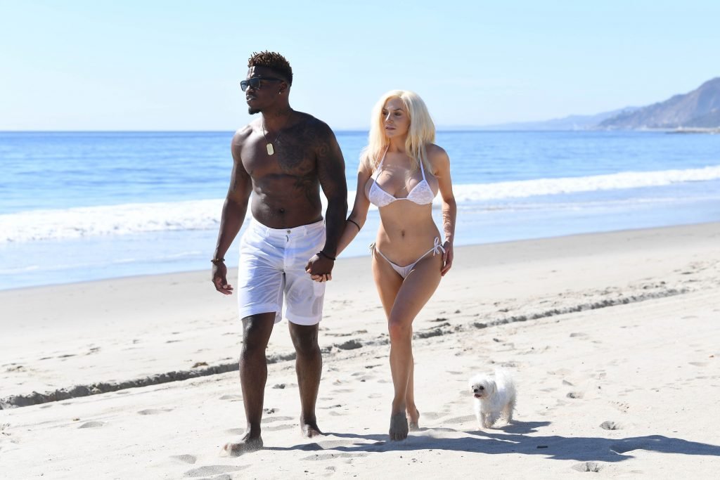 Courtney Stodden y Shondo Blades comparten un beso en la playa de Malibu, 17/10/2017. Courtney Alexis Stodden es una actriz estadounidense (Love Addict), modelo adulta, artista musical, estrella de reality TV. Edad – 23 años.