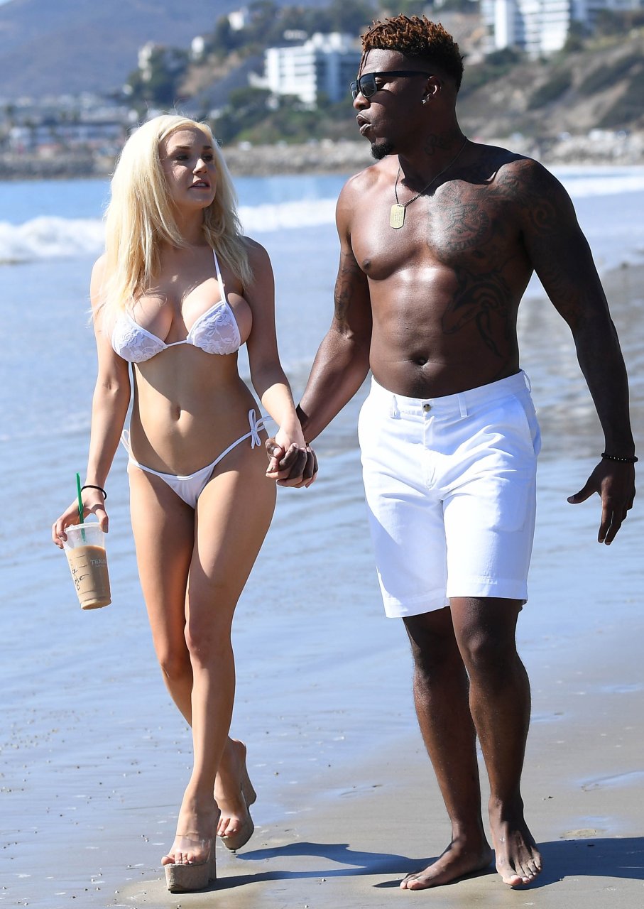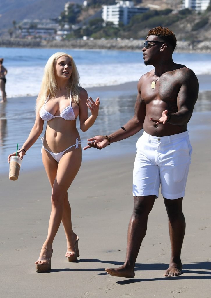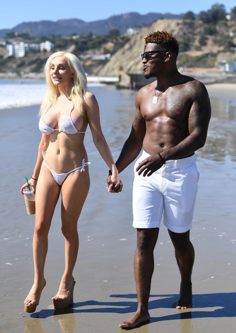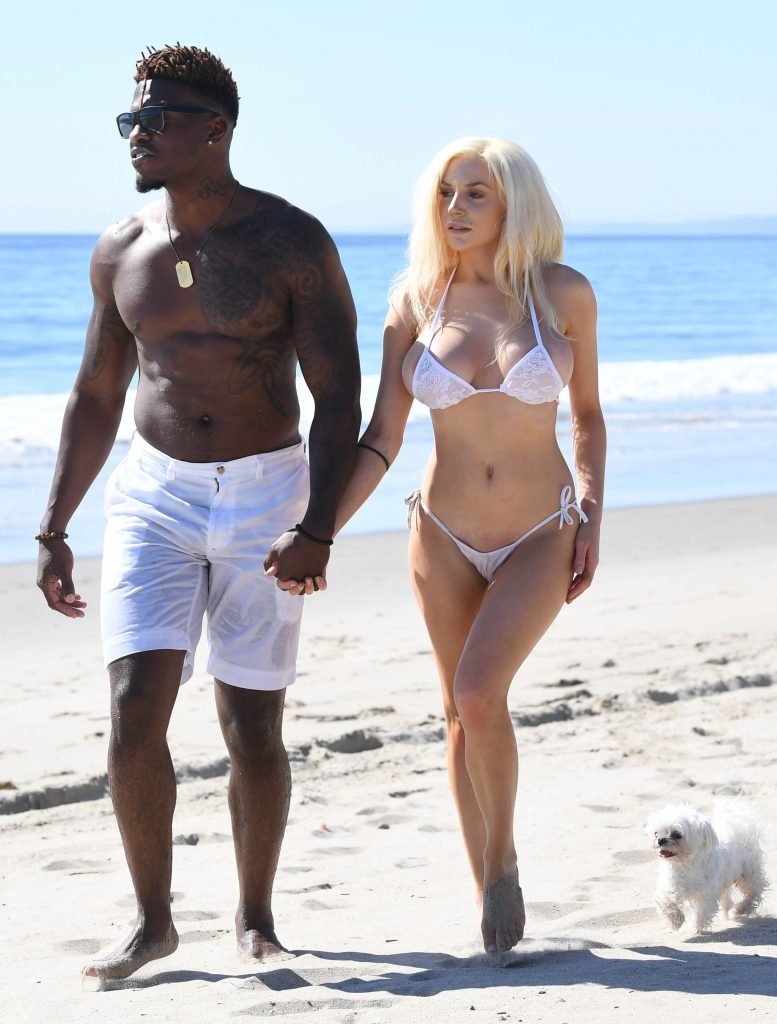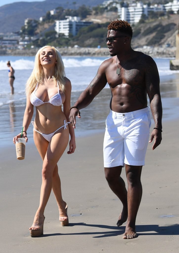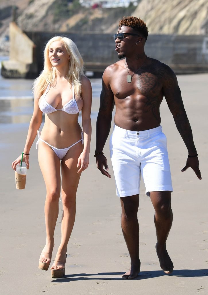 Courtney Stodden y Shondo Blades comparten un beso en la playa de Malibu, 17/10/2017. Courtney Alexis Stodden es una actriz estadounidense (Love Addict), modelo adulta, artista musical, estrella de reality TV. Edad – 23 años.