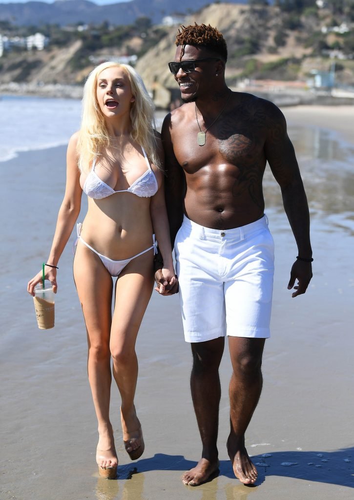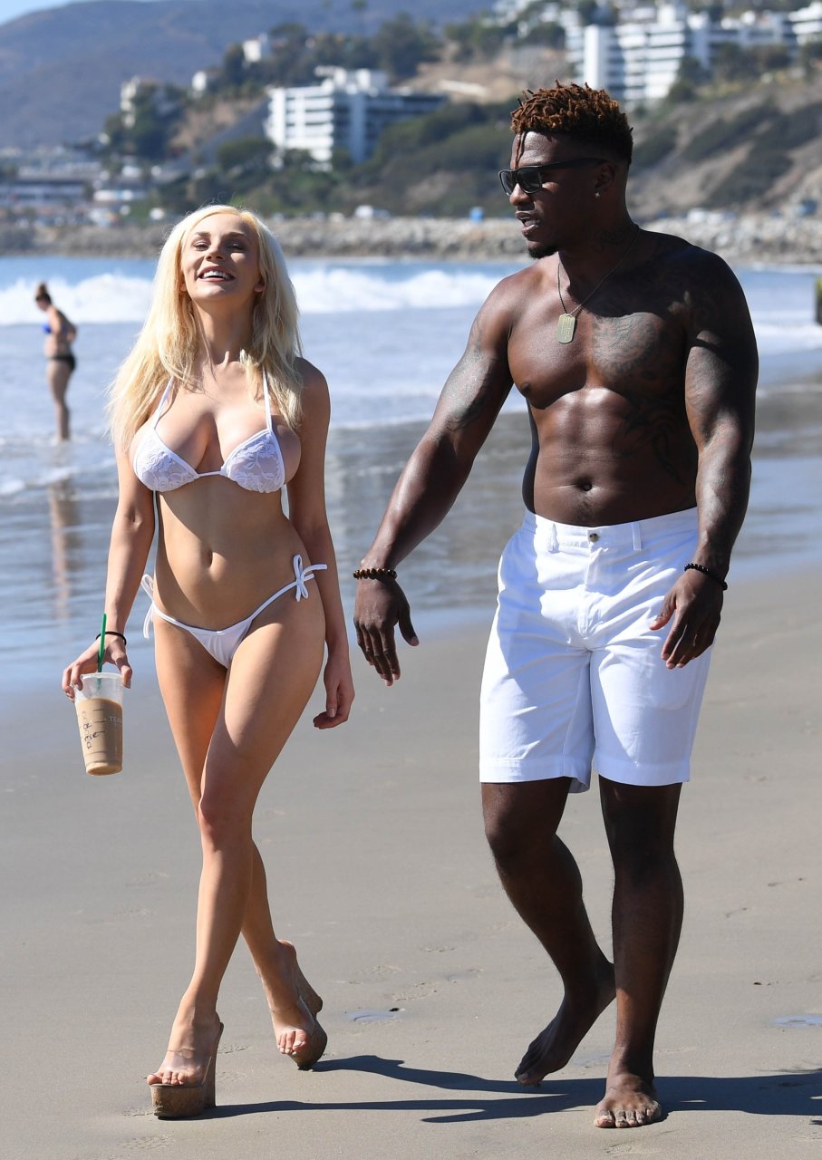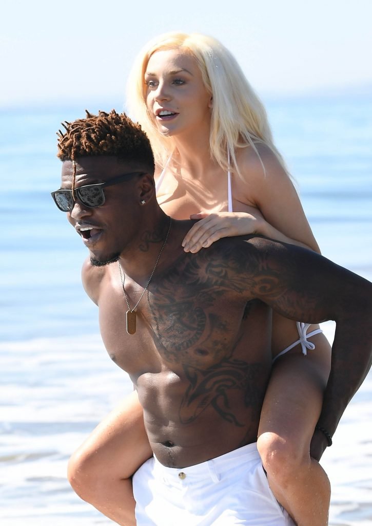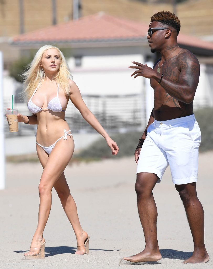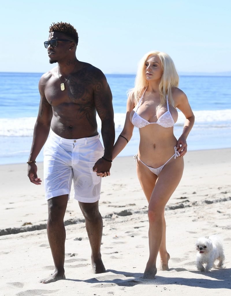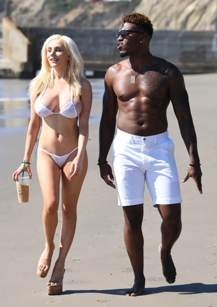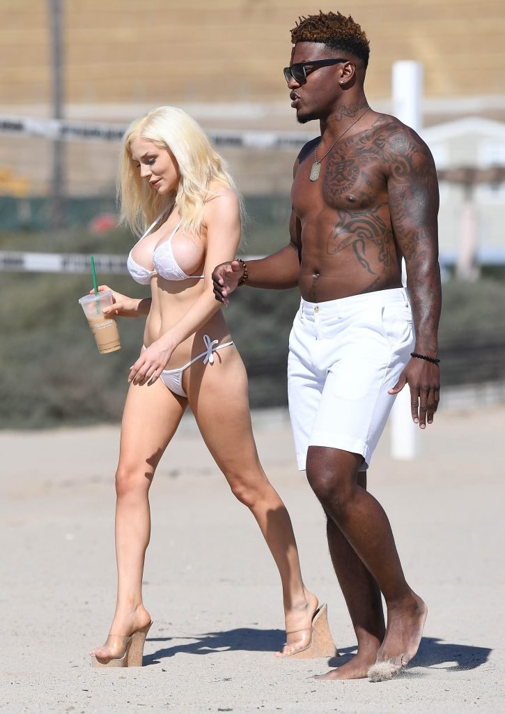 Courtney Stodden y Shondo Blades comparten un beso en la playa de Malibu, 17/10/2017. Courtney Alexis Stodden es una actriz estadounidense (Love Addict), modelo adulta, artista musical, estrella de reality TV. Edad – 23 años.