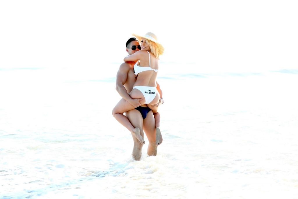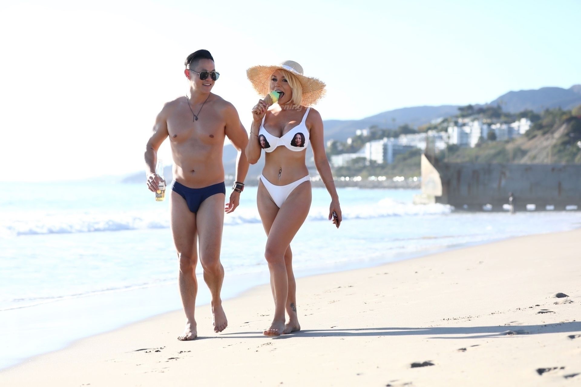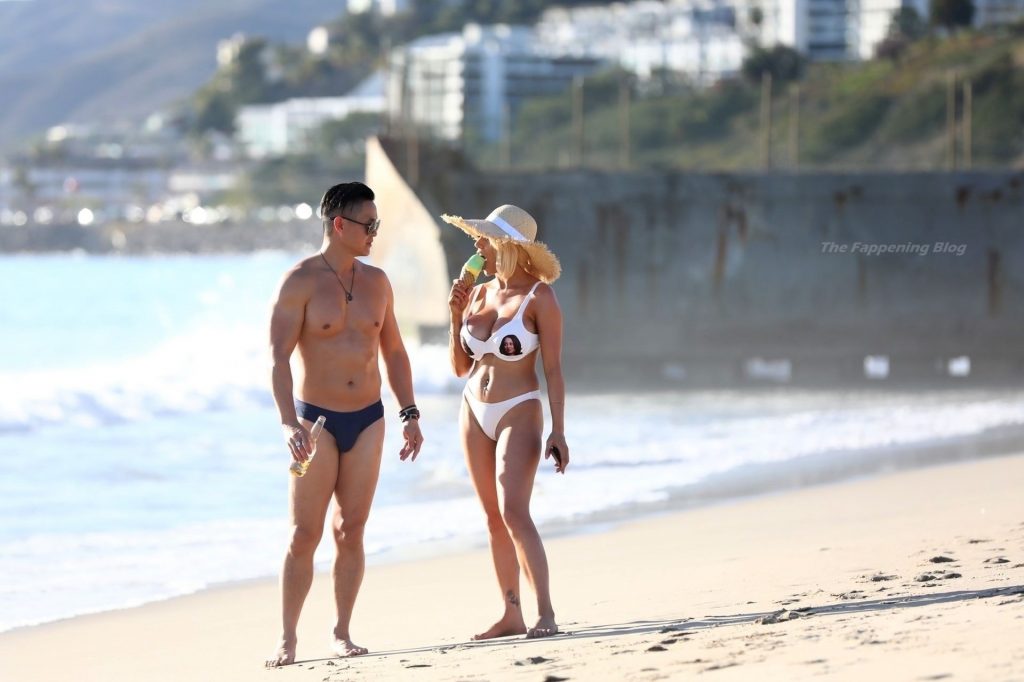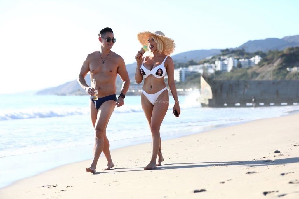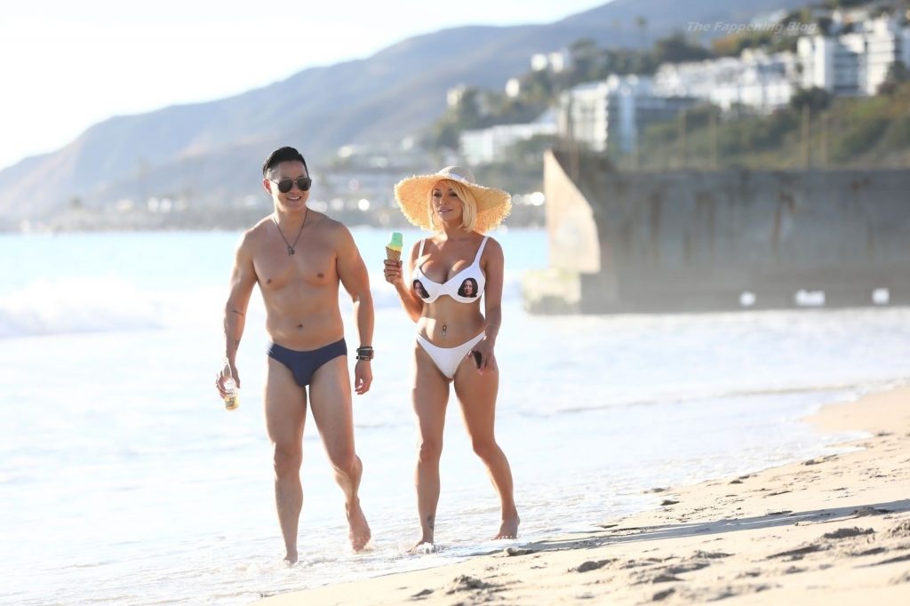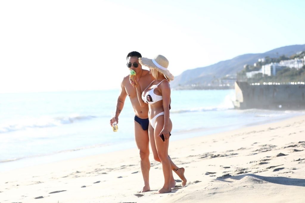 Courtney Stodden y su novio millonario empresario son inseparables mientras disfrutan su tiempo en la playa bebiendo cerveza y comiendo helado en Malibu, 20/01/2021.