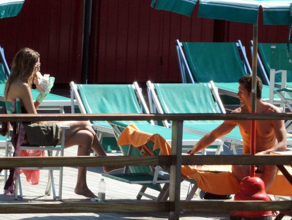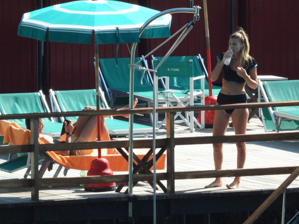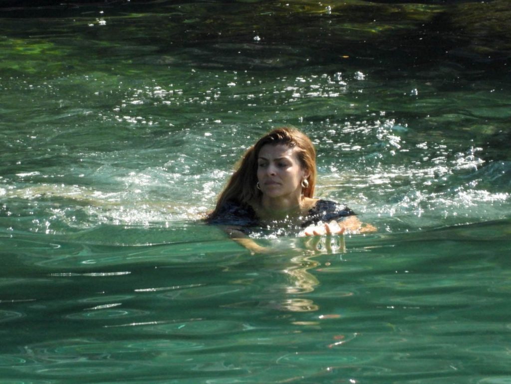 La sexy presentadora de televisión italiana Cristina Chiabotto fue vista tomando un baño en el mar temprano en la mañana, luego desayunando con una pizza – Portofino, 23/06/2020.