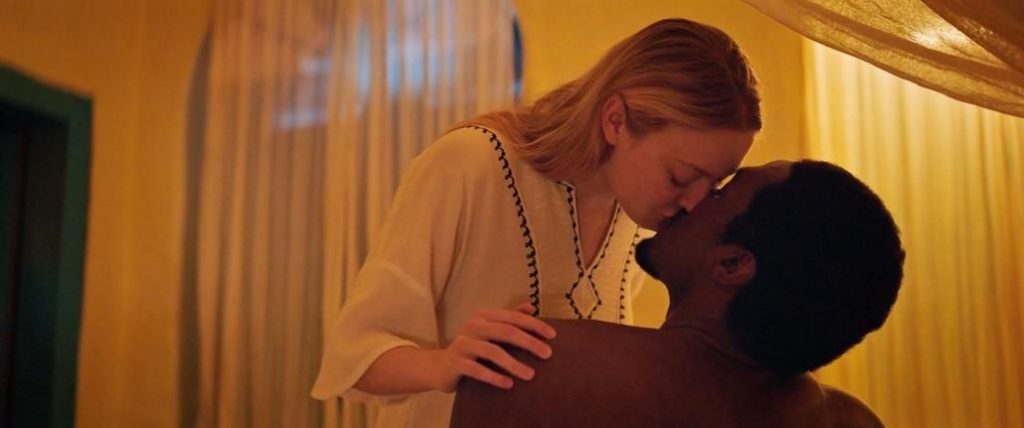 In the next short sex scene, we see Dakota Fanning on her back, breathing hard as she has sex, topless and revealing the top of her tits.