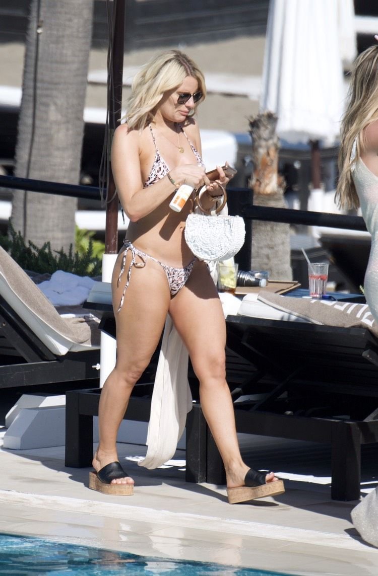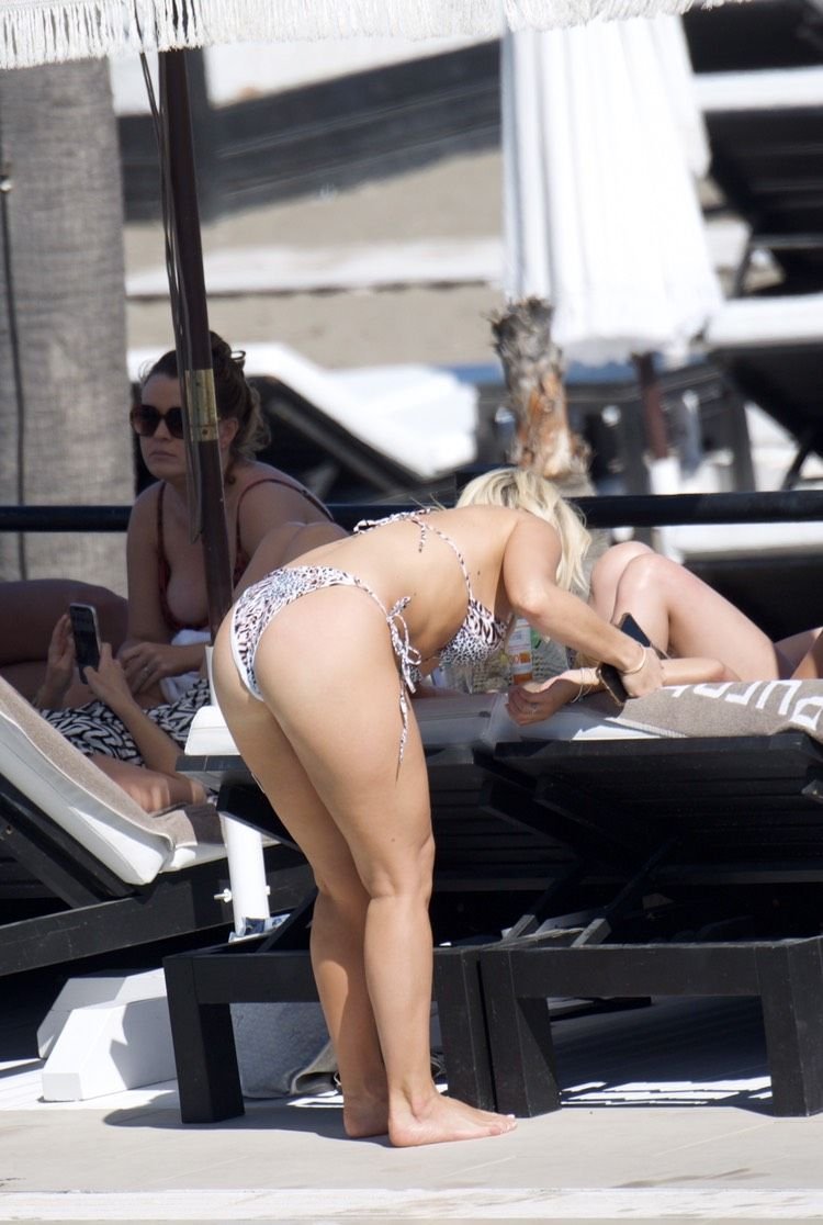 Danielle Armstrong continúa sus vacaciones en Marbella, 27/05/2019. La estrella de televisión de 31 años fue vista en bikini junto a la piscina con amigos.