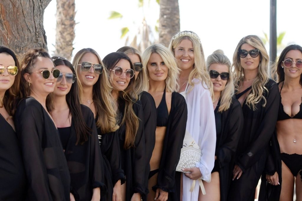 La ex estrella de TOWIE Danielle Armstrong muestra su cuerpo de playa con un bikini negro mientras es fotografiada con su hermana antes de su boda en Marbella, 26/05/2019.