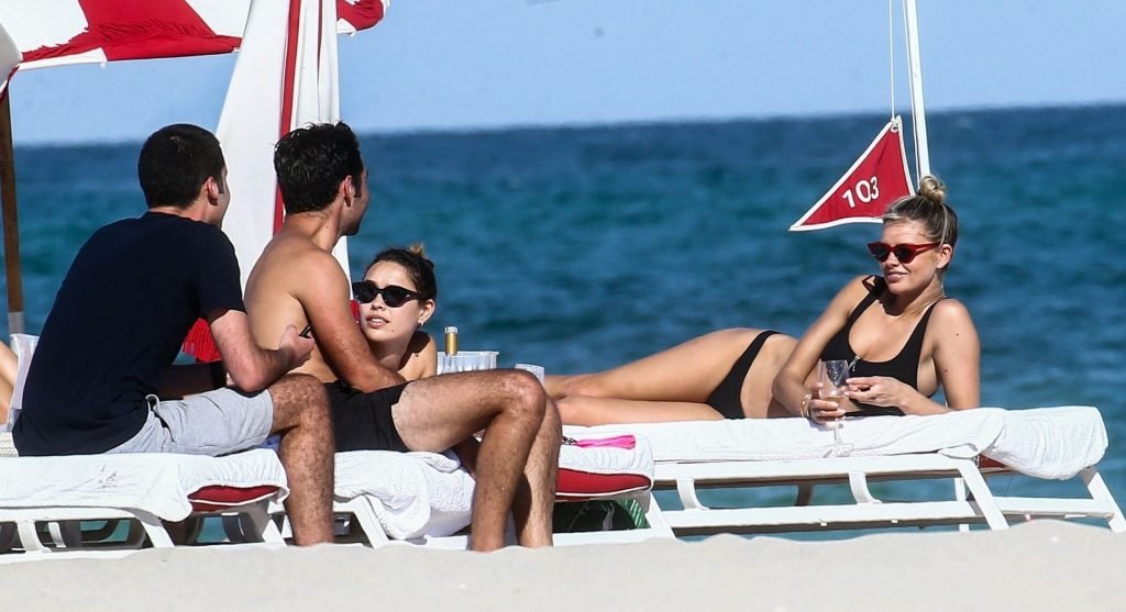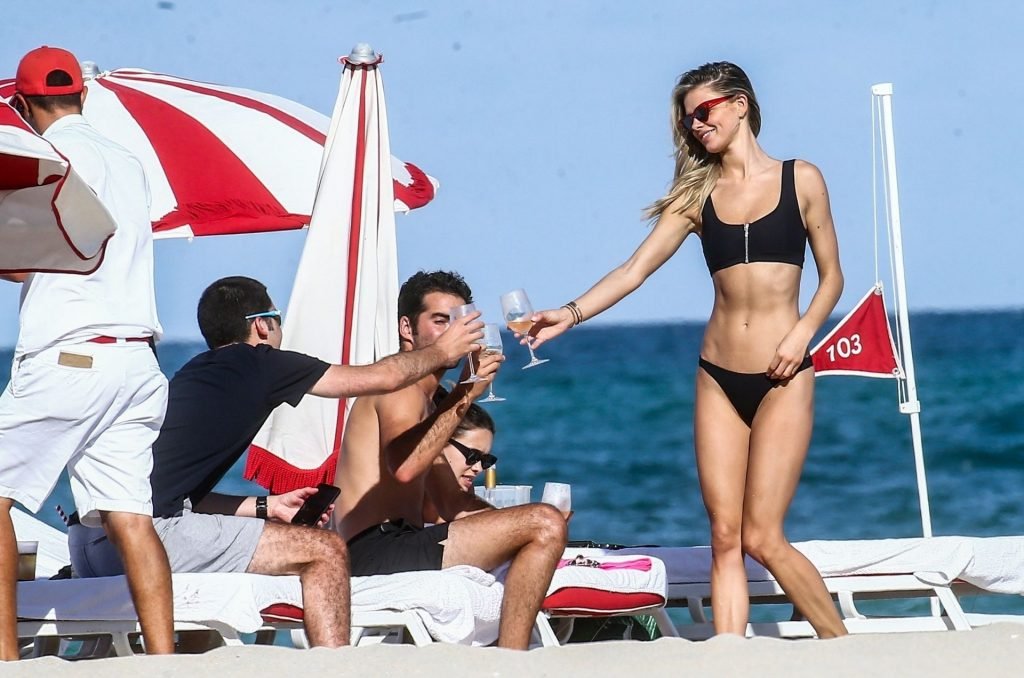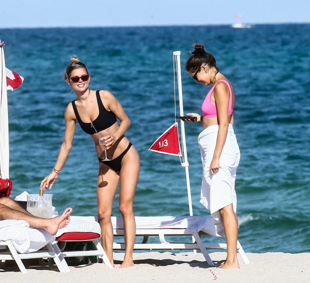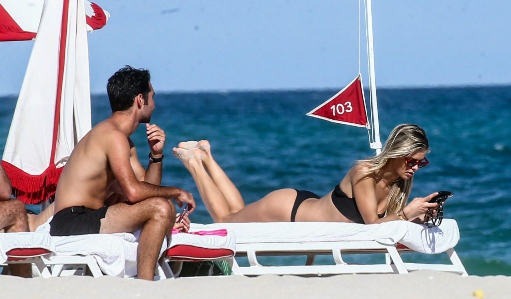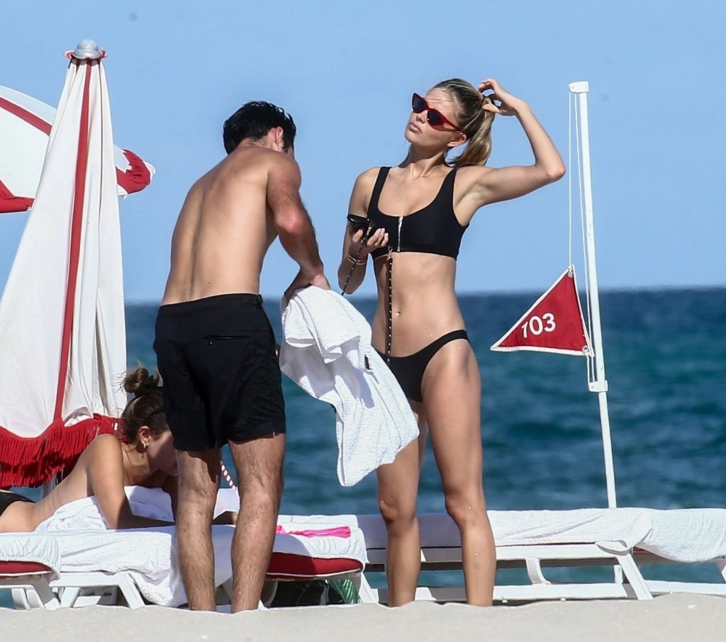 Danielle Knudson disfruta de una relajante tarde de domingo con un acompañante masculino en Miami Beach, 03/03/2019. La modelo canadiense se bronceó en unas tumbonas mientras disfrutaba de algunas bebidas frías.