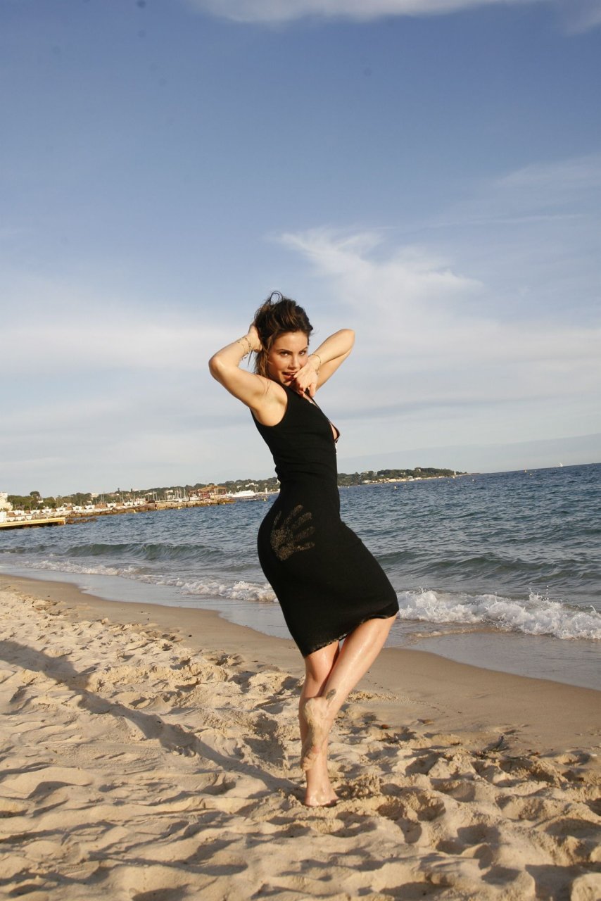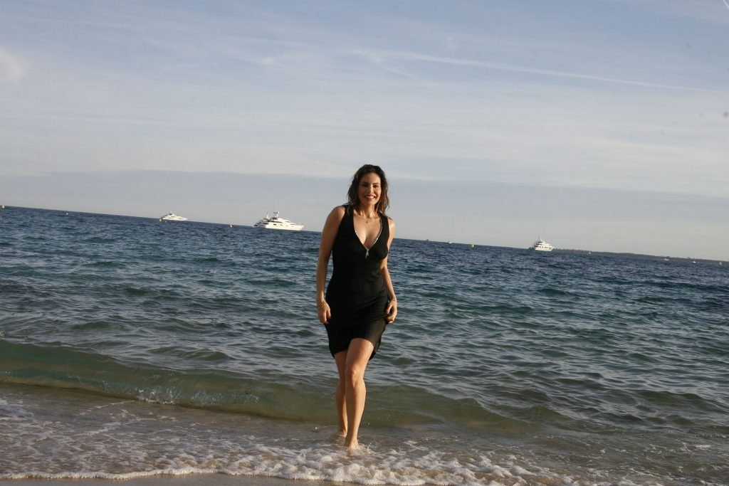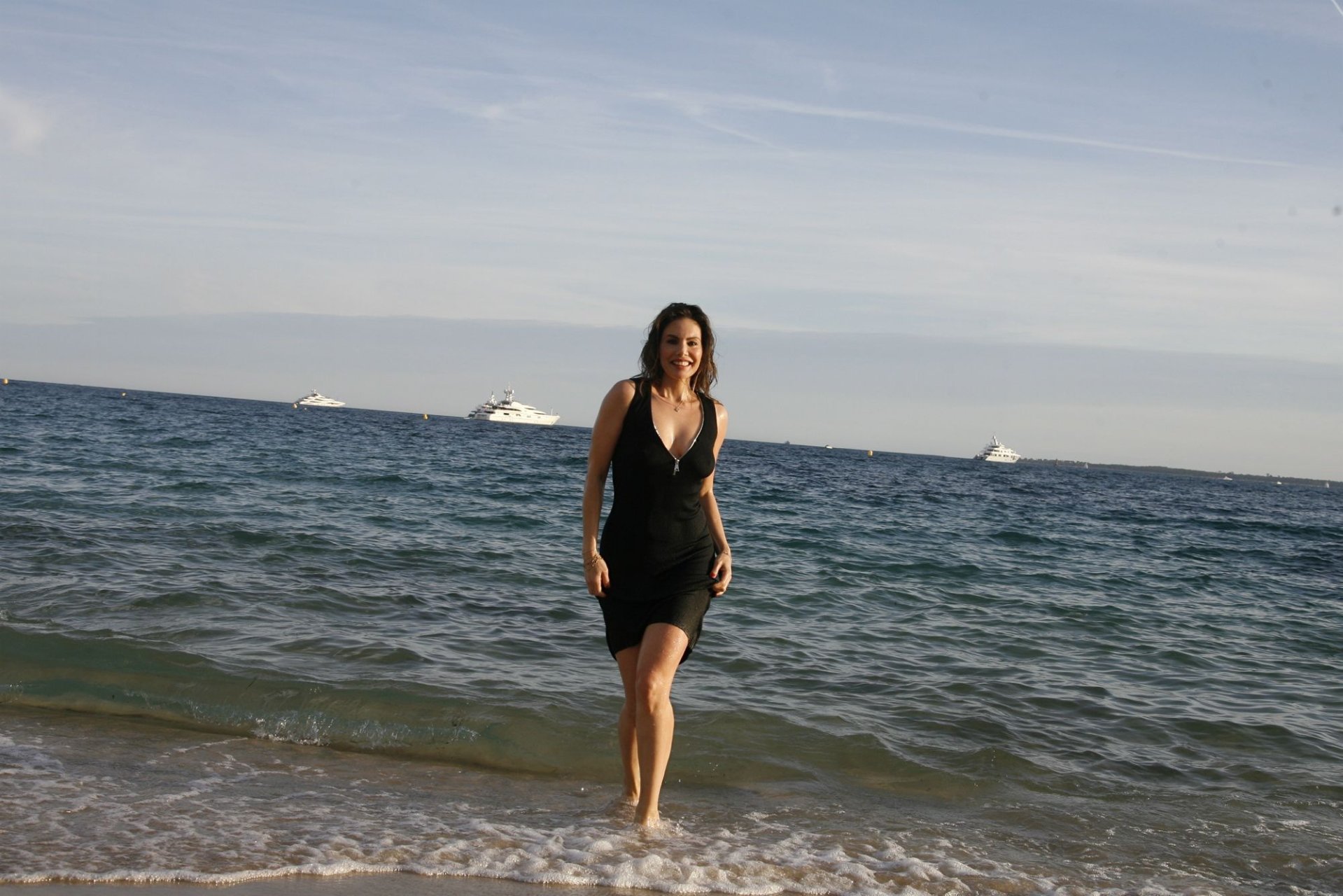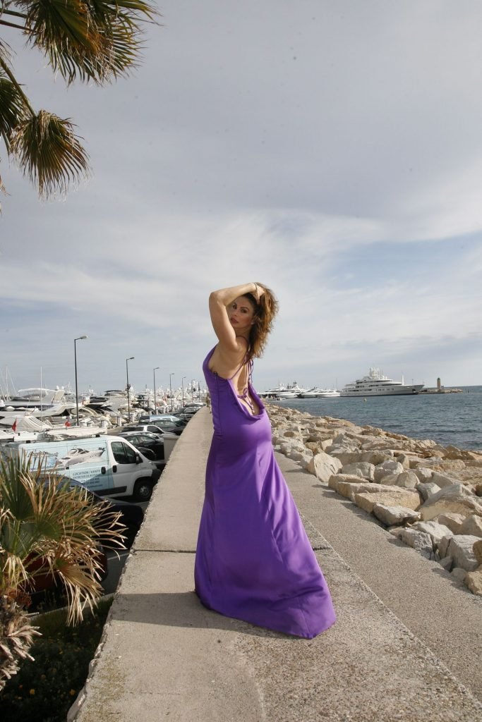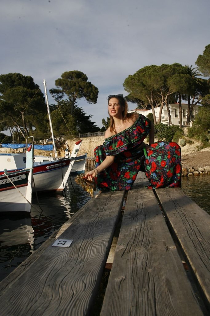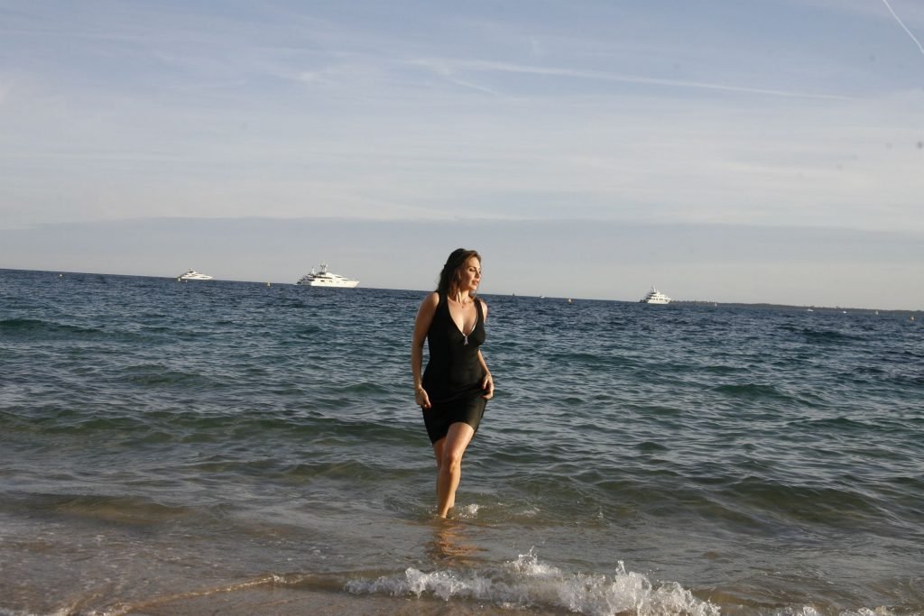 Dany Michalski posa desnuda cubierta en la sesión de fotos de Andreas Meyer en la playa de Cannes, Francia, 22/05/2017. Dany Michalski es presentadora, actriz y modelo internacional.