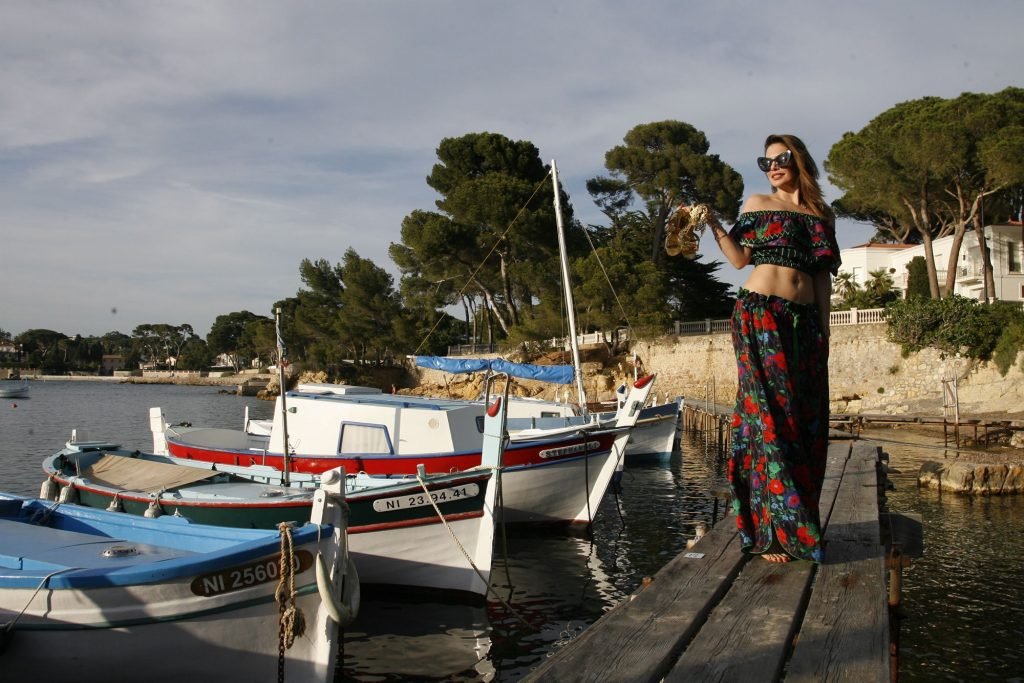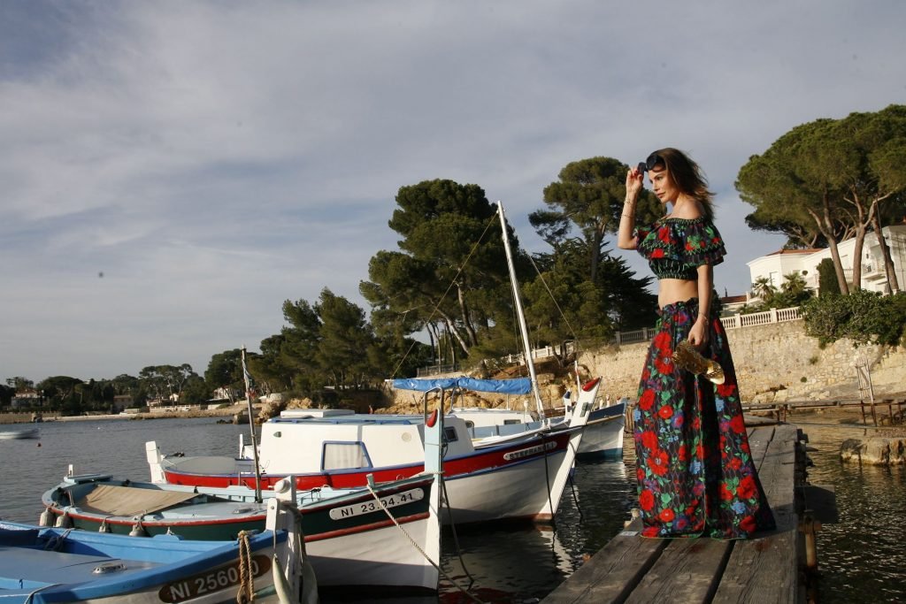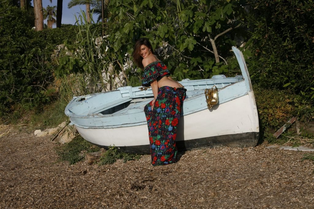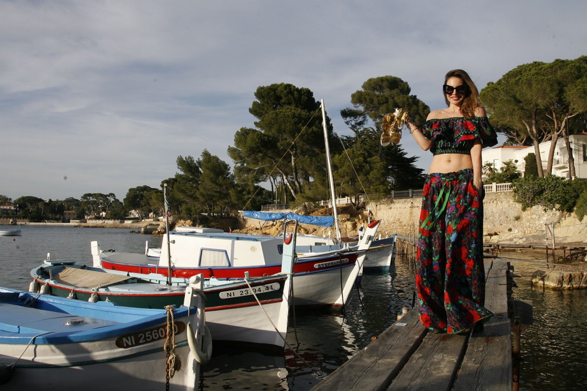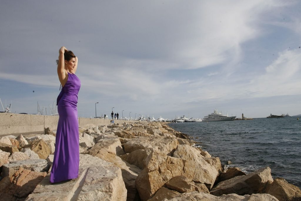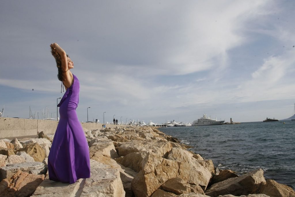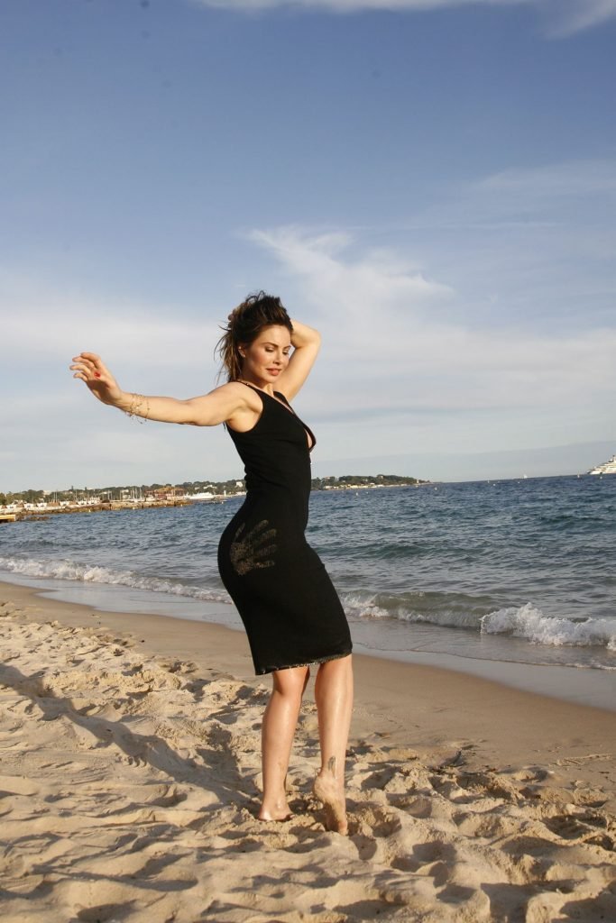 Dany Michalski posa desnuda cubierta en la sesión de fotos de Andreas Meyer en la playa de Cannes, Francia, 22/05/2017. Dany Michalski es presentadora, actriz y modelo internacional.