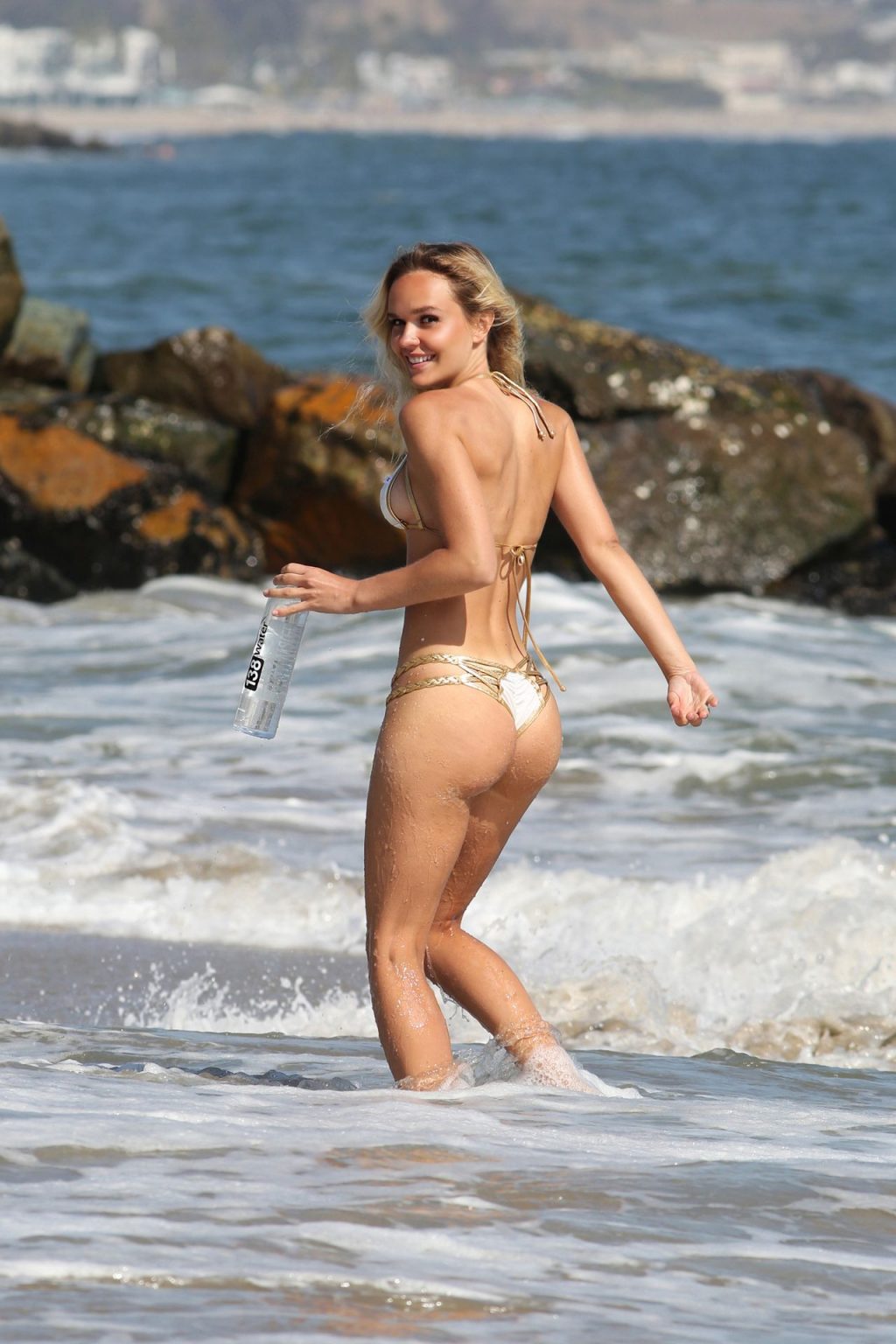 La modelo ruso/estadounidense Dasha Inyutkina presume su sexy cuerpo de playa con un diminuto bikini mientras graba un nuevo anuncio para 138 Water en Malibu, 27/05/2020.