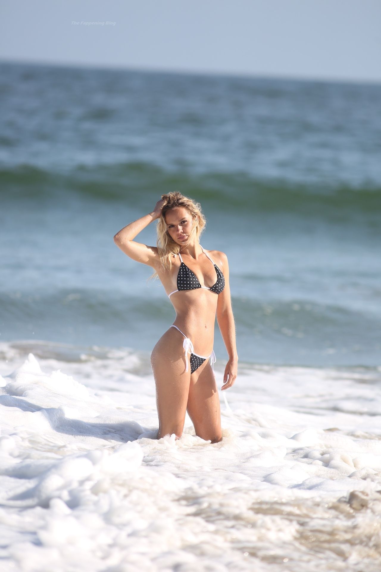 Dasha Inyutkina posa para una sexy sesión de fotos en bikini para la marca 138 en Malibu (marzo de 2021). La sexy rubia lució increíble mientras modelaba un revelador bikini de lunares y una botella de 138 Water!