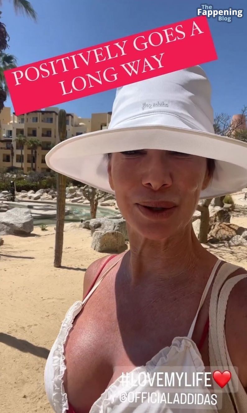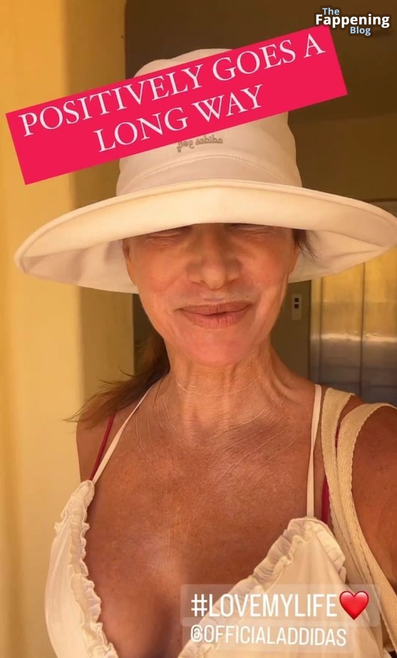 Debbe Dunning tiene sus pechos al aire, mostrando un escote impresionante con esos grandes senos, un trasero sexy y piernas en un pequeño bikini tanga mientras está de vacaciones.