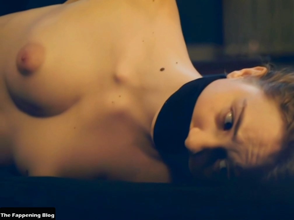 Déborah François muestra desnudez completa mientras sale del baño completamente desnuda y luego se acuesta en la cama. Luego la vemos desnuda de lado en la cama con las piernas atadas juntas y las manos detrás de la espalda mientras el hombre intenta tener sexo con ella usando un consolador rojo grande. Déborah luego se libera y vemos más desnudez frontal completa mientras se apoya contra la pared y luego entra al baño, donde la vemos con un sostén rojo cuando se viste.