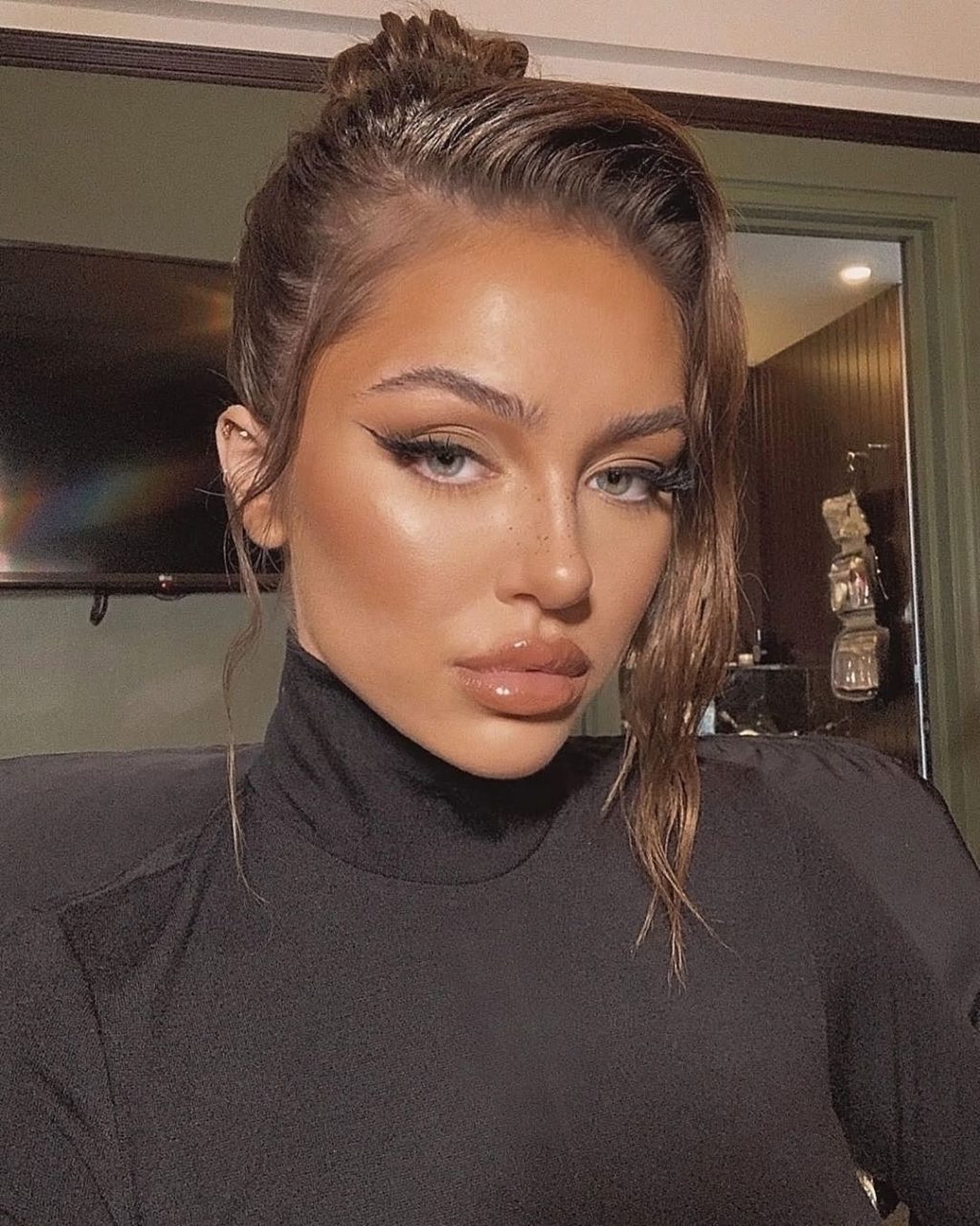 Today Delilah is spotted at Catch NYC’s Anniversary Party, wearing a beige bodysuit with many sideboob effects. She was exposing nipples to paparazzi, who were waiting for an opportunity like this! And, of course, Delilah’s nipples are here for your eyes! Belle is a young social media star, already a whore begging for hard cocks. Like other nude celebs, she also likes to expose nipples ‘by accident’! In the gallery below, besides this nip slip, you can see a braless bitch attends a night at the Maybelline Mansion!