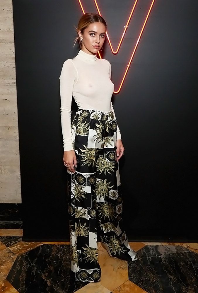 Check out recently leaked, then forcefully deleted nude celebrity! Here is the young hottie Delilah Belle Hamlin nip slip! This slight wardrobe malfunction happened on the red carpet. All while Belle was attending The Daily Front Row’s 2019 ‘Fashion Media Awards’ at Rockefeller Center in New York. Hamlin wore a pink suit and was braless, of course. Who the fuck is wearing a bra on the red carpet in this century? Her perky nipples were the stars of this night, and Delilah Belle was drugged as fuck, as you can see from her eyes and moves!