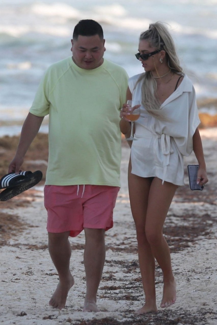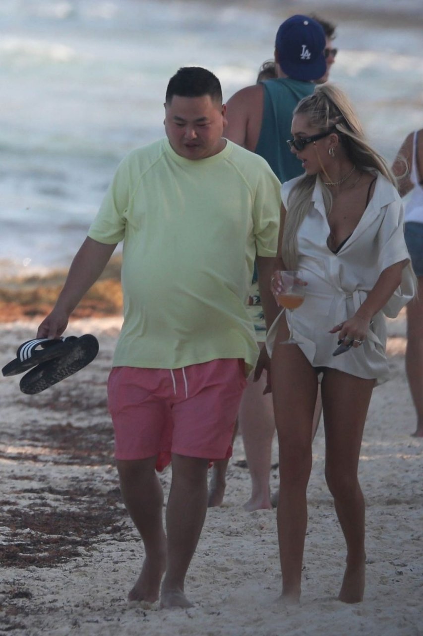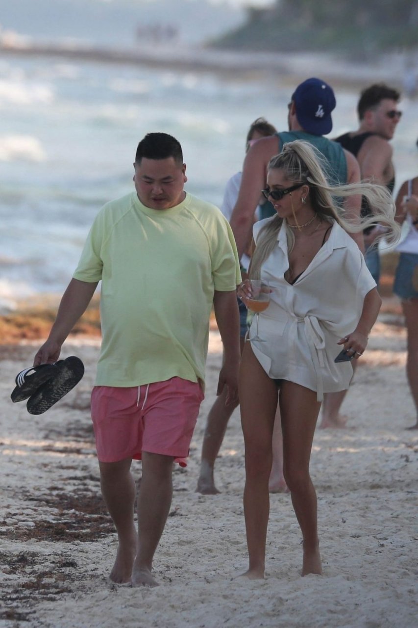 Delilah Belle y su amiga camino a una fiesta en la playa en Tulum, 28/04/2019. Las dos hacen un precopeo antes del gran juego.