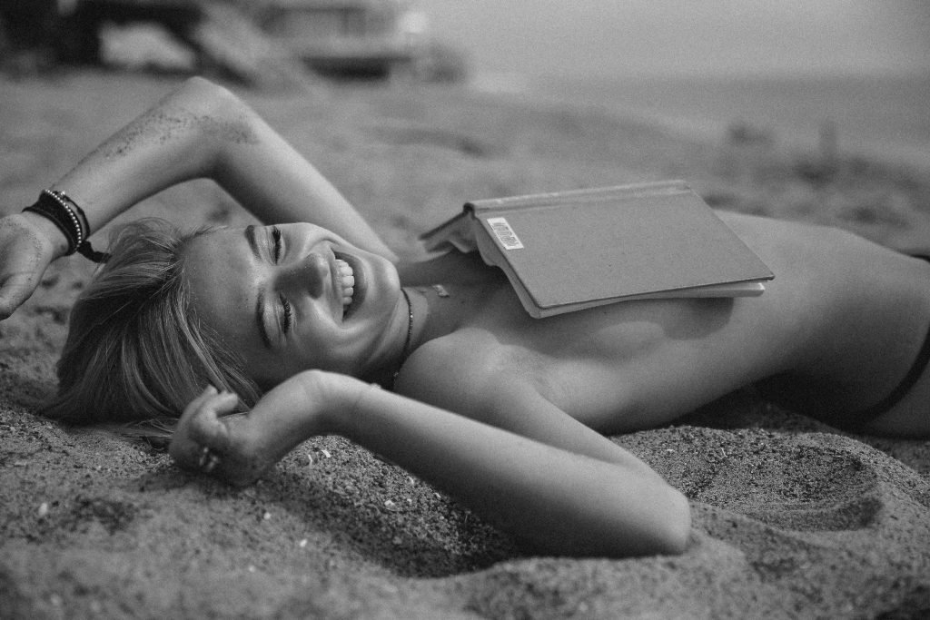 ¿Ella siempre está en la playa con un brazo sobre los pechos? Debe ser agotador. O se pone un top de bikini o simplemente deja que los pezones respiren.