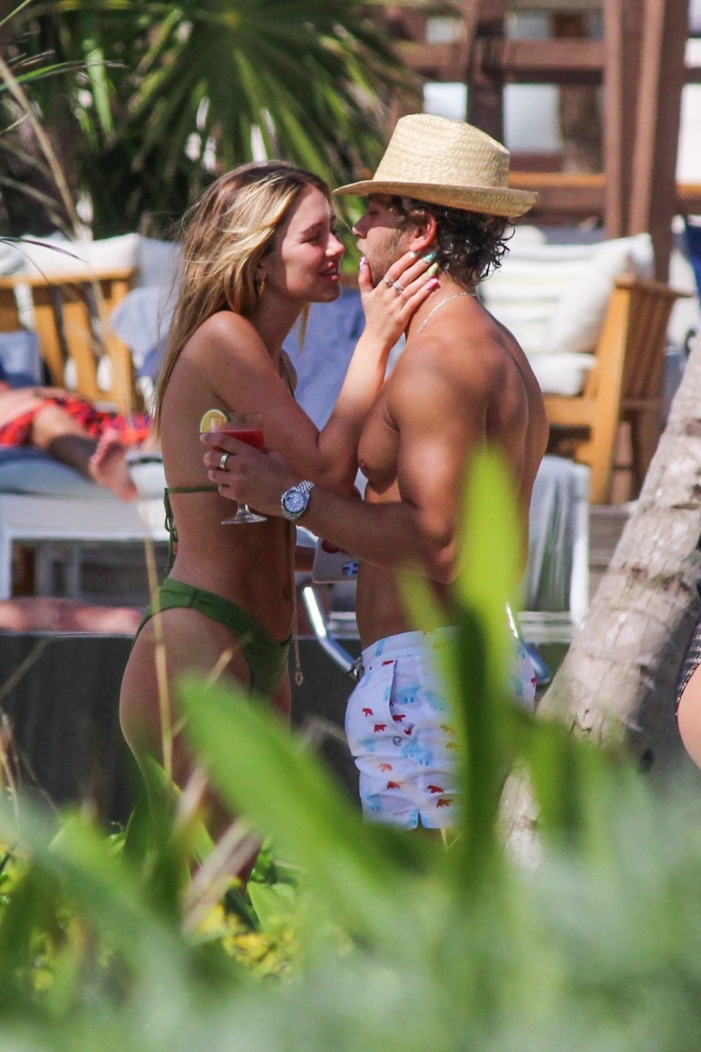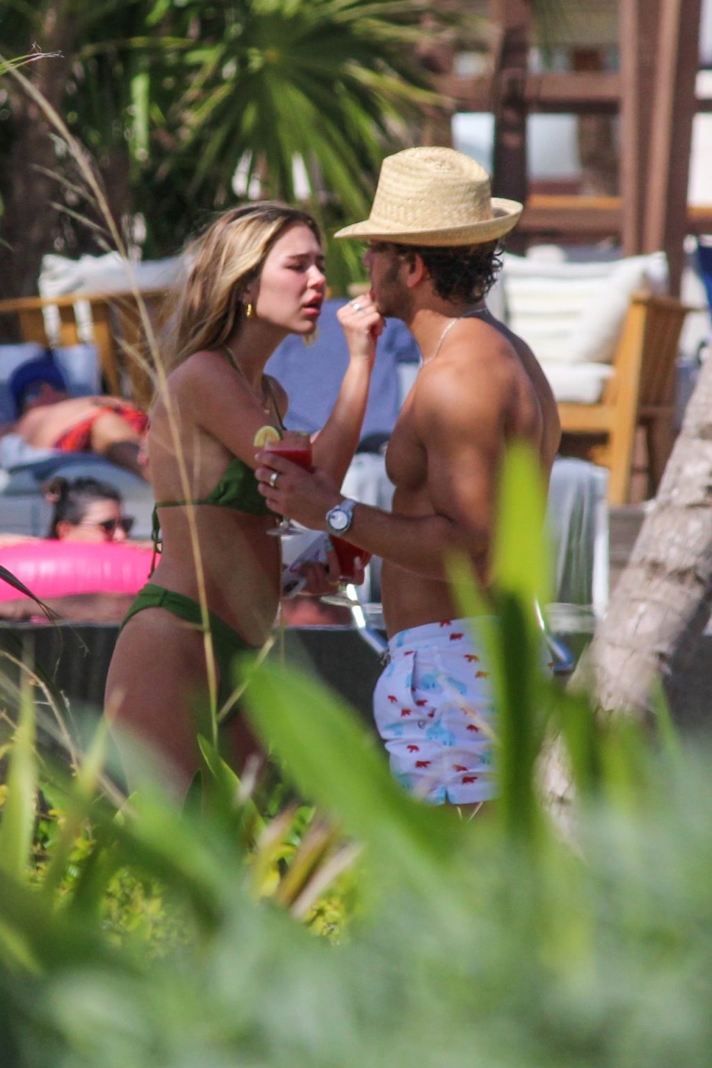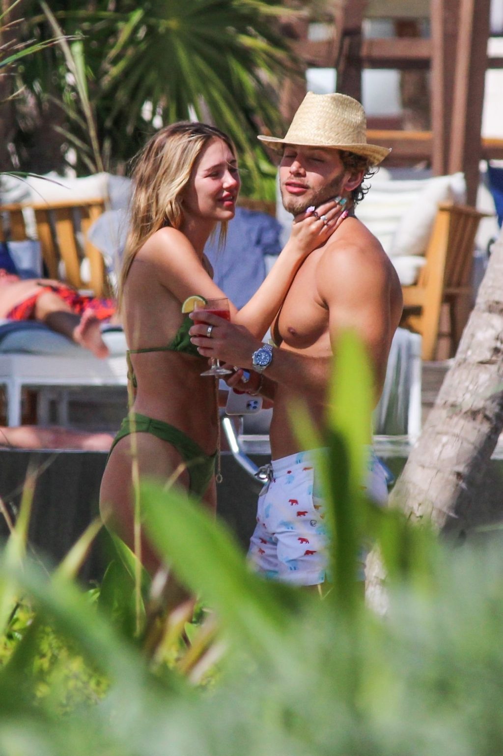 Delilah Belle Hamlin presume su figura tonificada con un bikini verde oliva con volantes de PrettyLittleThing mientras disfruta de una escapada romántica en Tulum con su novio, 24/11/2020.
