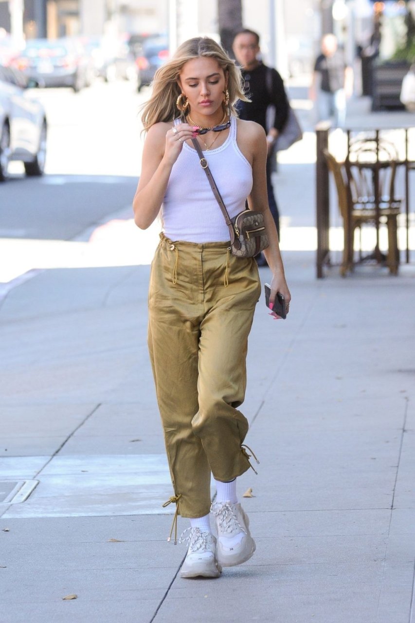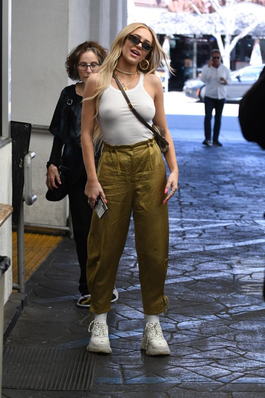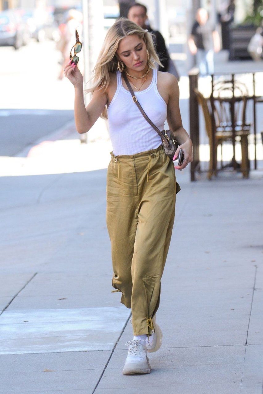 Delilah Hamlin visita un salón de cuidado de la piel y almuerza en E Baldiin en Beverly Hills, 18/04/2019. La estrella estadounidense de las redes sociales de 20 años llevaba una camiseta blanca sin sujetador. ¡Es miembro VIP del club No Bra!