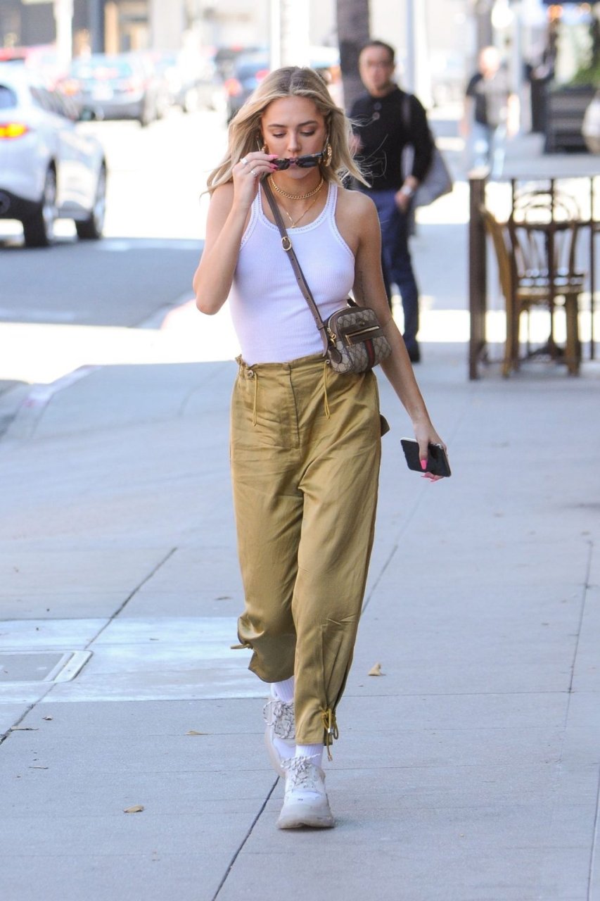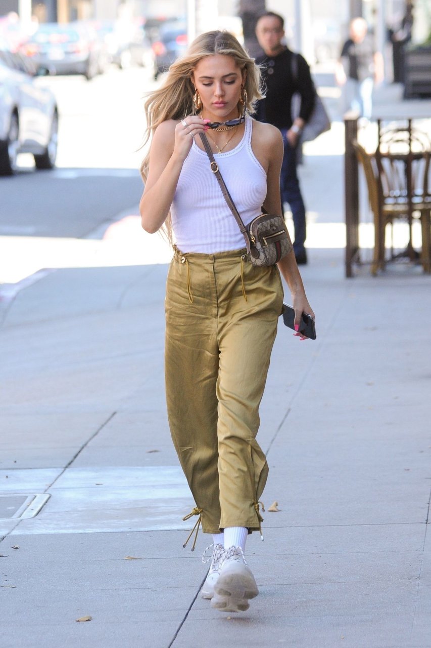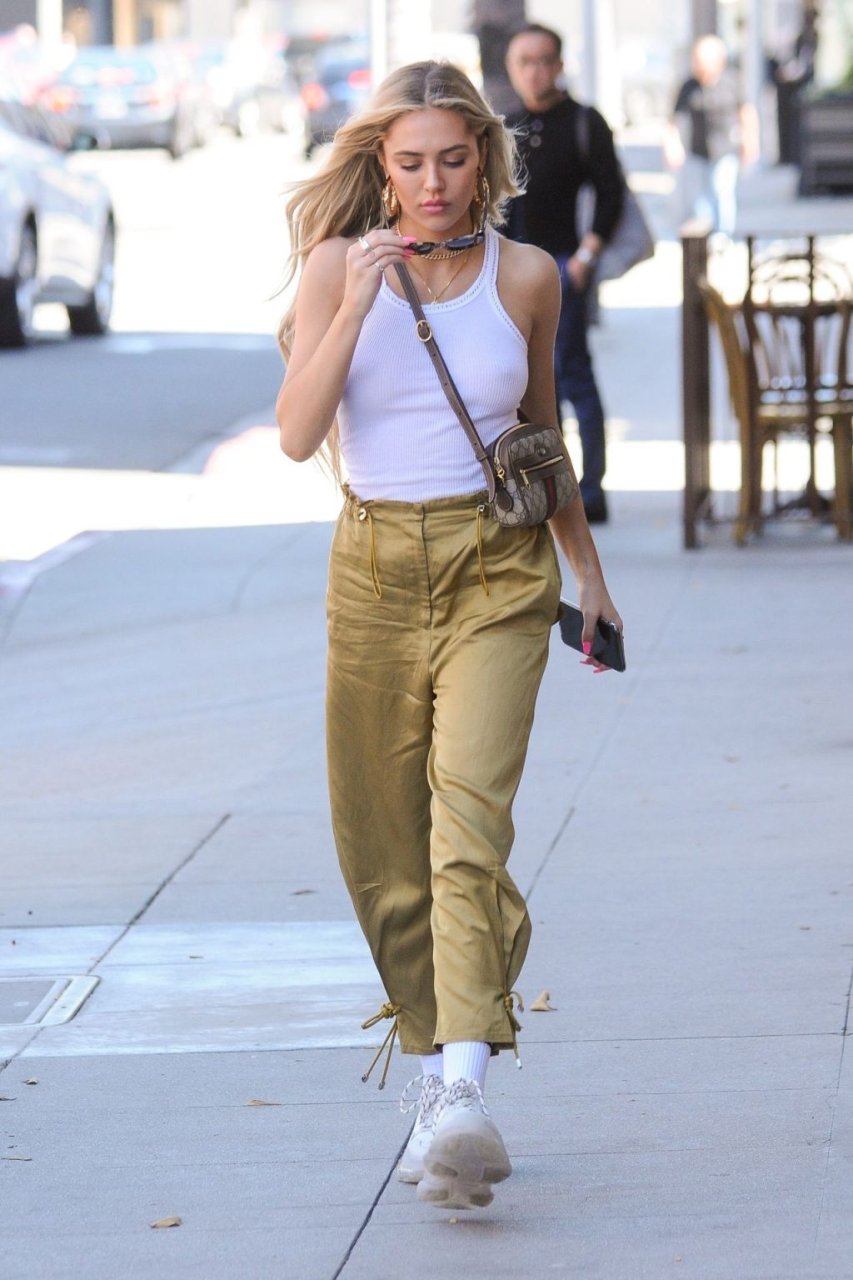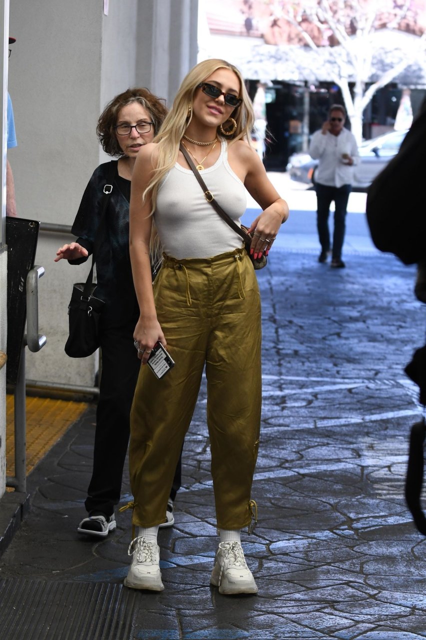 Delilah Hamlin visita un salón de cuidado de la piel y almuerza en E Baldiin en Beverly Hills, 18/04/2019. La estrella estadounidense de las redes sociales de 20 años llevaba una camiseta blanca sin sujetador. ¡Es miembro VIP del club No Bra!