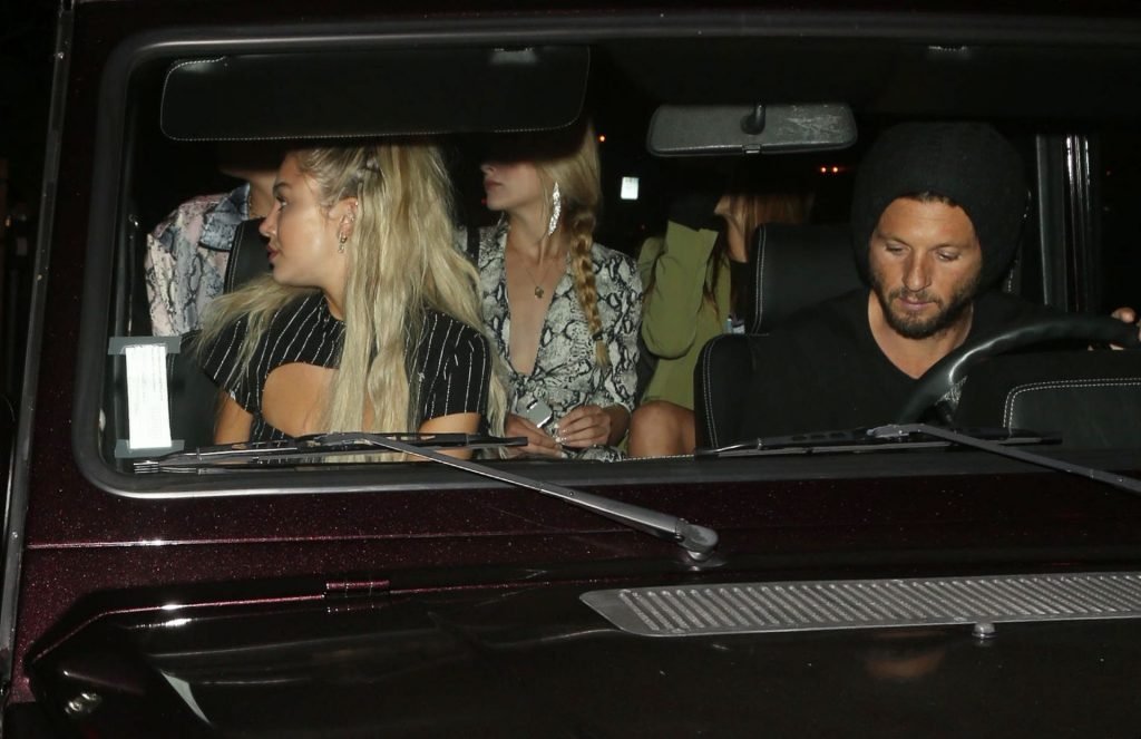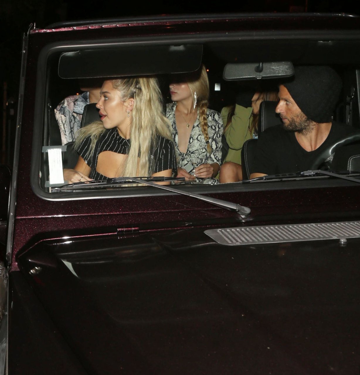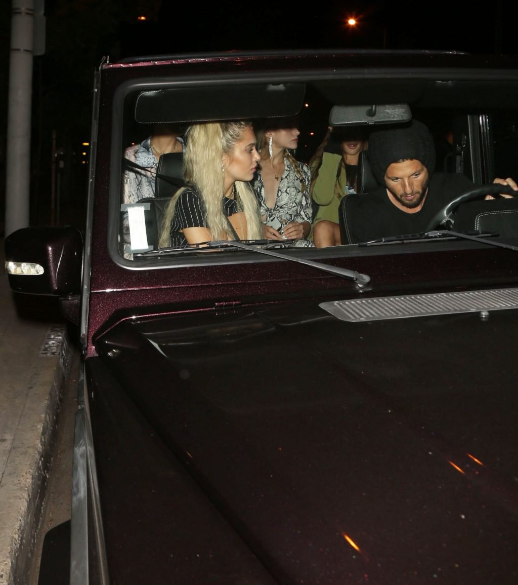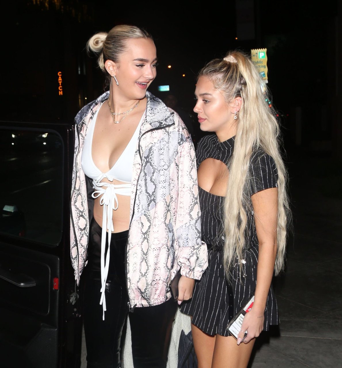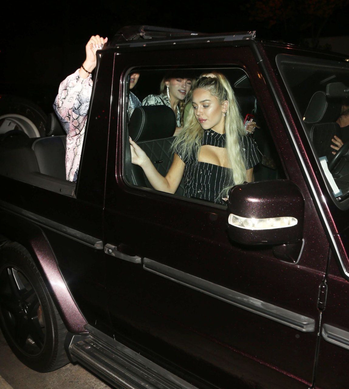 Delilah Hamlin no se siente tímida mientras muestra mucha piel durante una noche con las chicas en Hollywood, 03/05/2019. Delilah exhibe su escote y piernas con un conjunto de rayas muy revelador mientras festeja con amigas.