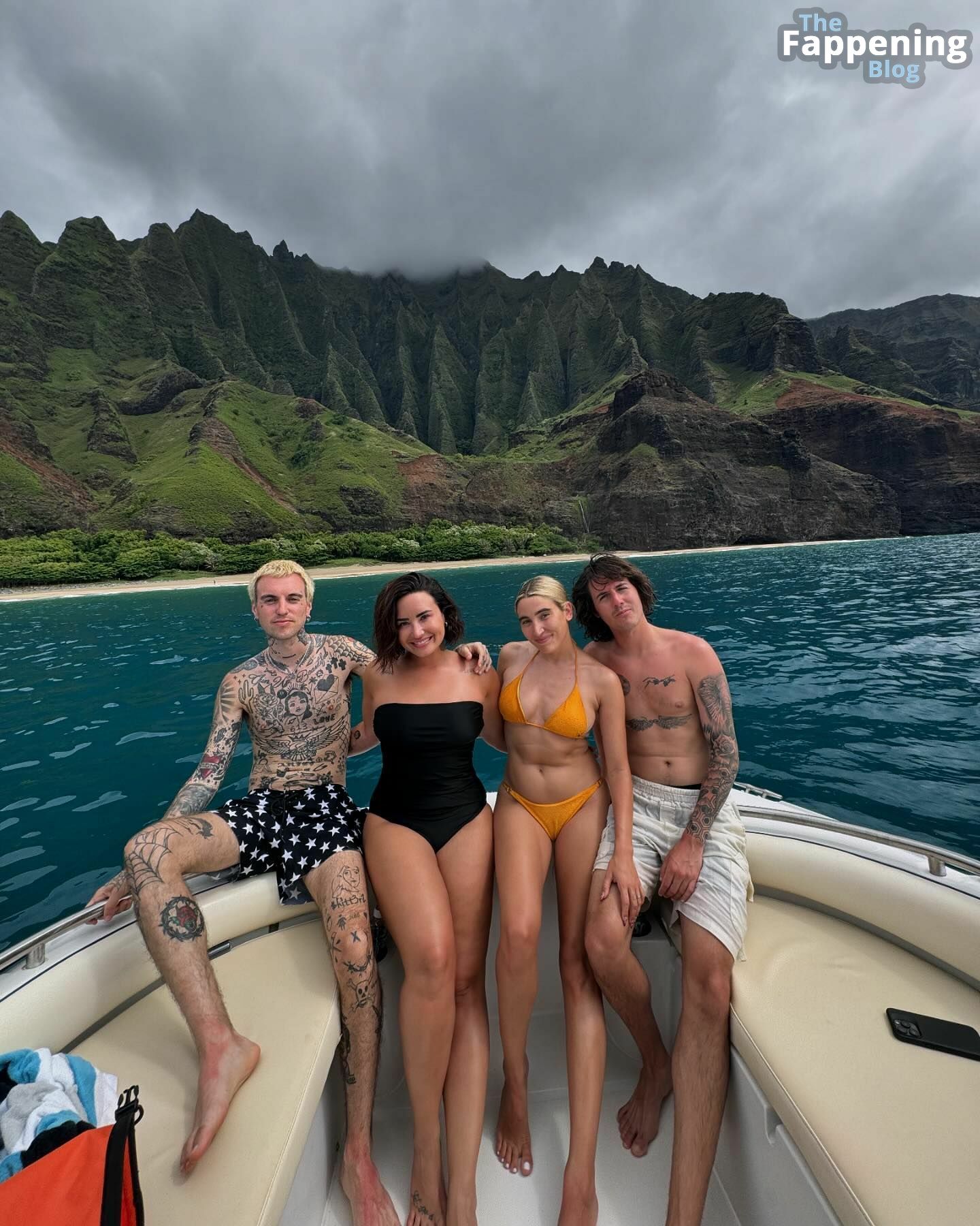 Avanzando hasta 2024, Demi vuelve a sorprender a los fappers, pero esta vez con un estilo más relajado. En las nuevas fotos, está descansando en un barco con un elegante bañador bandeau negro que resalta sus curvas y muestra sus largas y sexys piernas desnudas. La cantante luce feliz y relajada, disfrutando el momento con un impresionante paisaje oceánico de fondo.