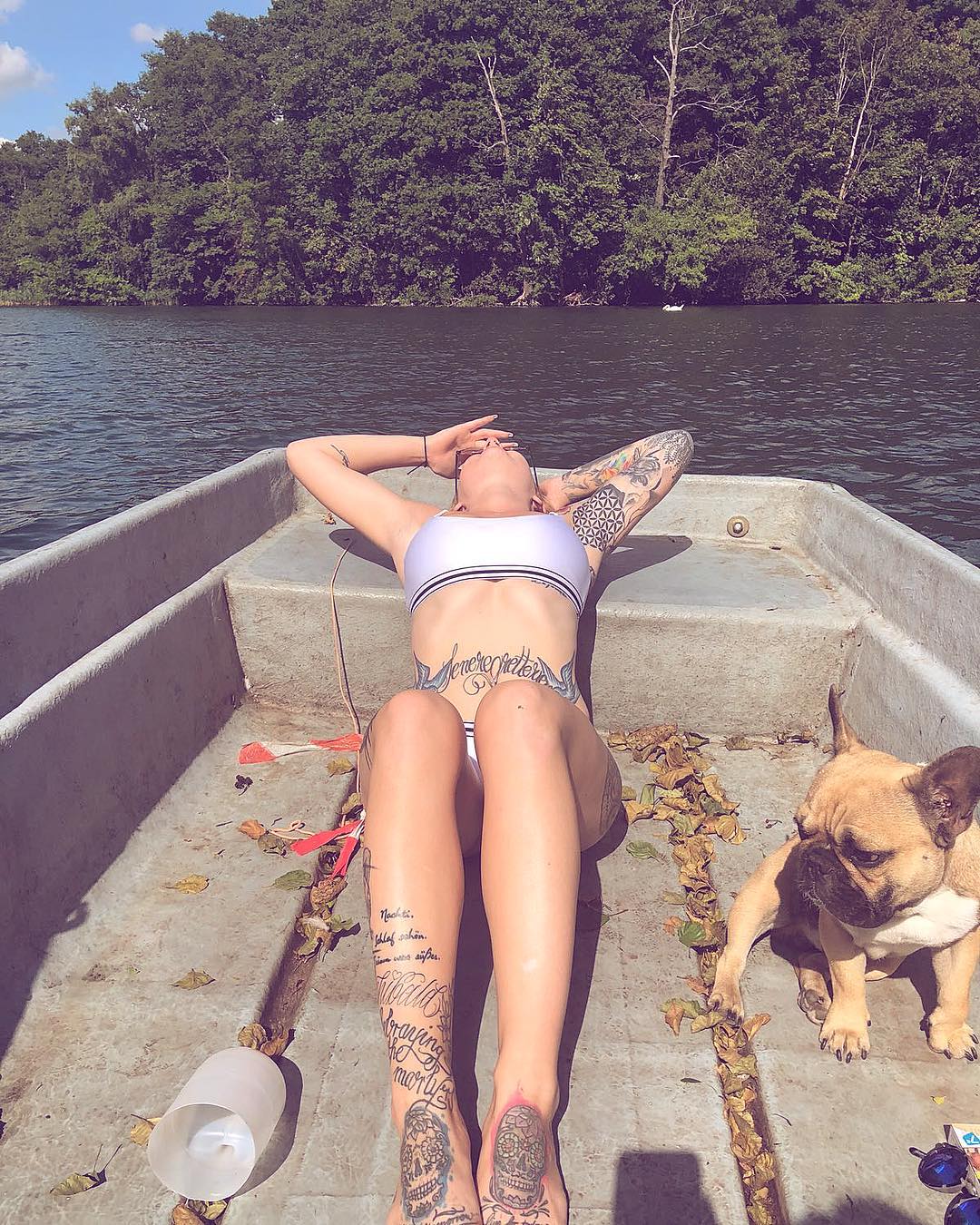 Mira las fotos ligeramente desnudas y calientes de Denise Duck en las redes sociales, mostrando su cuerpo tatuado.