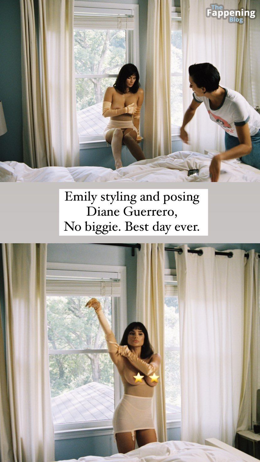 Aunque las imágenes de Diane Guerrero desnuda de pecho aún están censuradas, algunas fotos detrás de cámaras junto con otros selfies en redes sociales han aparecido en línea.