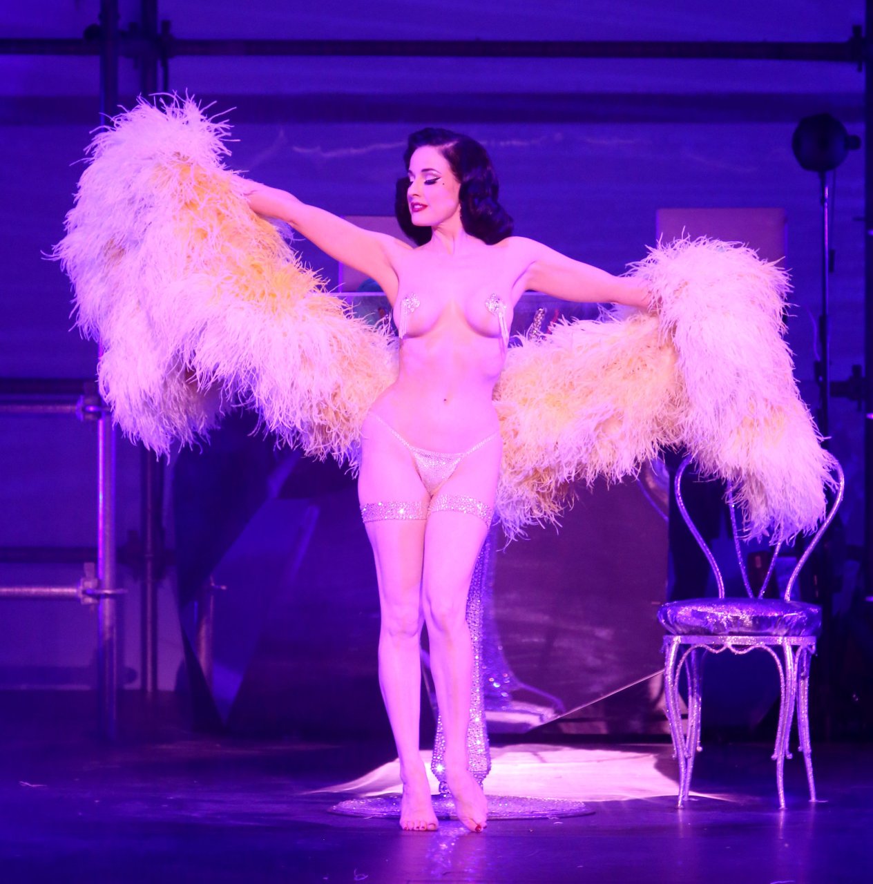 Dita Von Teese actúa en la pasarela del desfile de moda Philipp Plein durante la Semana de la Moda de Nueva York, 09/09/2017. Heather Renée Sweet es una bailarina, modelo, diseñadora, actriz y emprendedora estadounidense. Edad: 44.