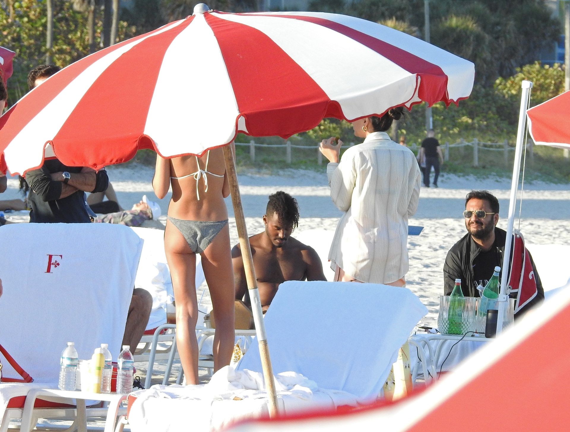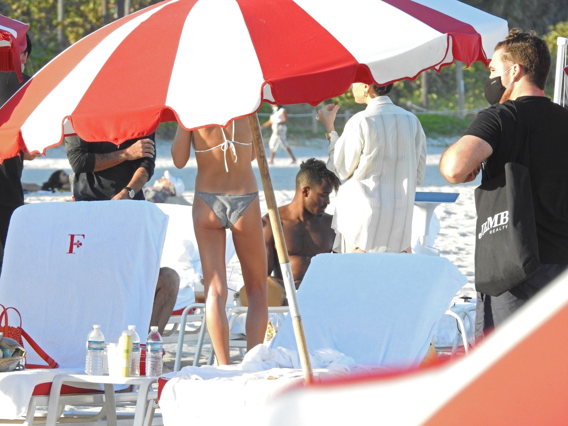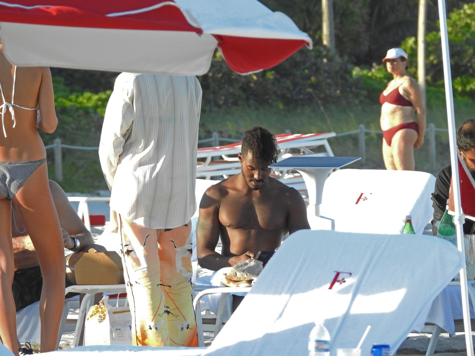 El músico estadounidense DJ Ruckus fue fotografiado mientras conversaba con algunas mujeres disfrutando de un día en la playa en Miami Beach, Florida, en el área VIP de un lujoso resort frente al mar, 27/01/2021.