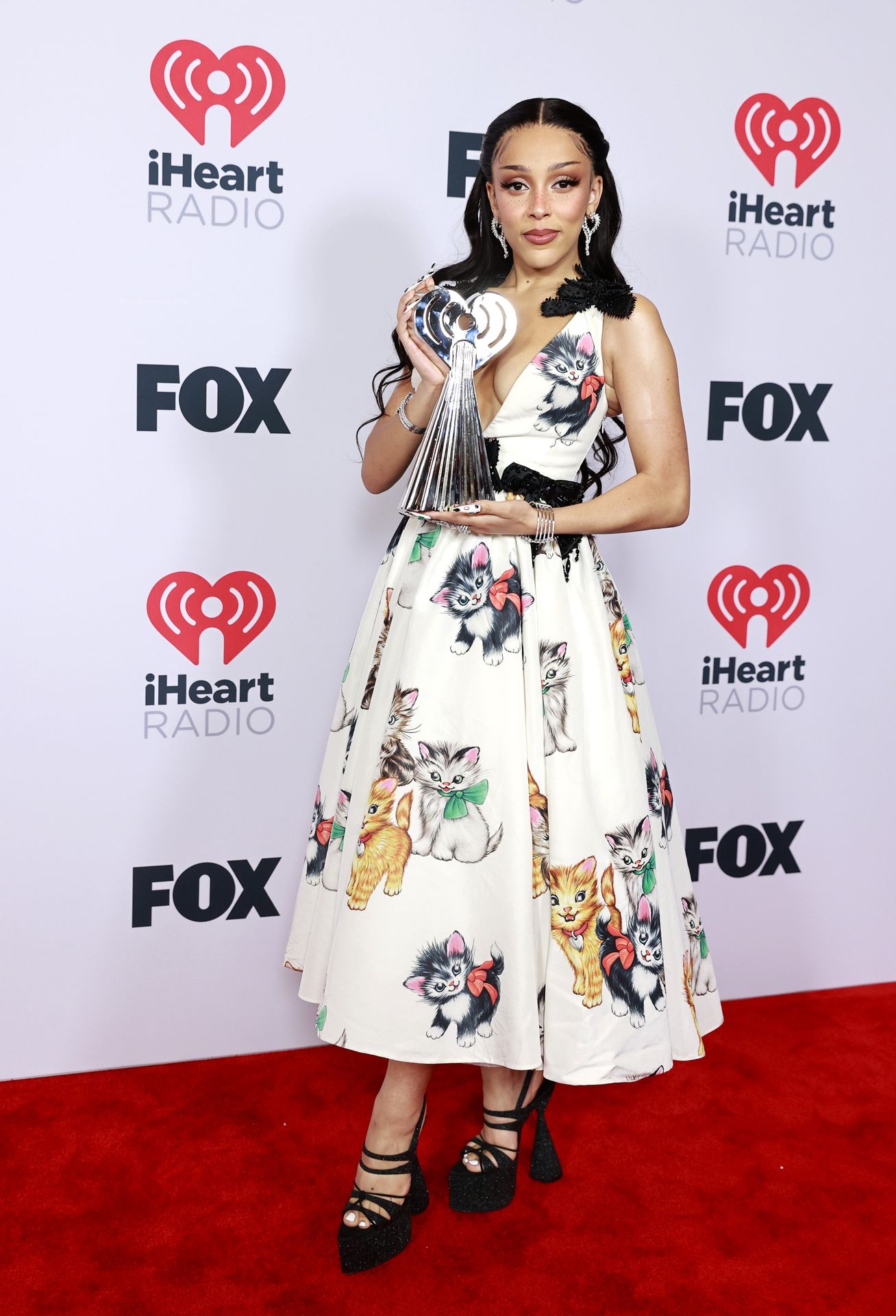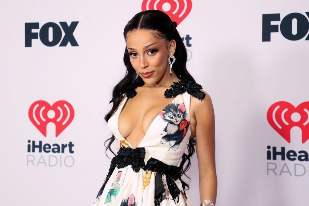 Cantante Doja Cat, ganadora del premio al Mejor Artista Nuevo de Pop, presume su bonito escote en los iHeartRadio Music Awards 2021 en el Dolby Theatre de Los Ángeles, California, 27/05/2021.