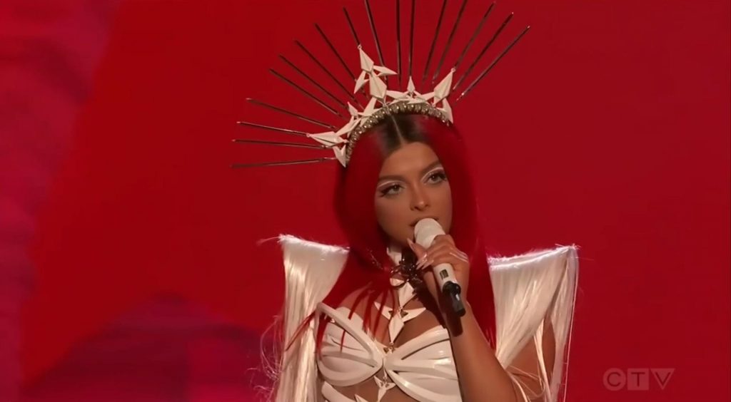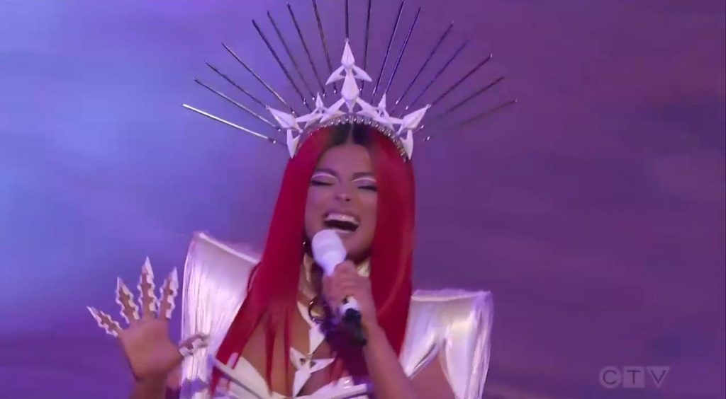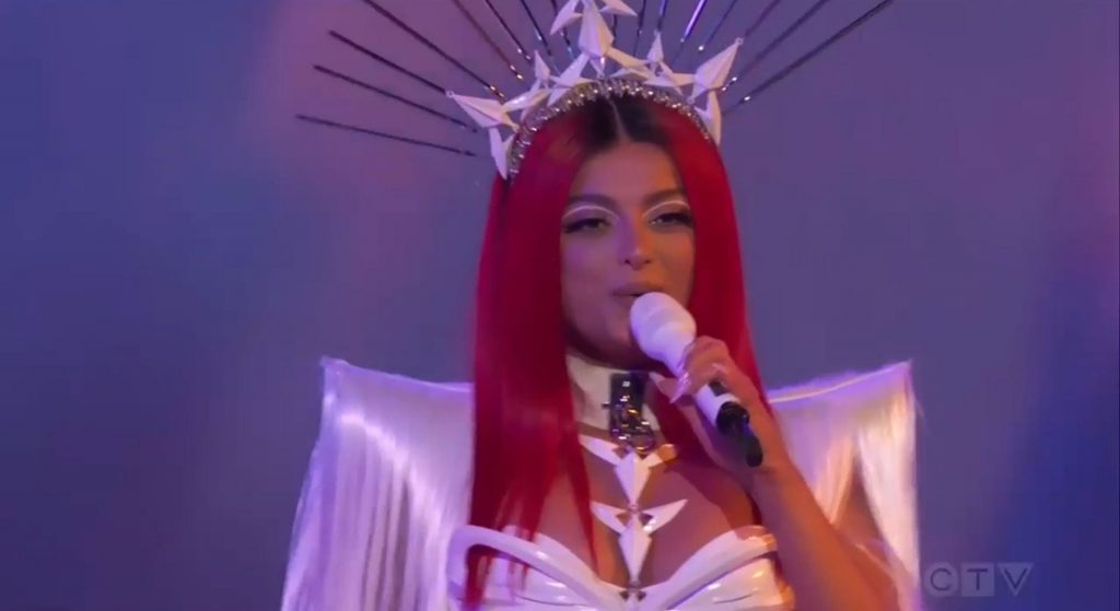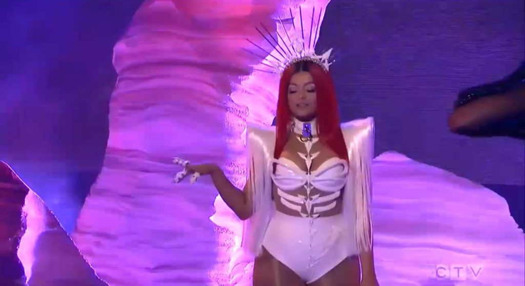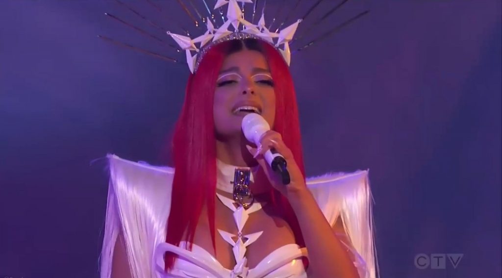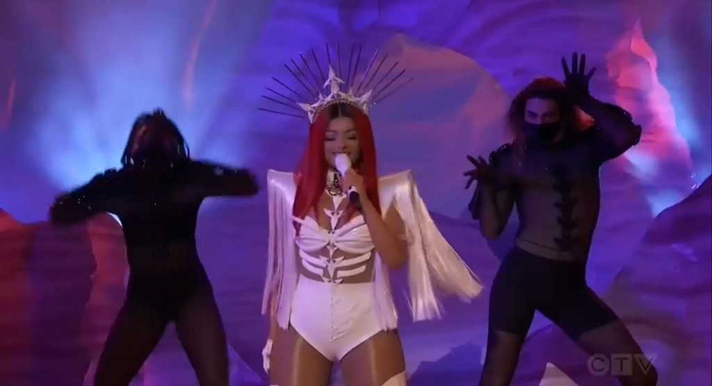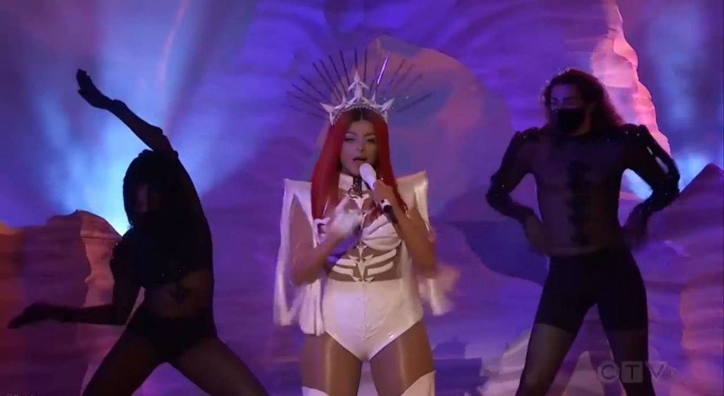 Bebe Rexha y Doja adoptan un estilo futurista y chic de mujer cavernícola para la actuación de Baby I’m Jealous en el show.