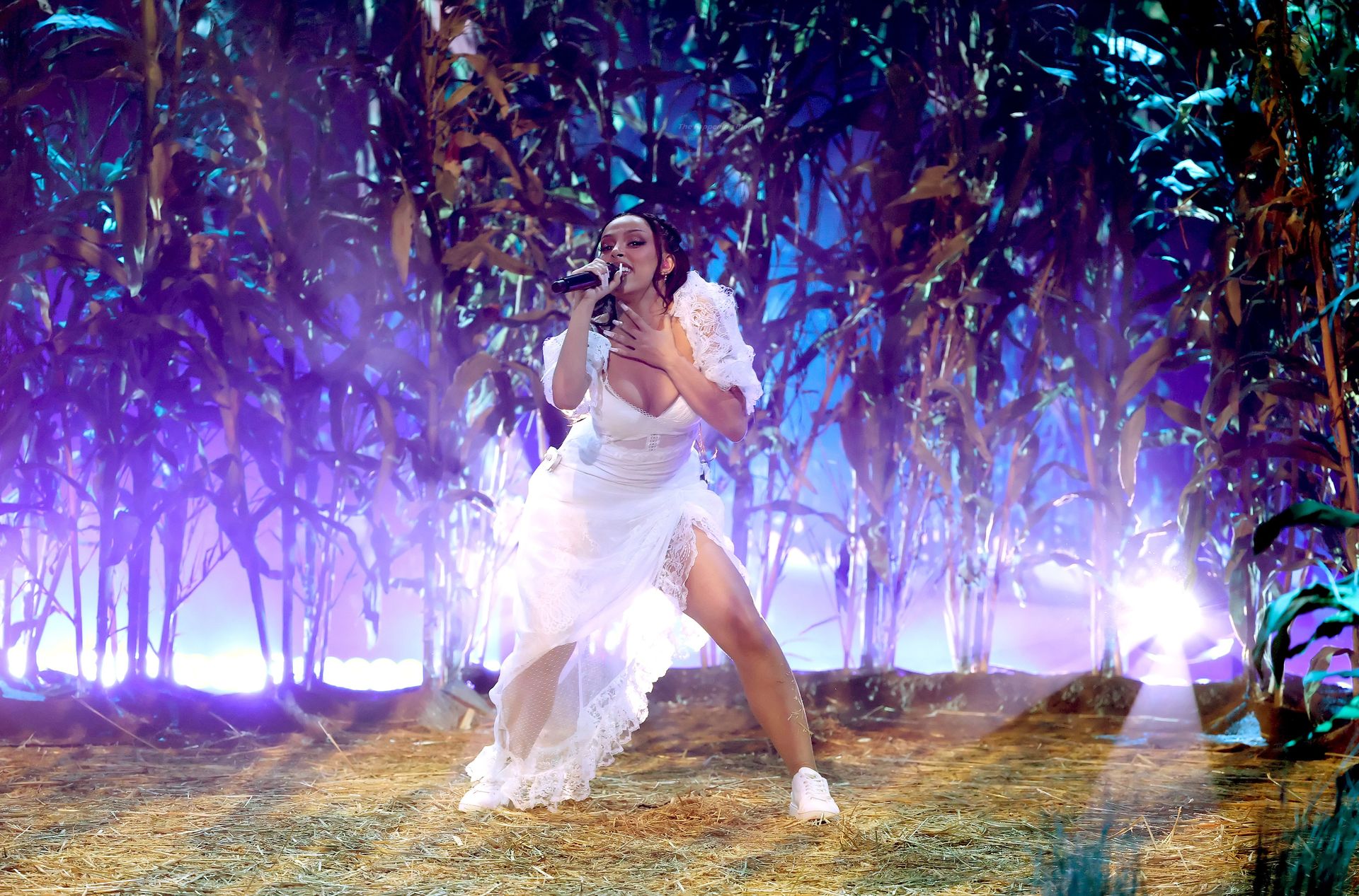 La cantante Doja Cat actúa en el escenario de los Premios de Música iHeartRadio 2021 en el Dolby Theatre de Los Ángeles, California, que se transmitió en vivo por FOX el 27 de mayo de 2021.