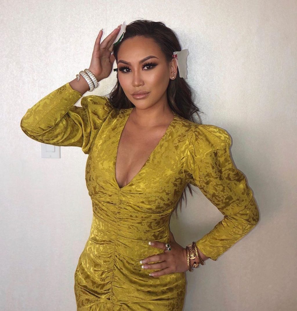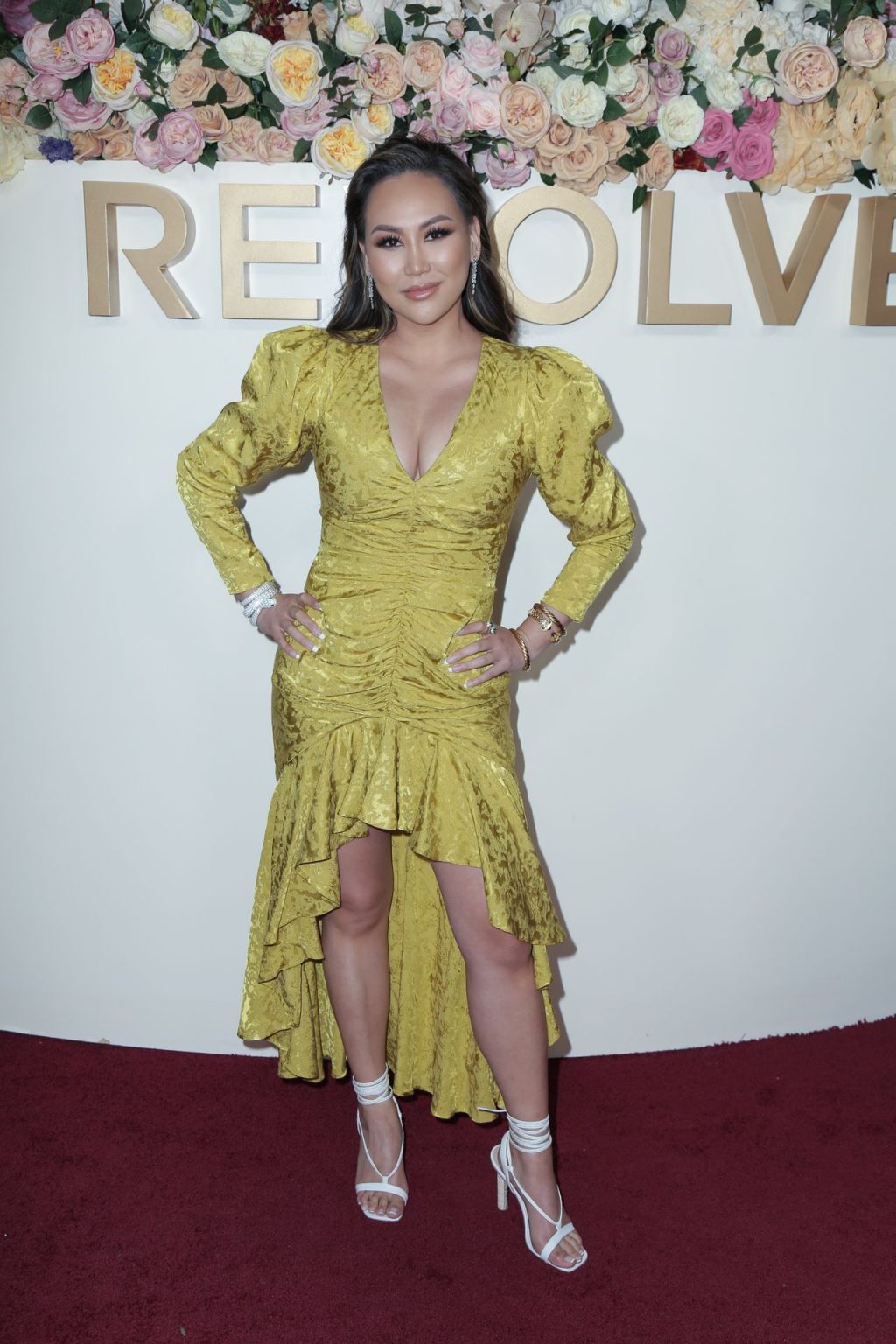 La estrella de reality TV Dorothy Wang fue vista con un vestido amarillo en la 3ª edición anual de los #REVOLVEawards 2019 celebrada en Goya Studios en Hollywood, 15/11/2019.