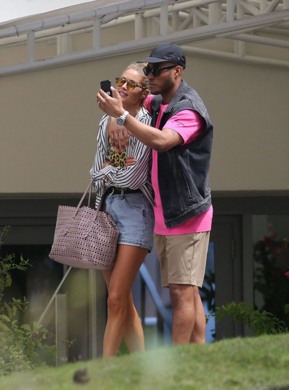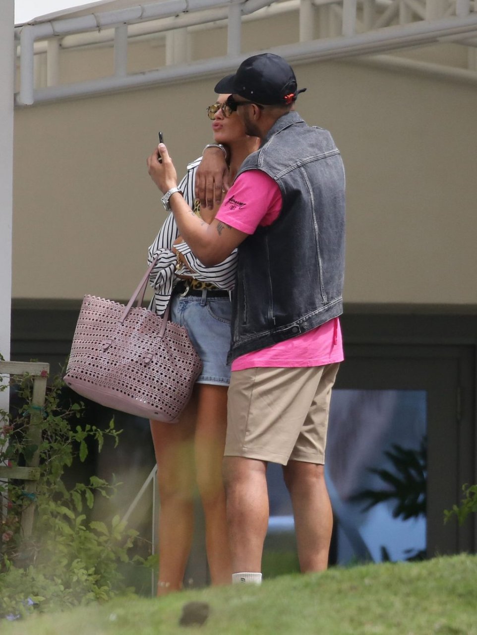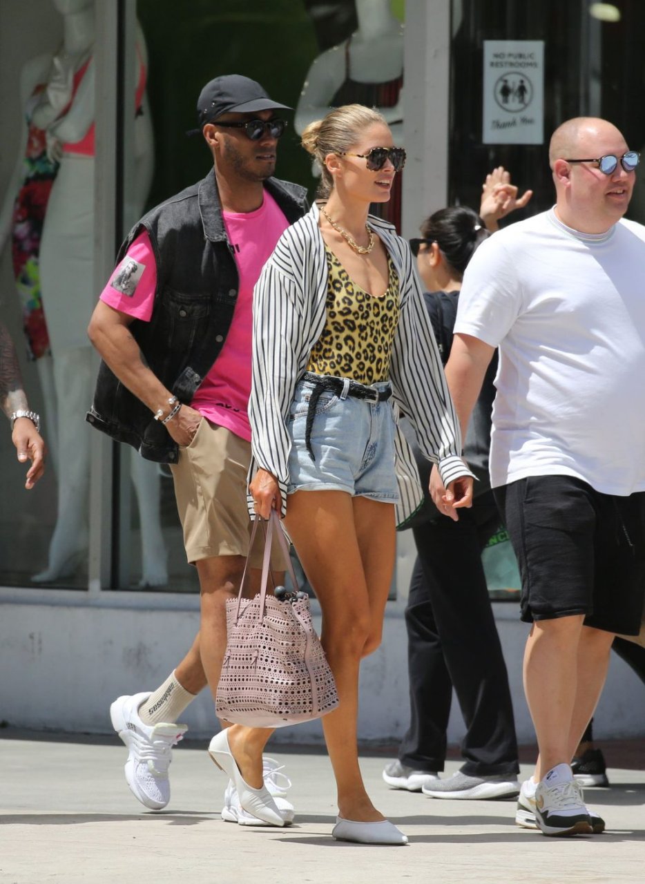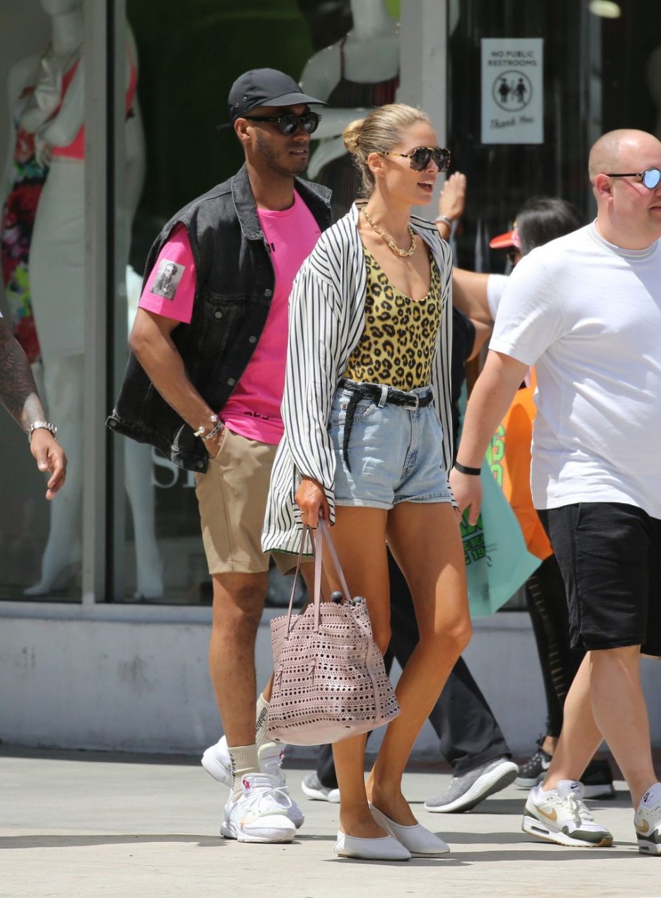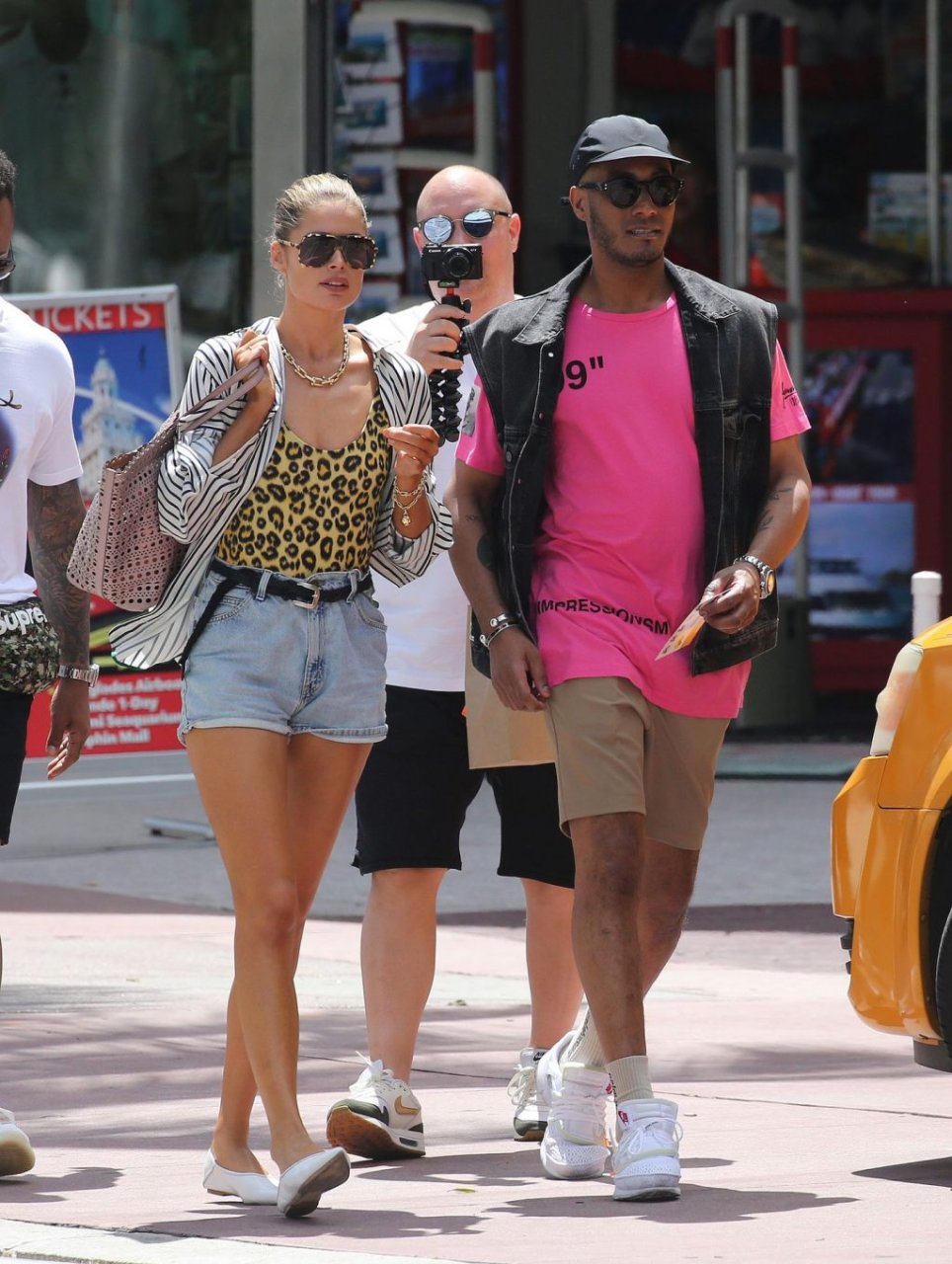 La supermodelo Doutzen Kroes se pone unos shorts de mezclilla y joyas llamativas sobre su traje de baño para dar un paseo por la ciudad con su esposo Sunnery James en Miami, 29/03/2019.
