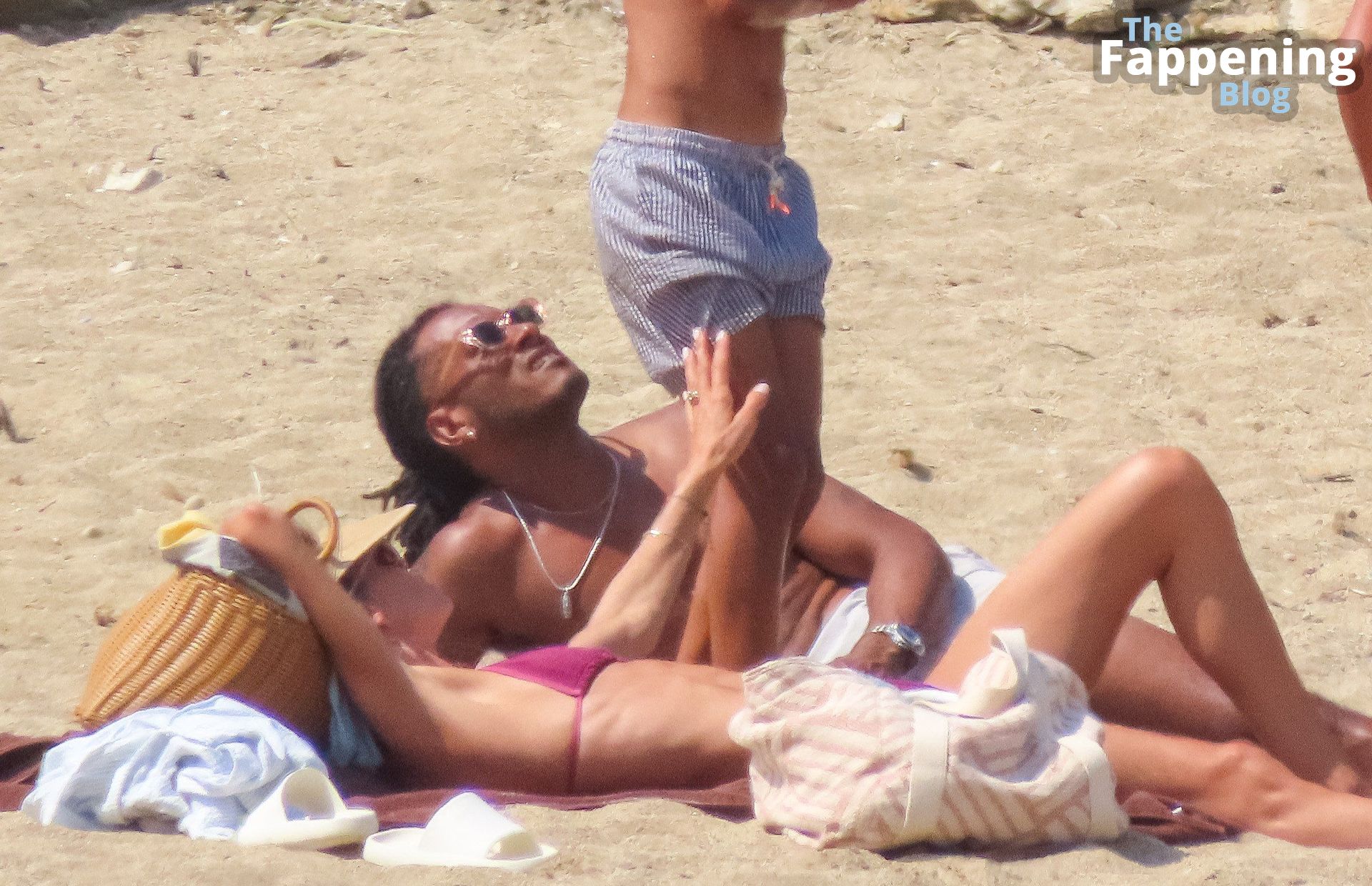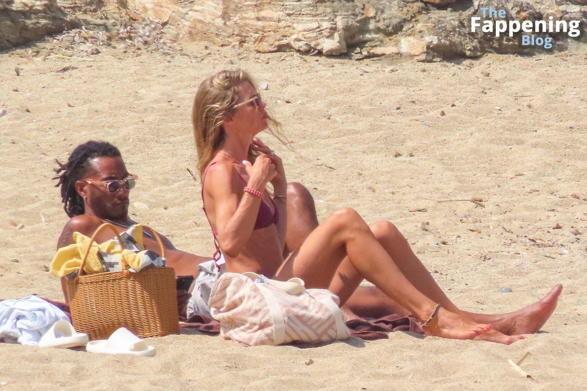 Doutzen Kroes, de 42 años, junto a su esposo e hijos, se les ve de vacaciones en la isla griega de Mykonos, 22/08/2023. Ella muestra su increíble cuerpo con un diminuto bikini color ciruela.