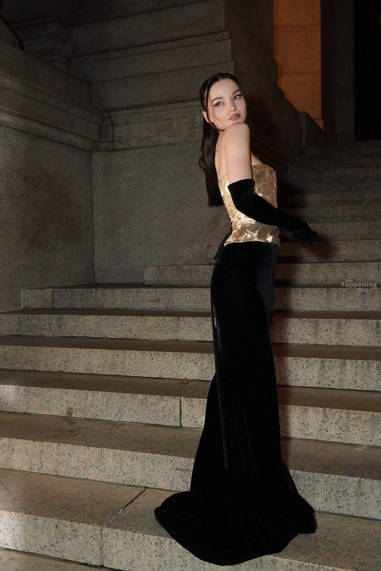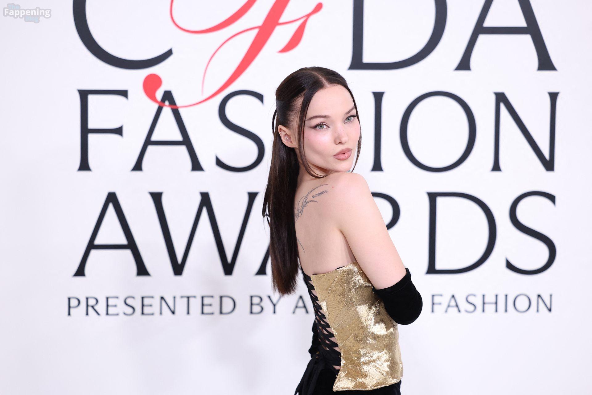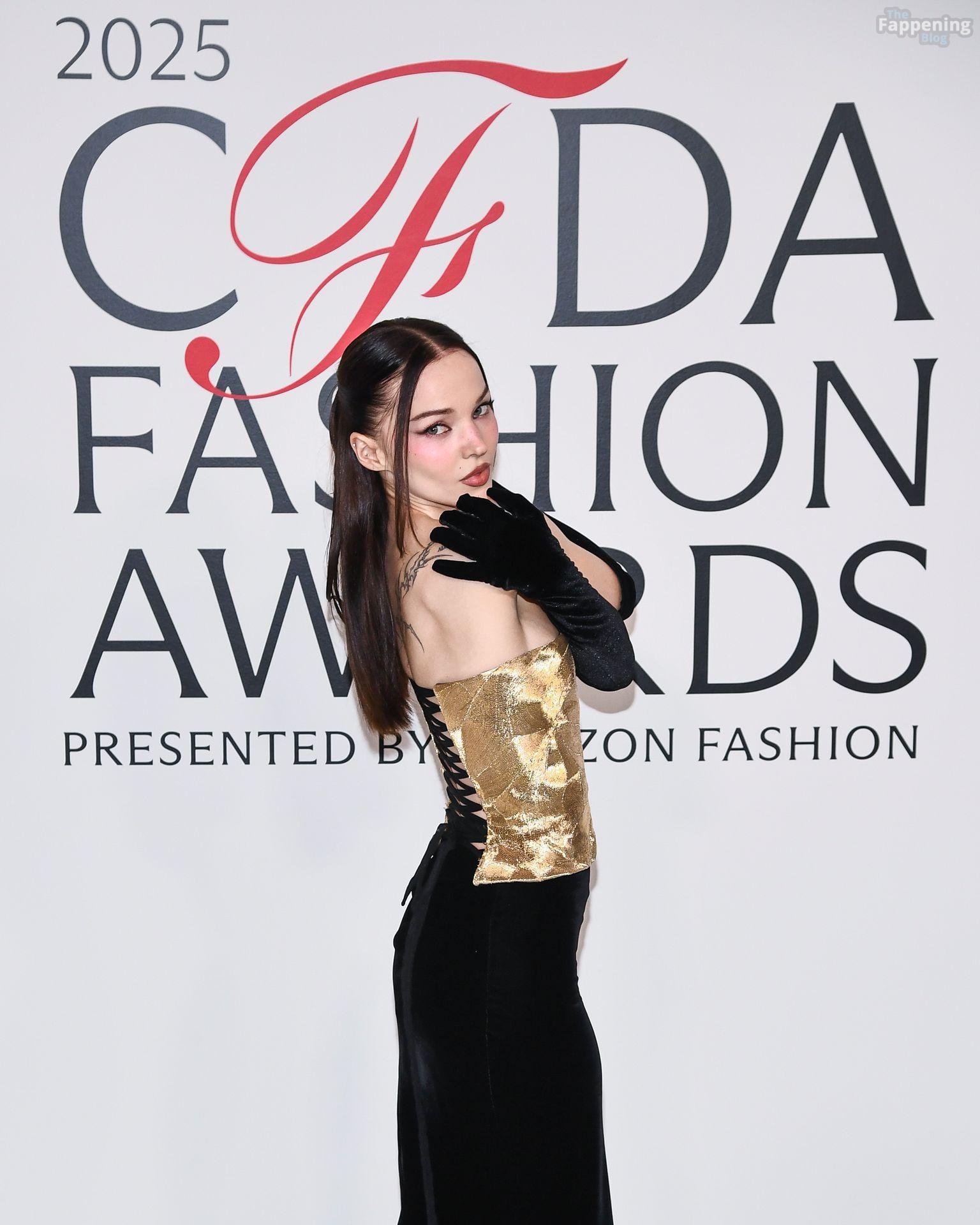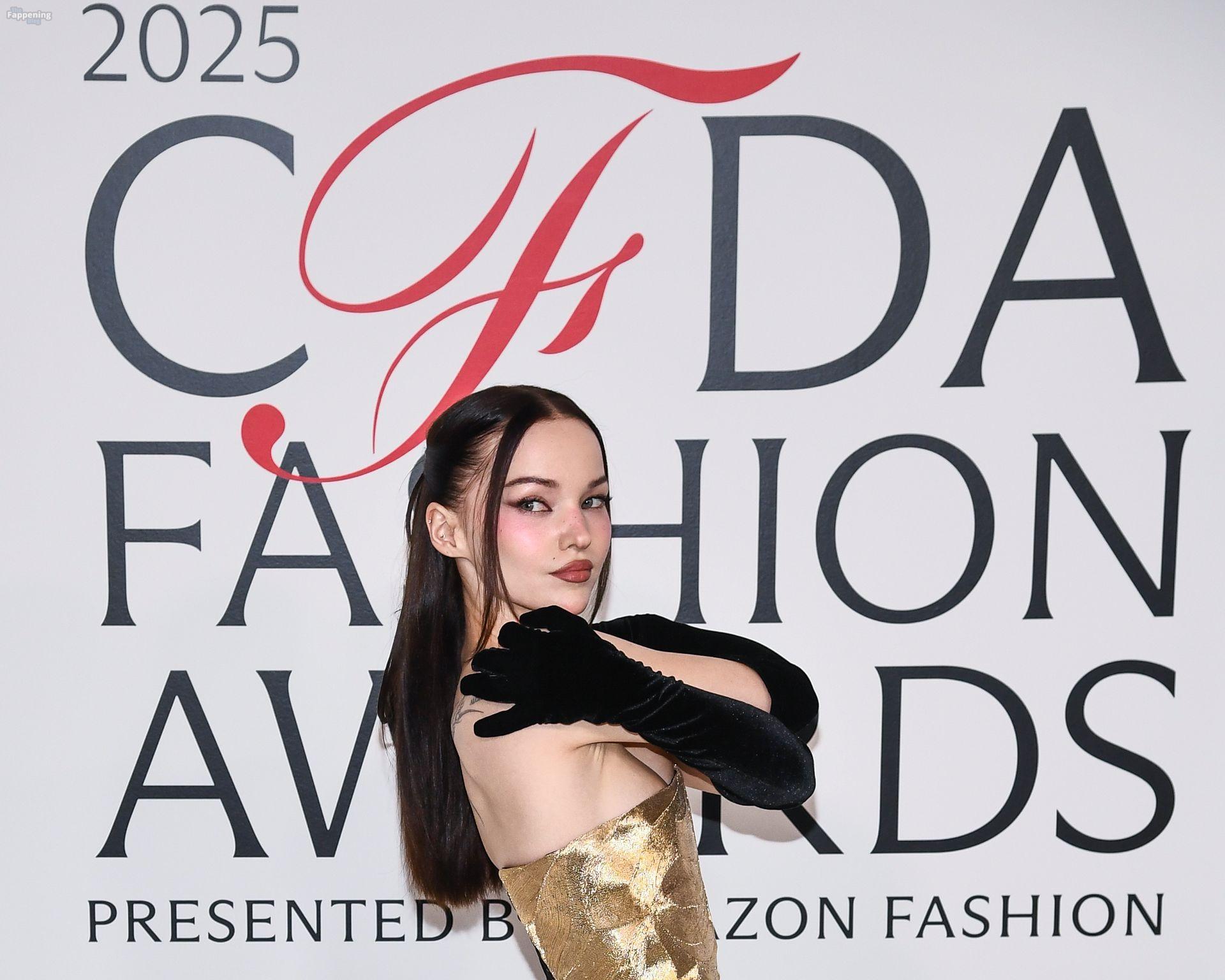 Dove Cameron, la cantante y actriz de 29 años, llamó la atención en los Premios de la Moda CFDA 2025 el 3 de noviembre en el Museo Americano de Historia Natural en la ciudad de Nueva York. Lució un vestido negro sin tirantes con un corsé dorado en el torso, combinado con guantes negros.