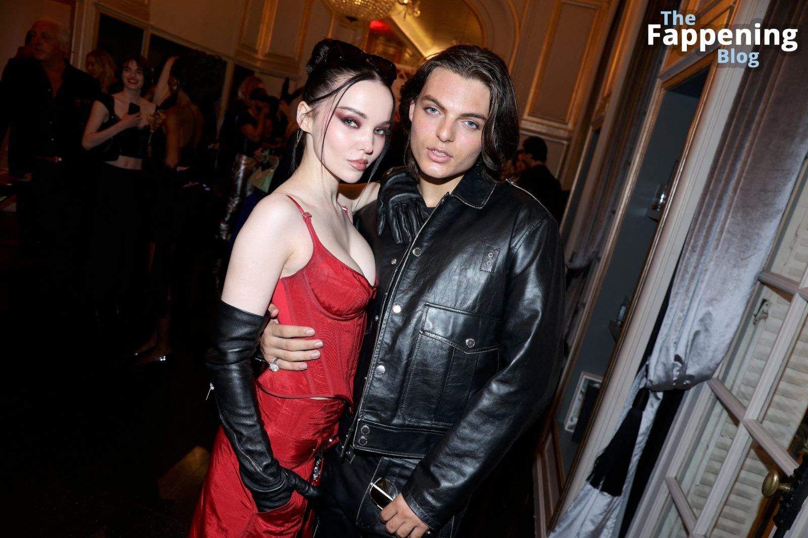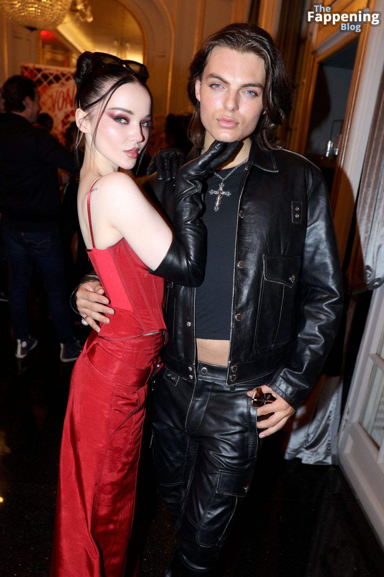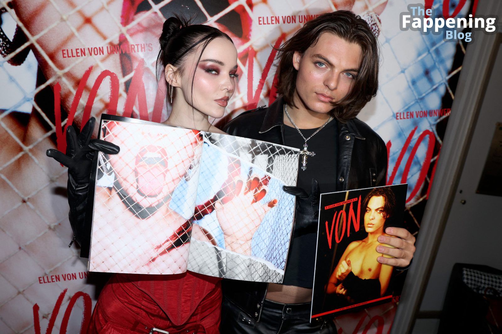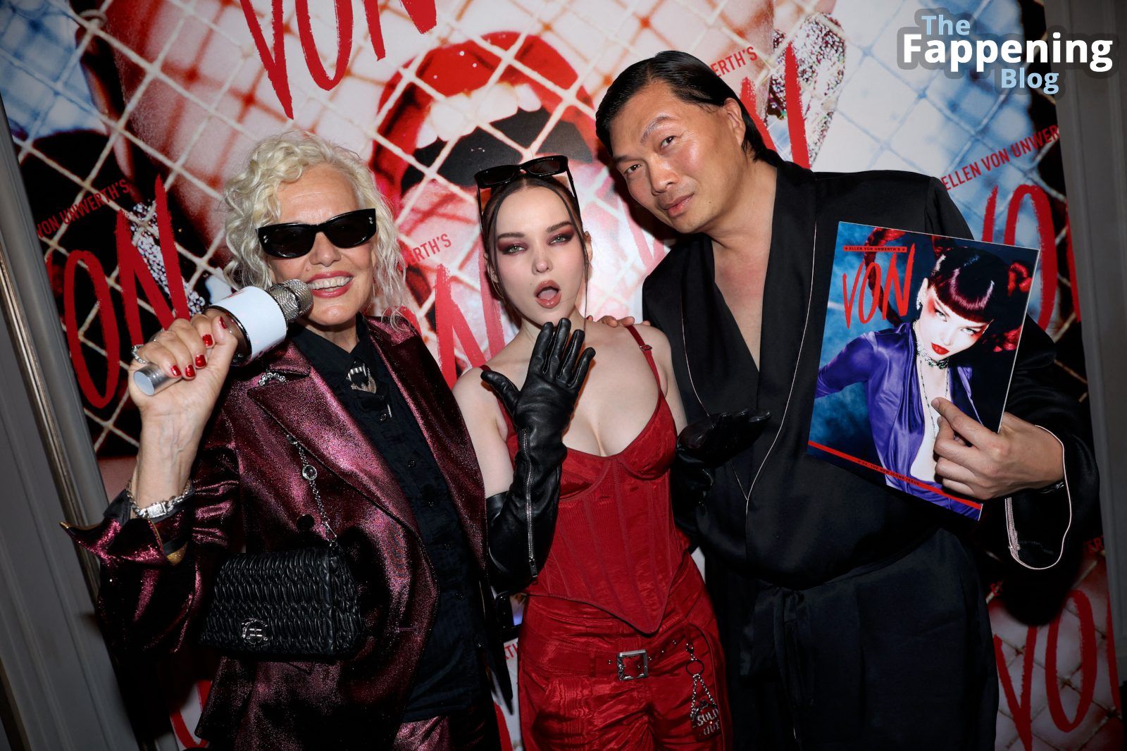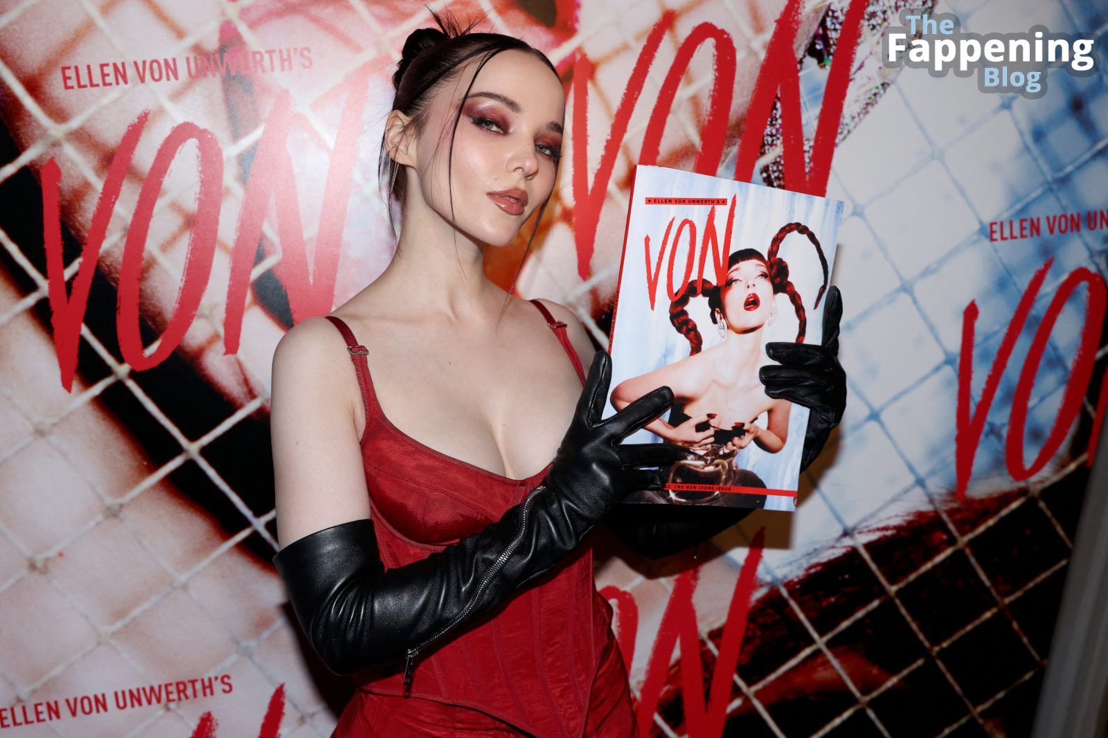 Prepárate para deleitarte con los increíbles pechos y escote de Dove Cameron, mientras luce un vestido rojo en la fiesta de Ellen Von Unwerth.