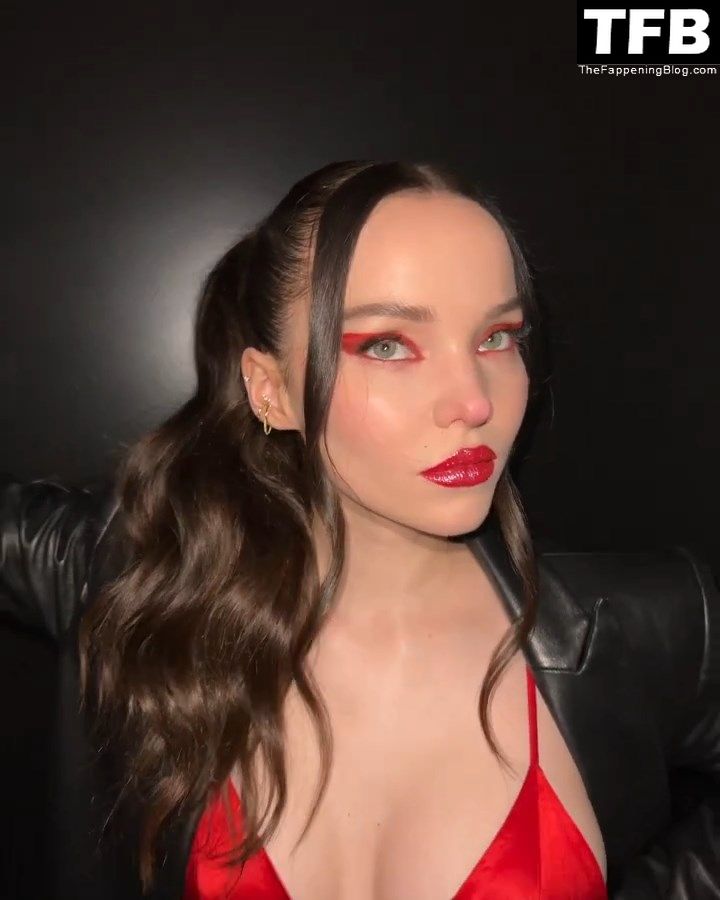 Dove Cameron muestra sus pechos perfectos mientras posa con un sostén rojo – Instagram, 16/12/2022.
