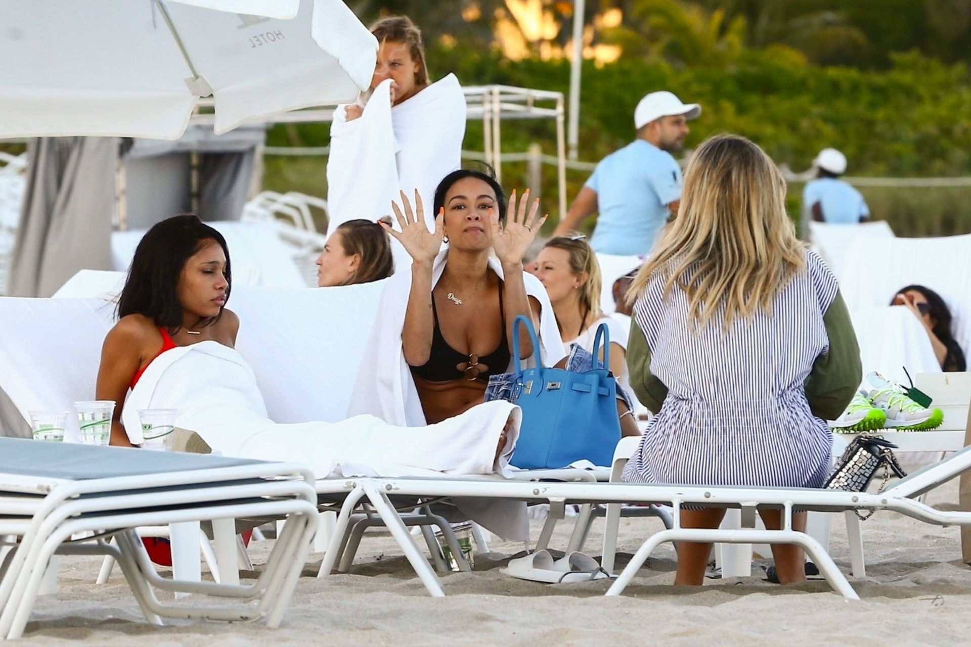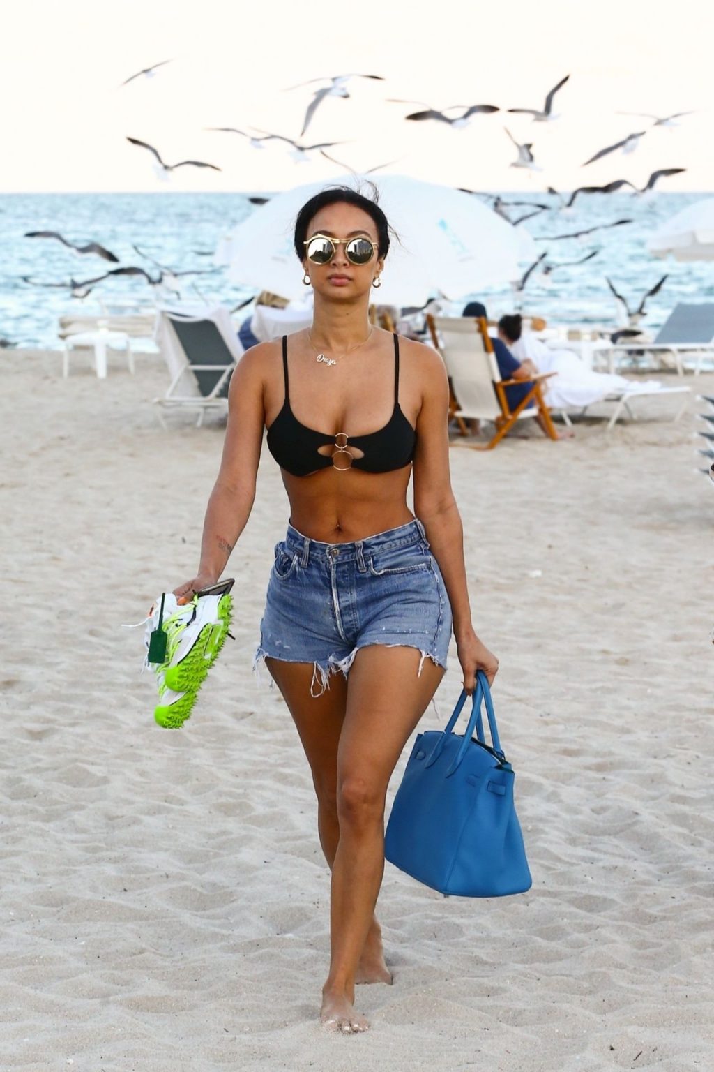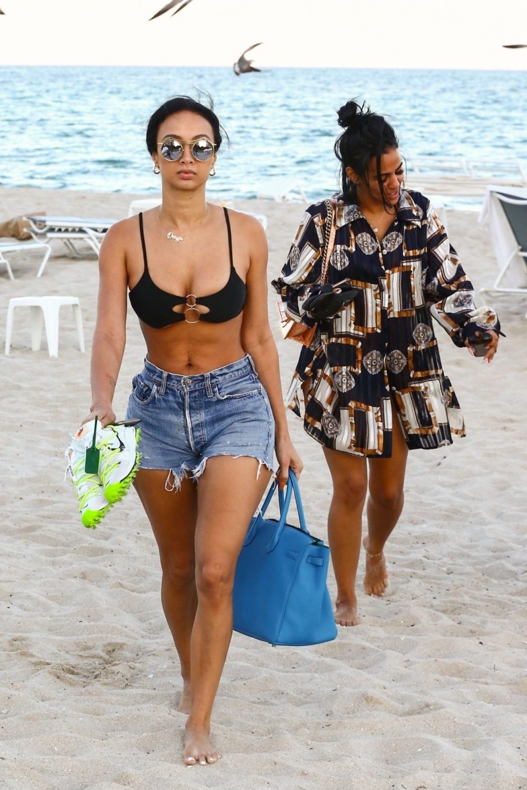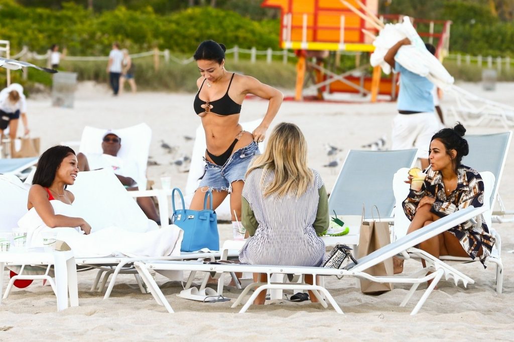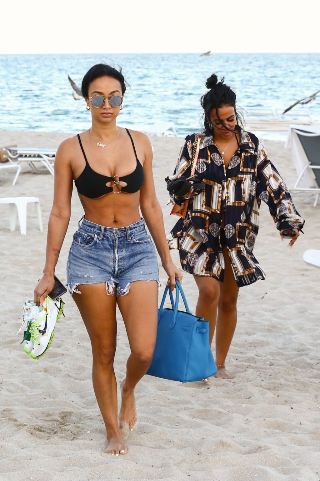 Estrella de las redes sociales, modelo y actriz Draya Michele muestra su cuerpo en bikini en Miami y se relaja en la playa con amigos, 12/07/2019.