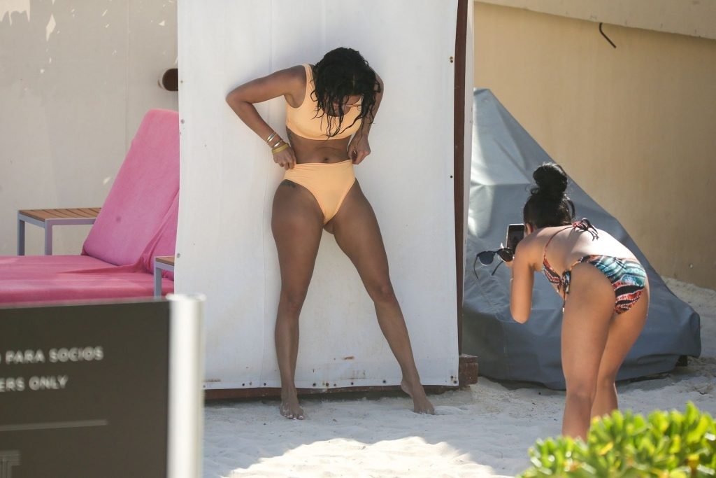 Draya Michele está en Cancún viviendo su mejor vida, 10/03/2019. La socialité deslumbra en la playa con un bikini amarillo pastel. Draya también tiene un amigo que hace de fotógrafo mientras posa en la arena.