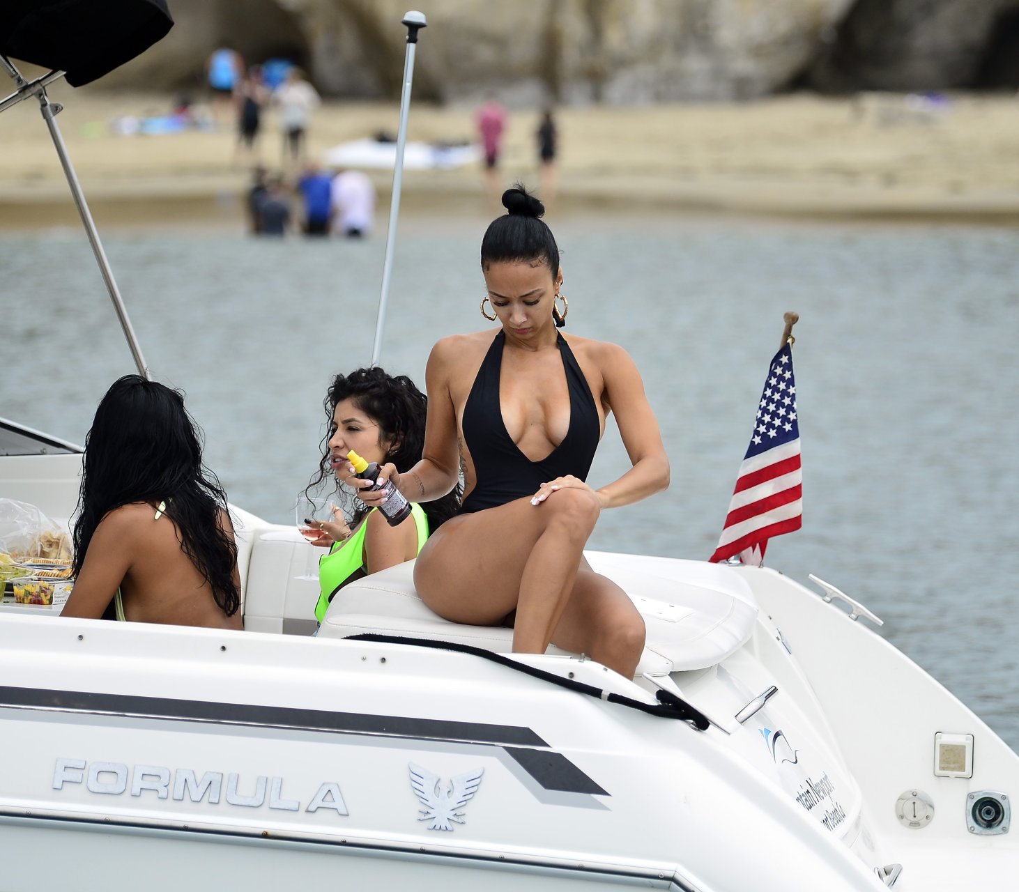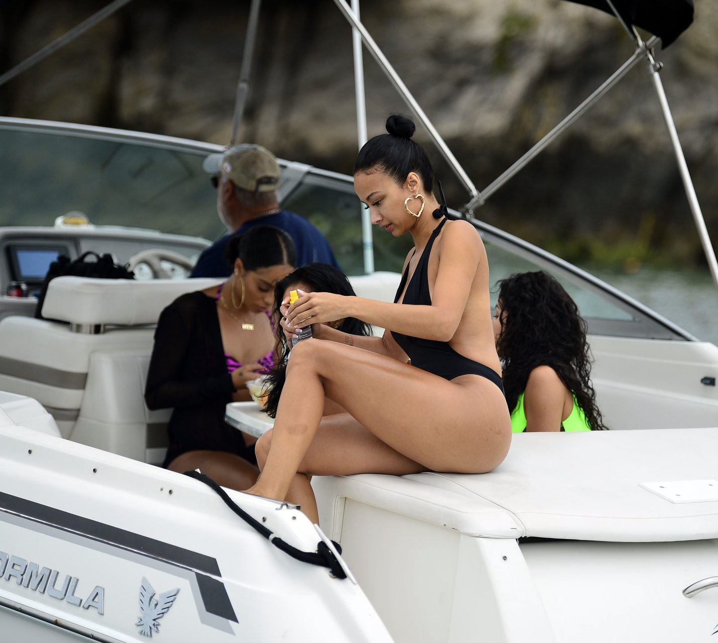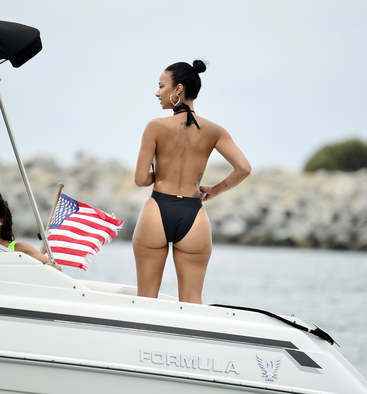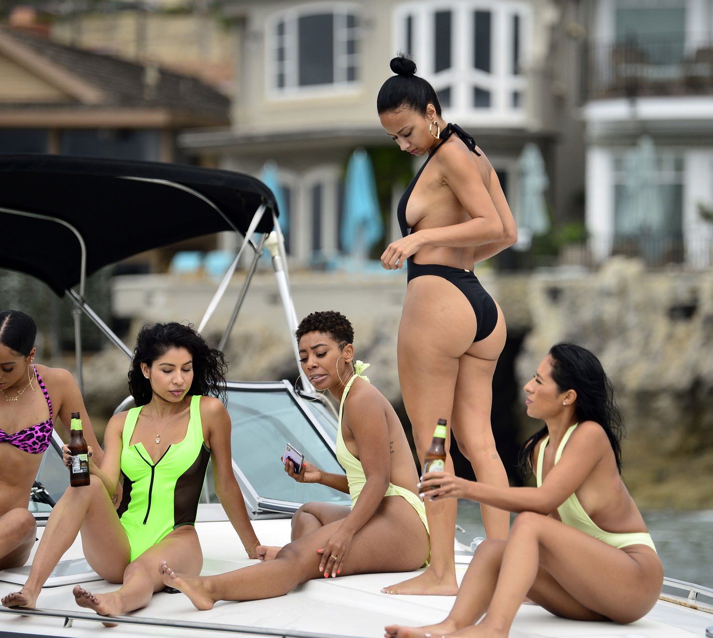 Draya Michele y sus amigas disfrutan del fin de semana del Día del Trabajo en un barco, 04/08/2018. Draya fue vista luciendo un sexy bikini negro de su nueva colección de trajes de baño mint. Es modelo, actriz, madre y mujer de negocios. Draya Michele es una de las mujeres más sexys de California.