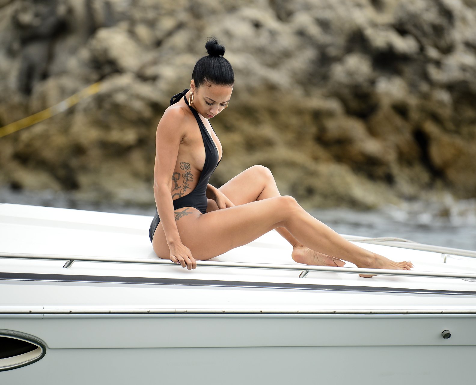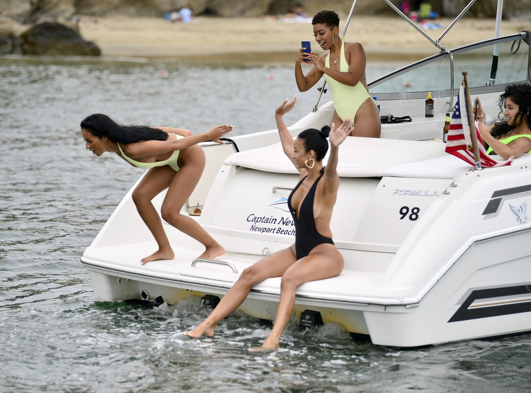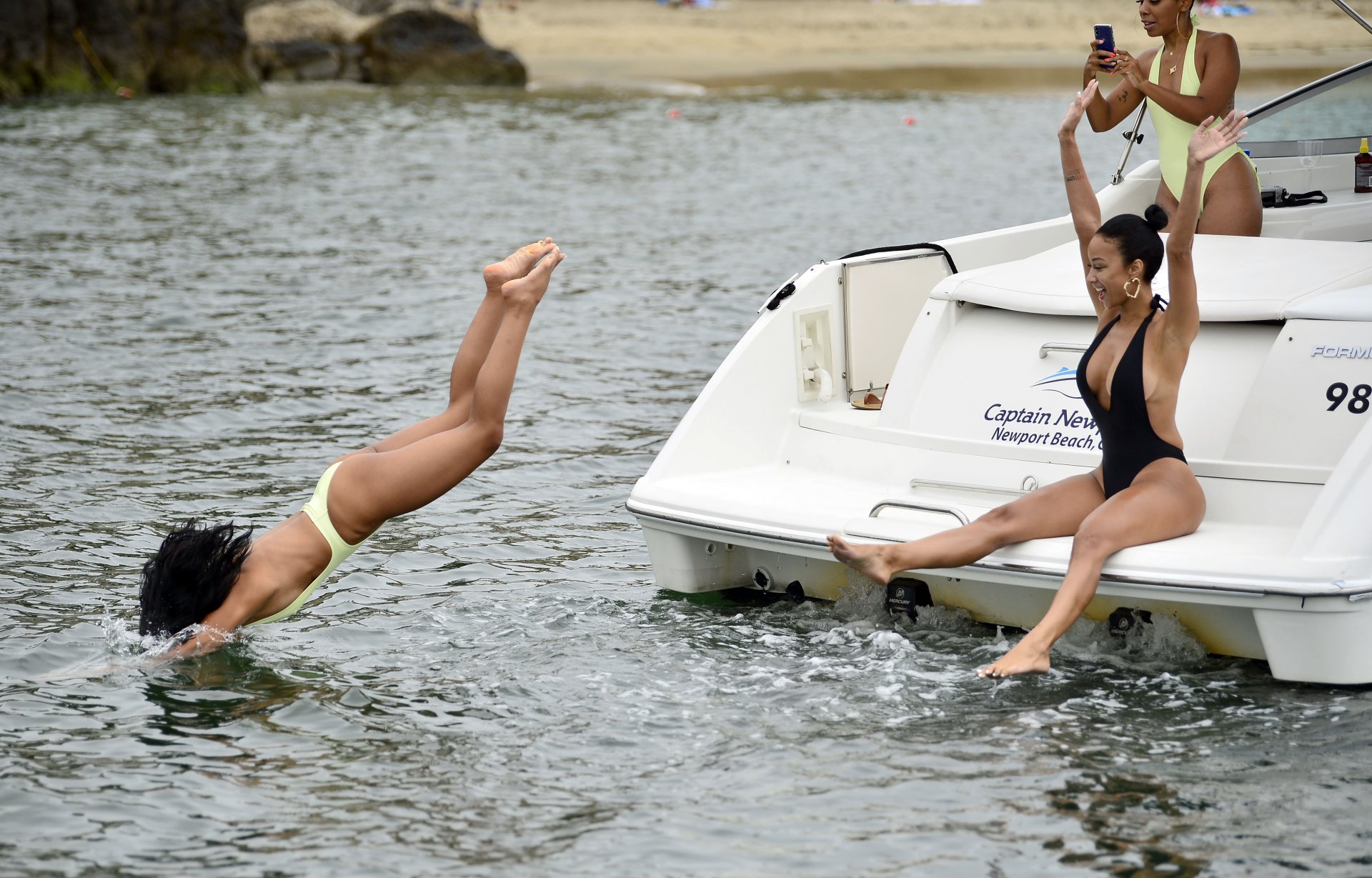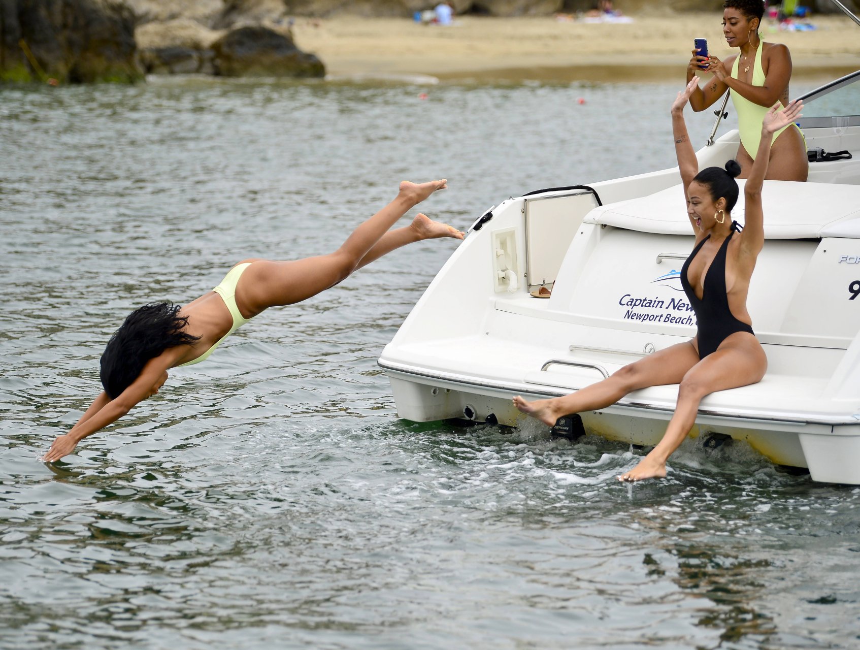Draya Michele y sus amigas disfrutan del fin de semana del Día del Trabajo en un barco, 04/08/2018. Draya fue vista luciendo un sexy bikini negro de su nueva colección de trajes de baño mint. Es modelo, actriz, madre y mujer de negocios. Draya Michele es una de las mujeres más sexys de California.