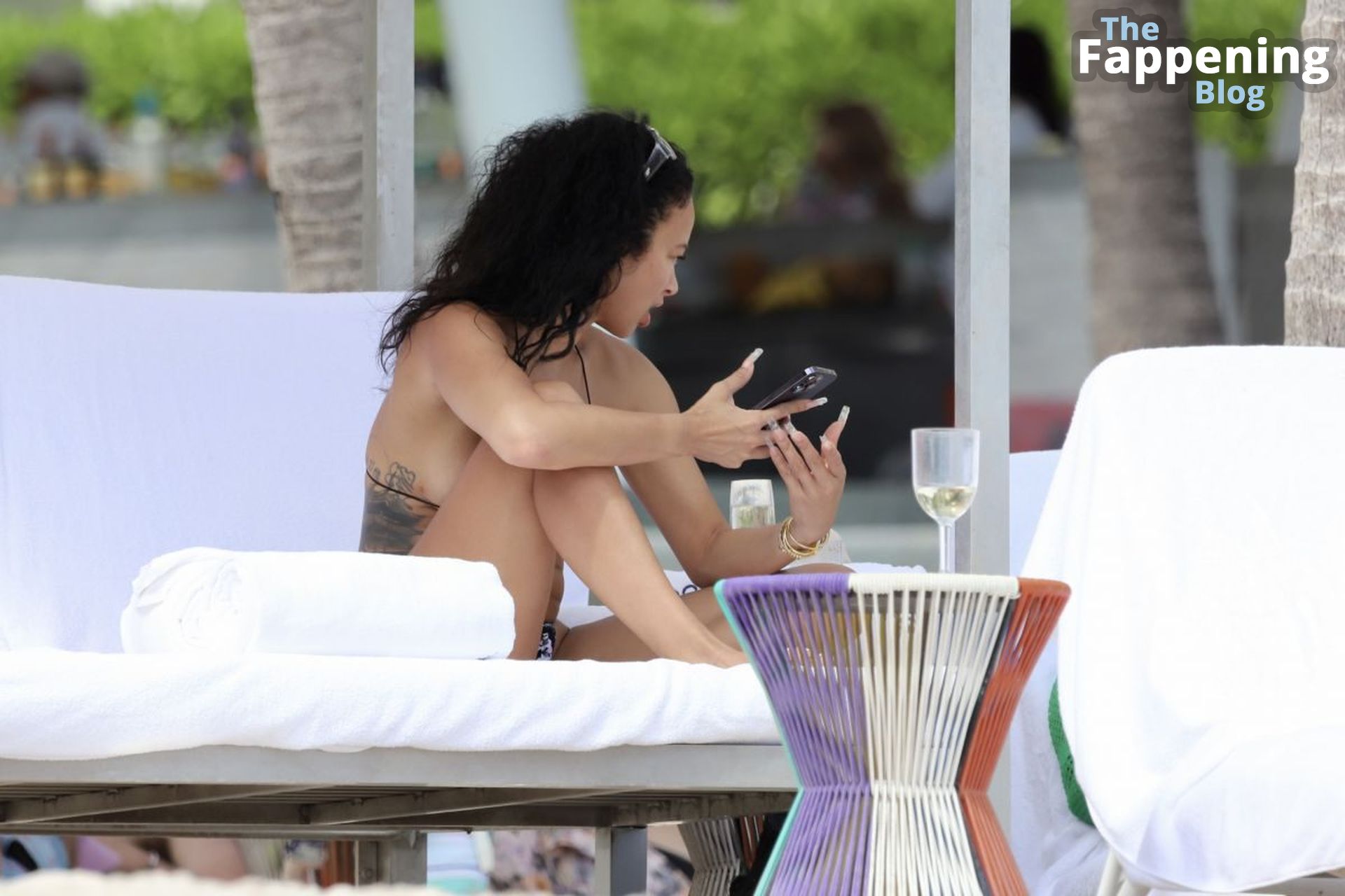Draya Michele exhibe su voluptuoso busto luciendo un diminuto bikini mientras disfruta de la playa en Cancún.